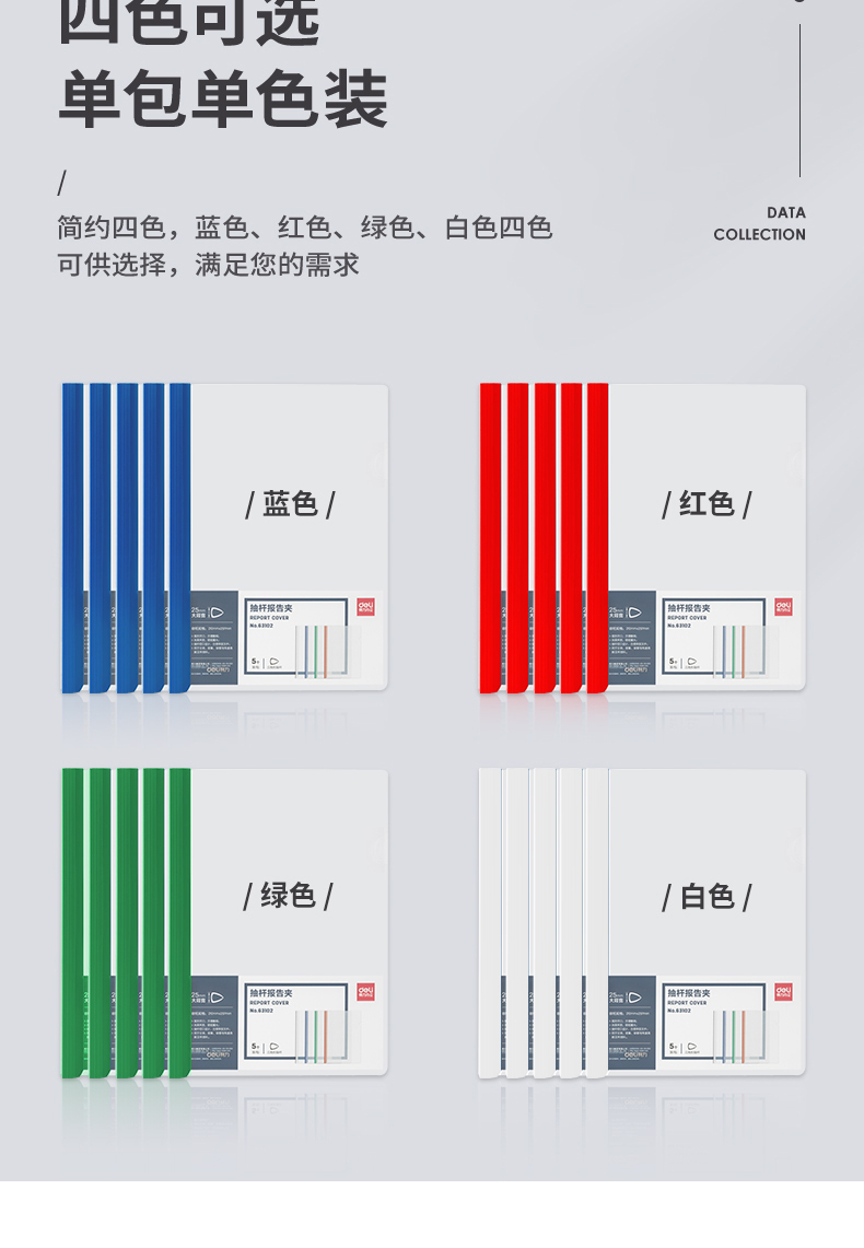 得力抽杆夹A4拉杆夹加厚文件夹插页透明试卷夹书夹透明彩色资料夹学习档案夹大容量书皮夹子三角杆收纳报告夹