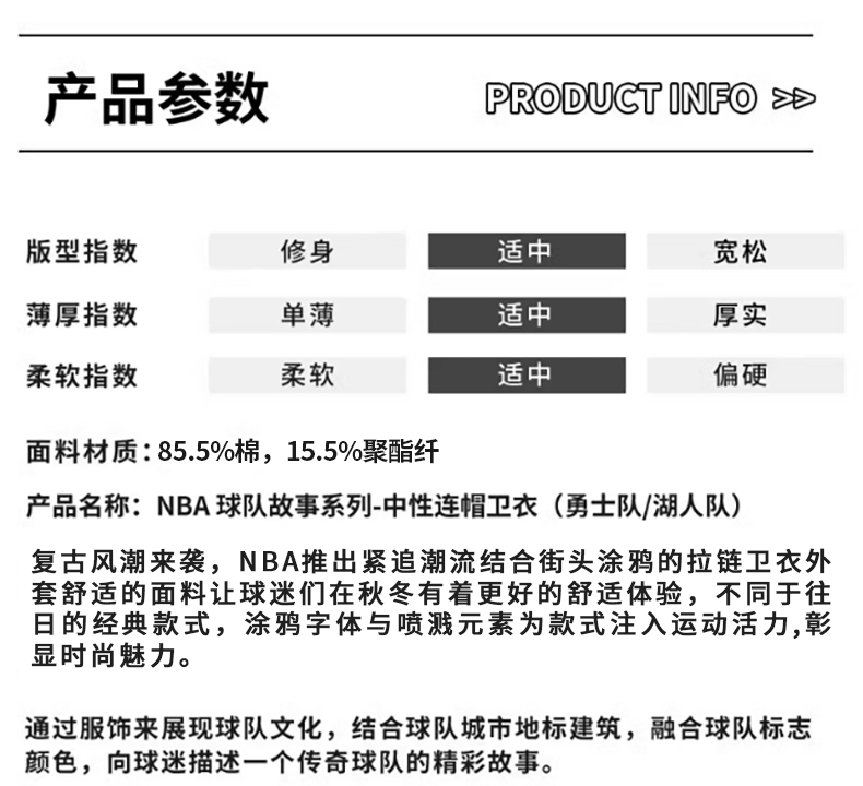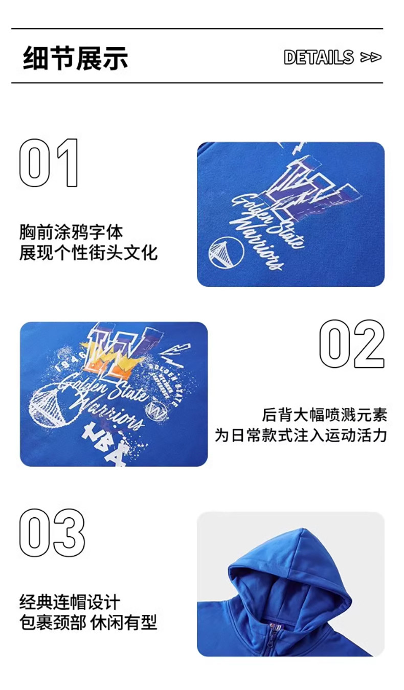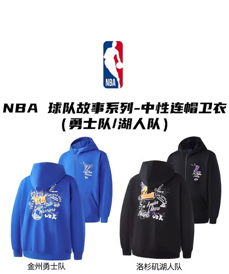 NBA官方正品湖人/勇士队故事系列球队款男春夏舒适宽松连帽卫衣