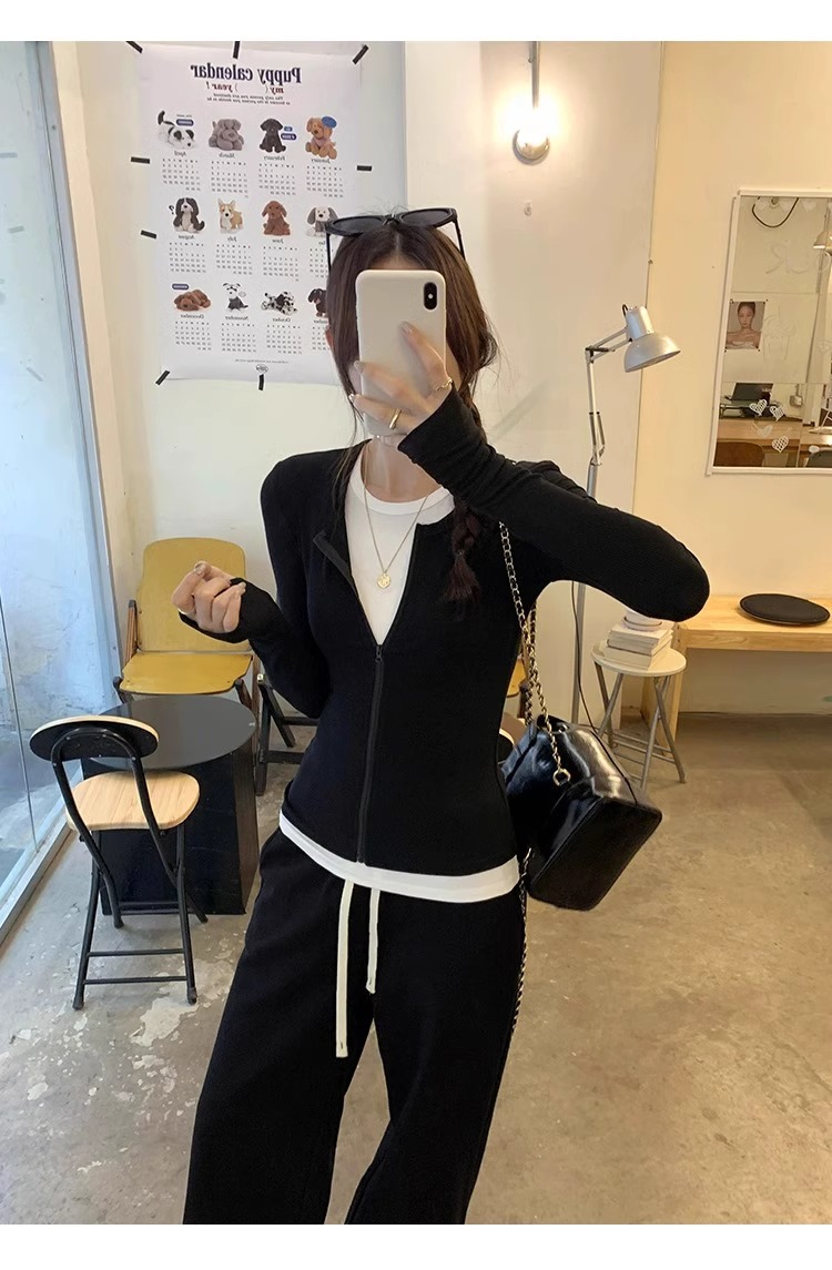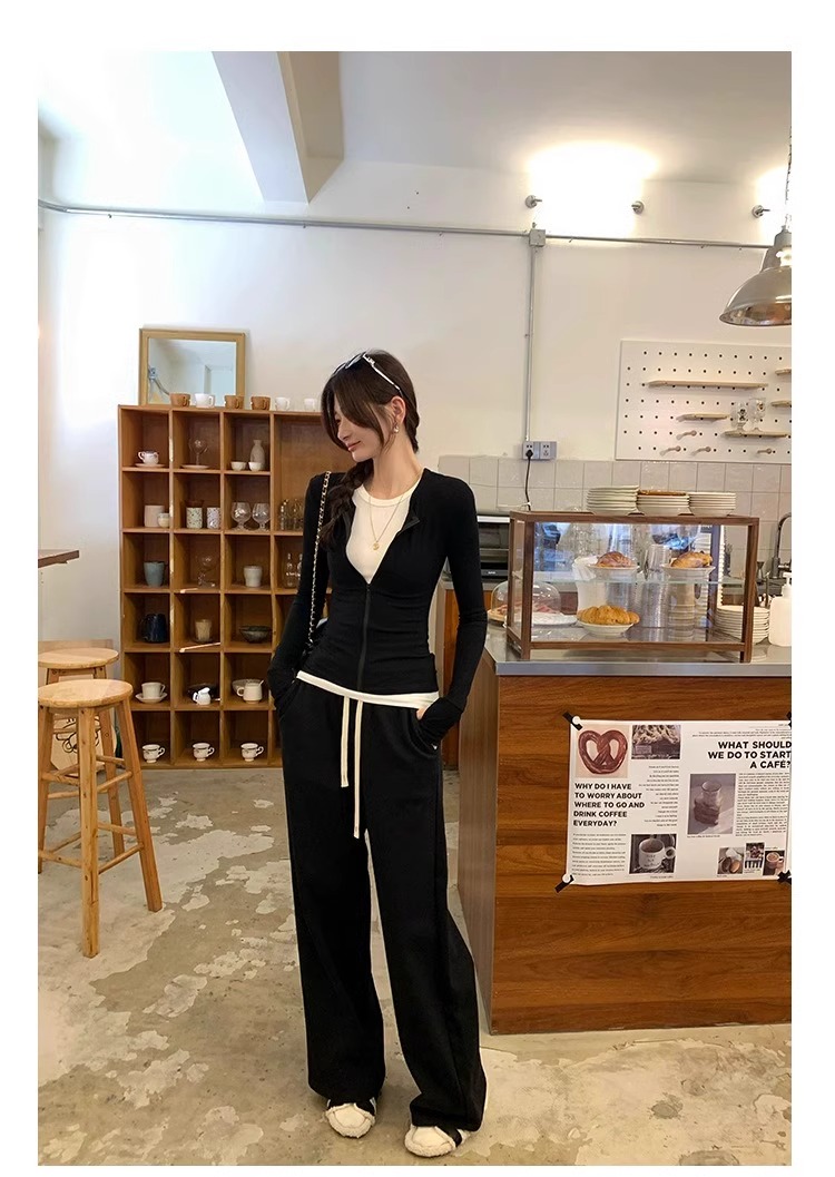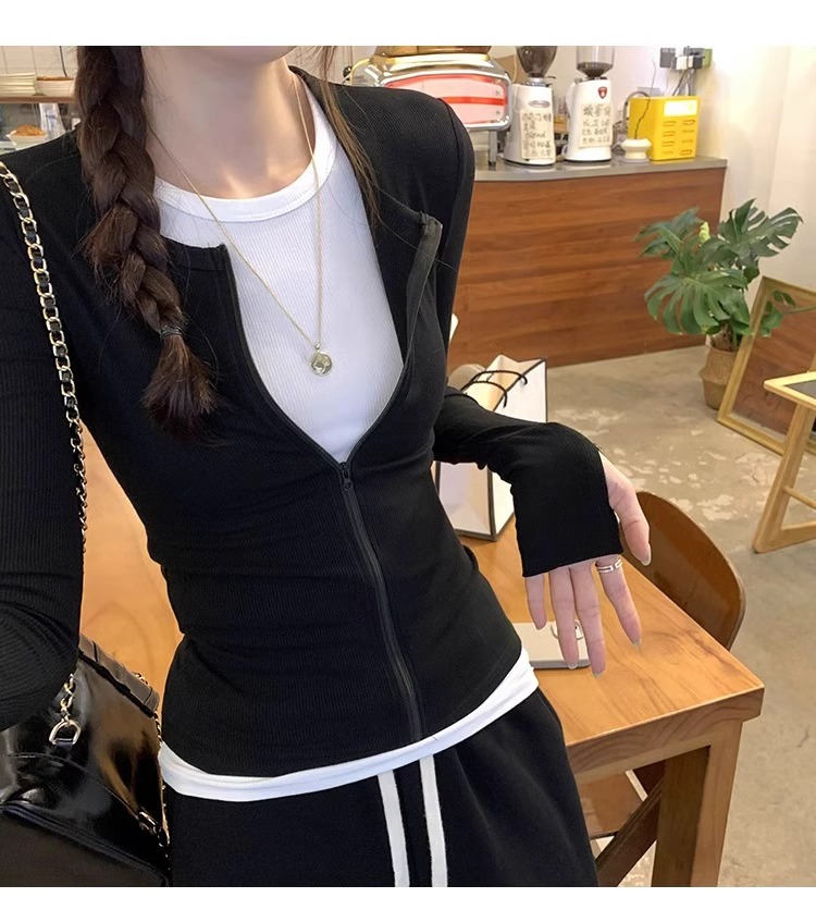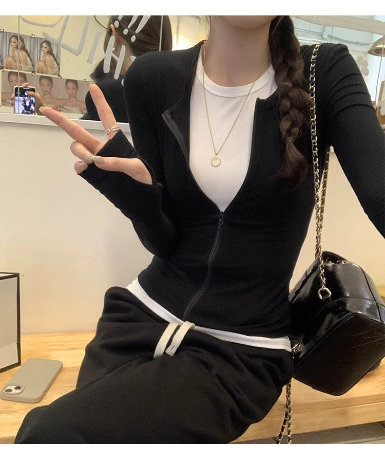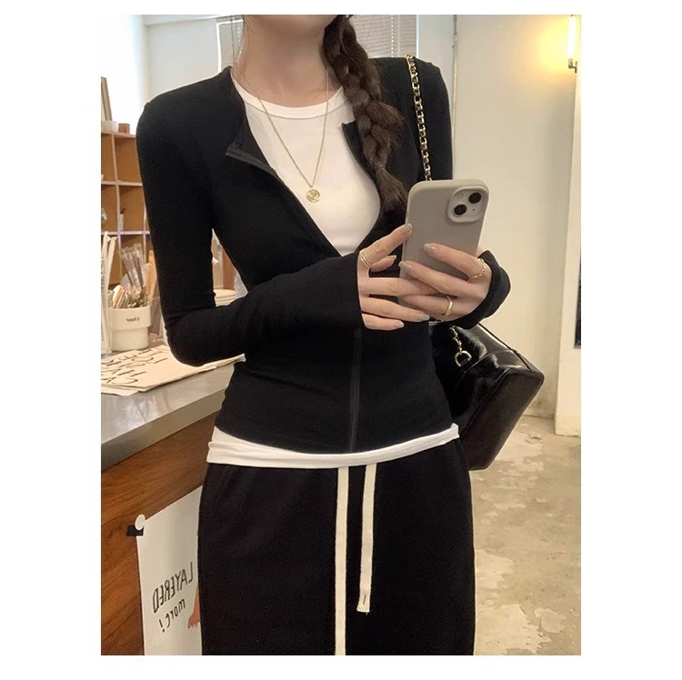 假两件修身瑜伽内搭打底衫女春季2025新款t恤上衣显瘦韩系穿搭春