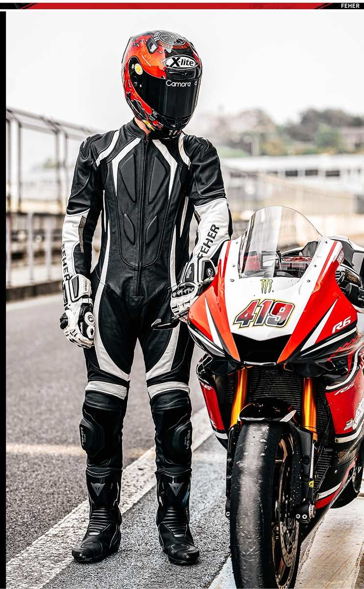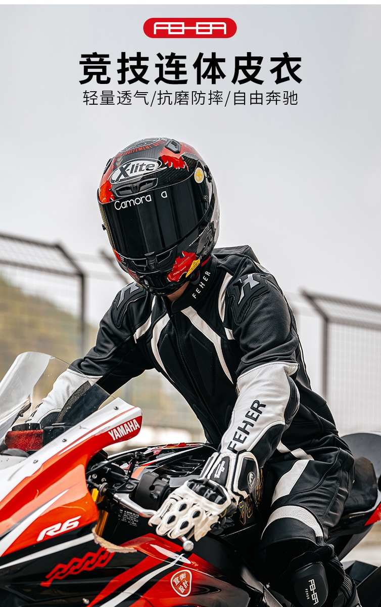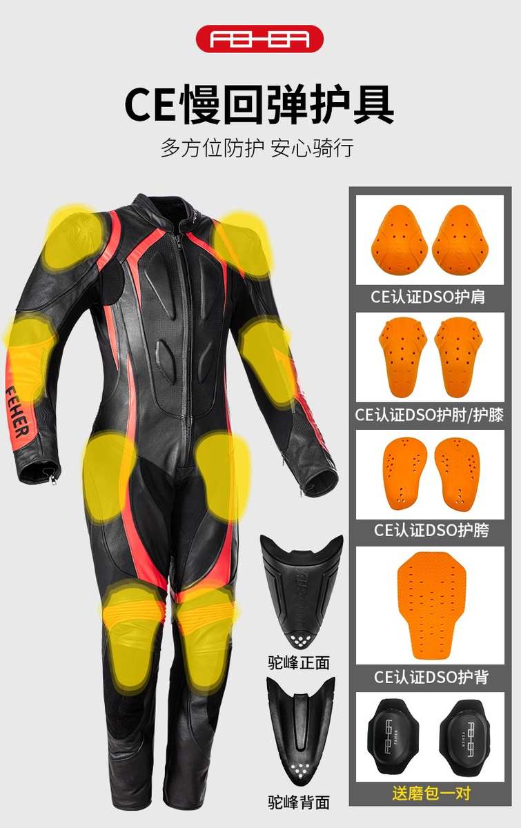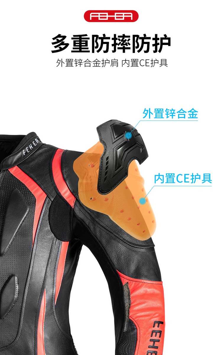 FEHER飞儿摩托车骑行服赛车连体皮衣赛道服防摔服竞赛服男女真皮