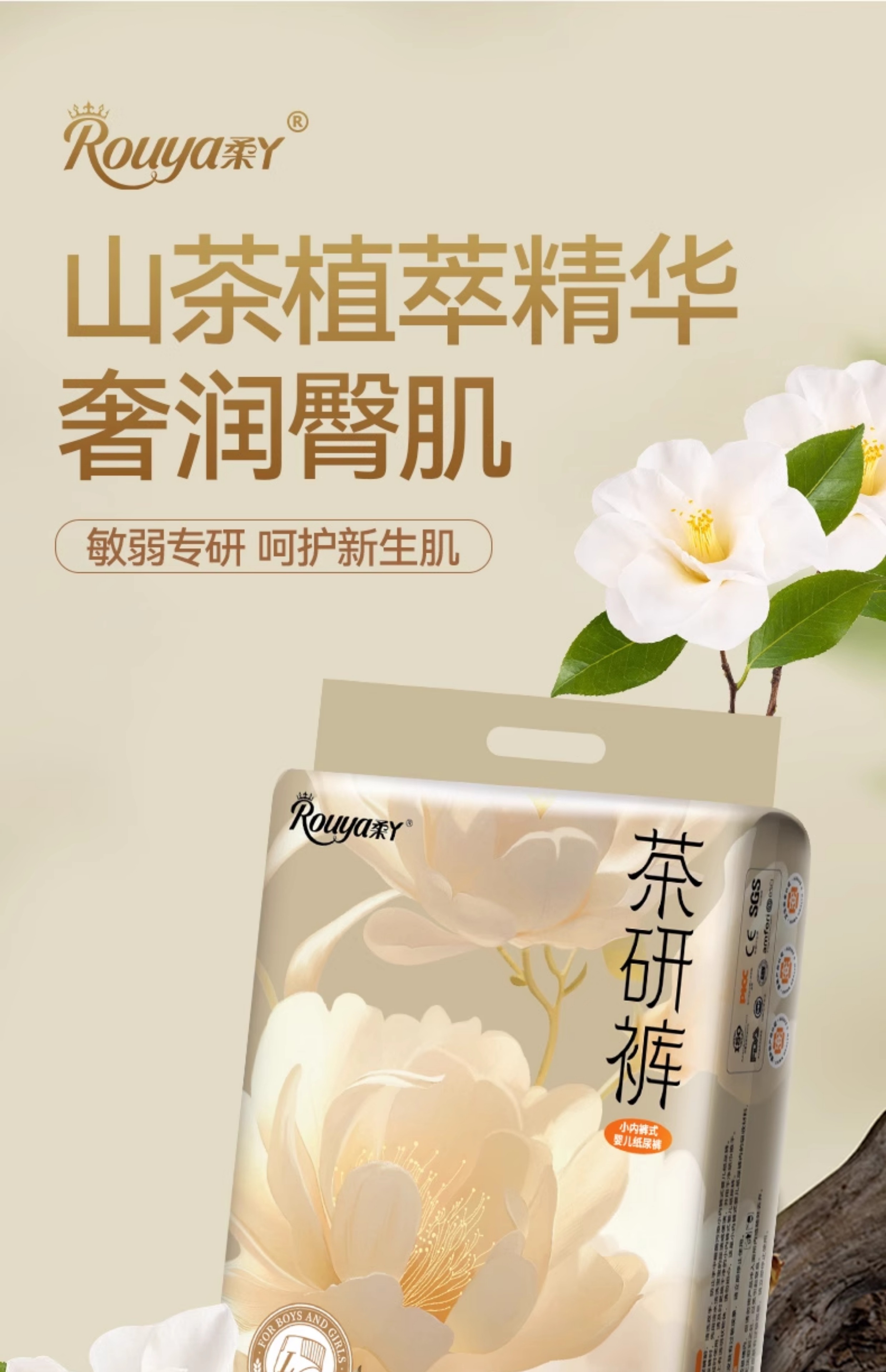 柔丫山茶花纸尿裤试用装薄款宝宝拉拉裤新生婴儿尿不湿nb