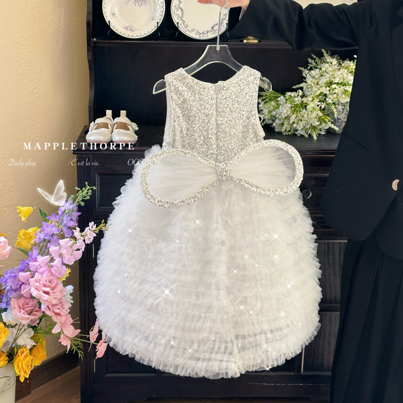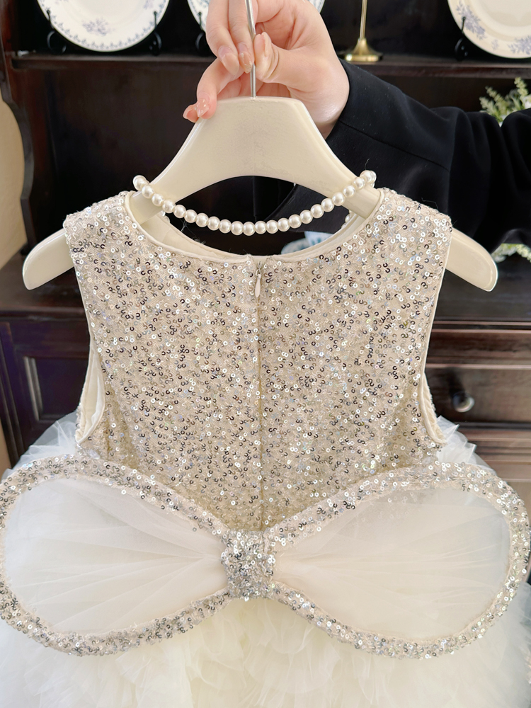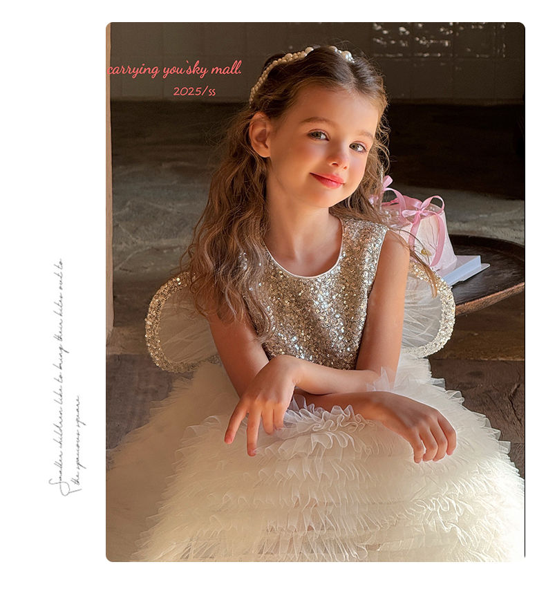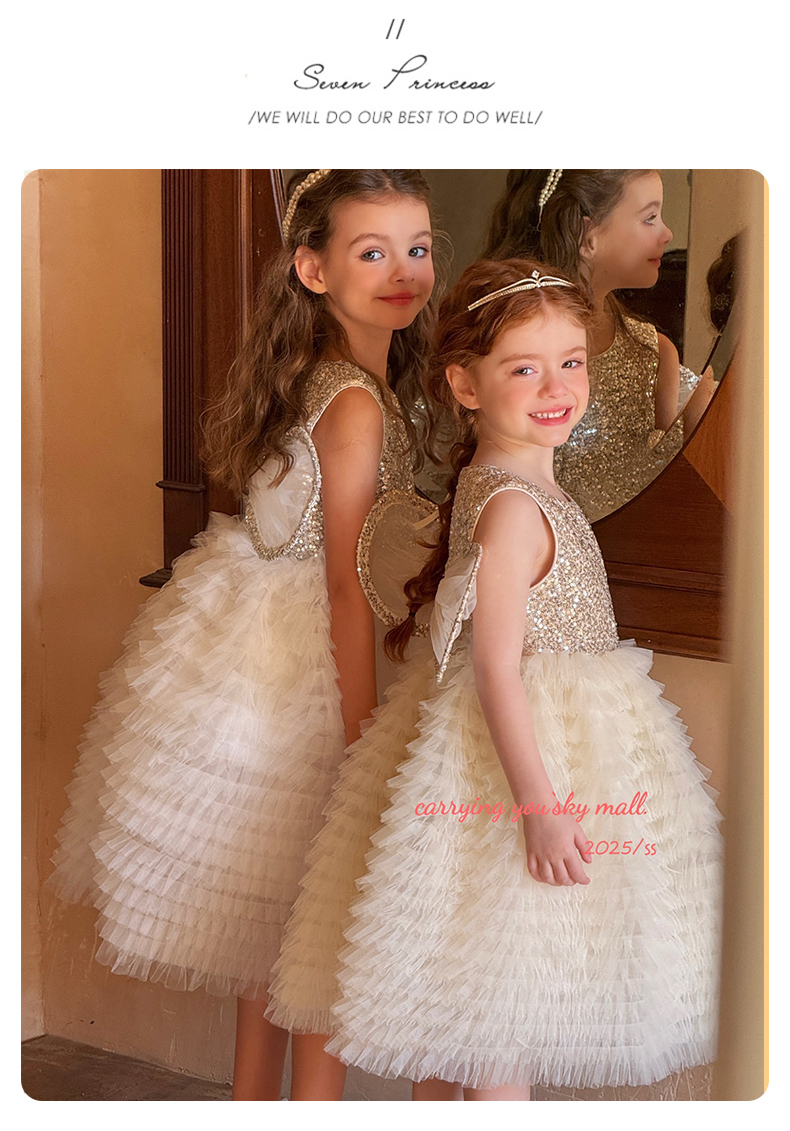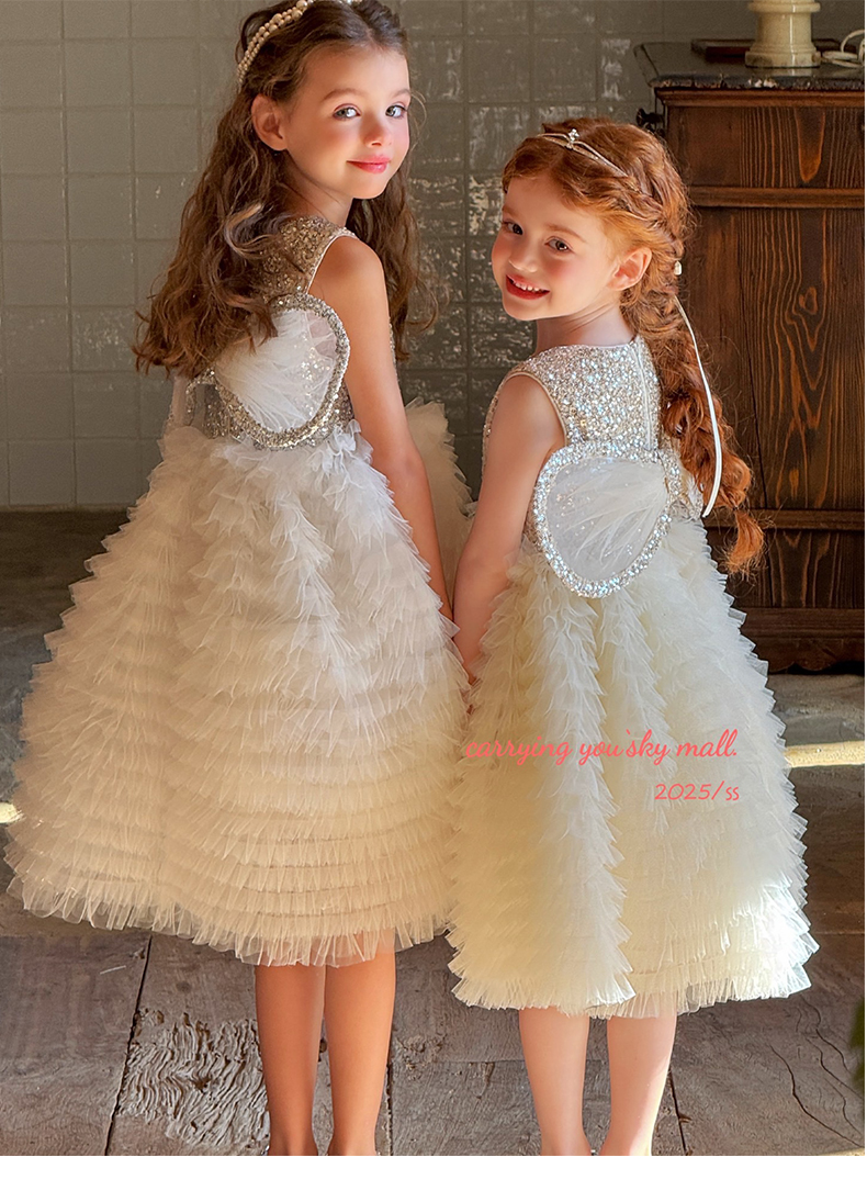 高端儿童公主裙夏季2025带翅膀蓬蓬裙女童生日六一白色礼服连衣裙