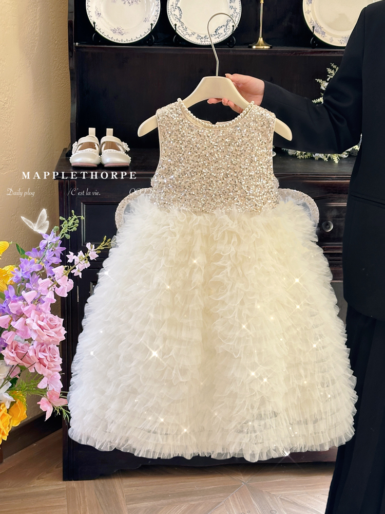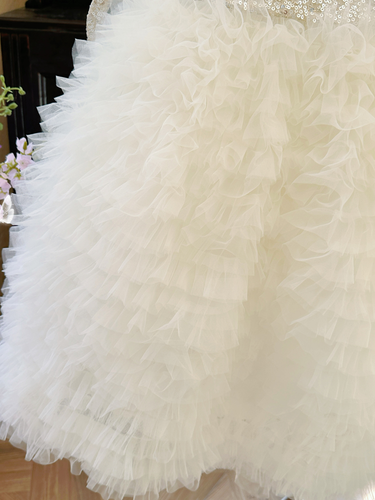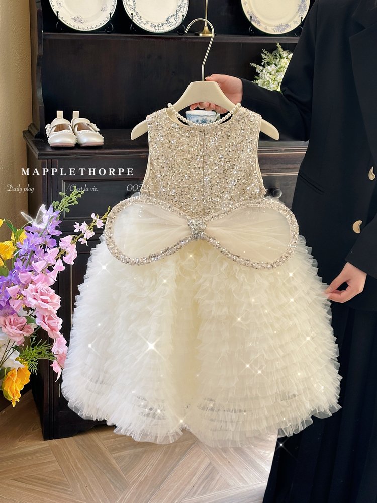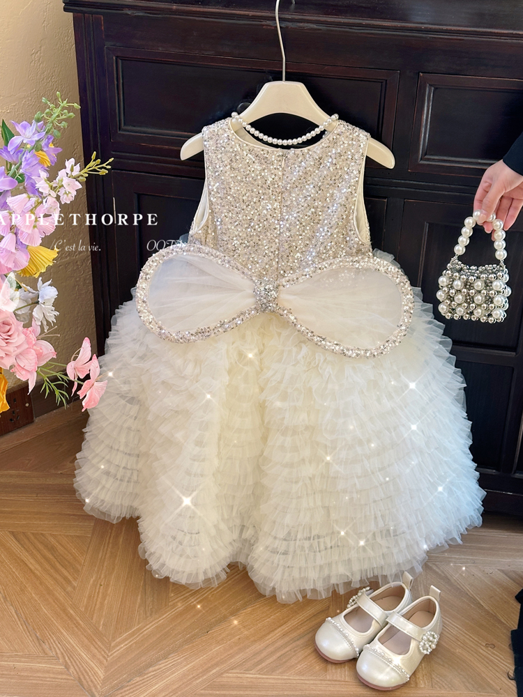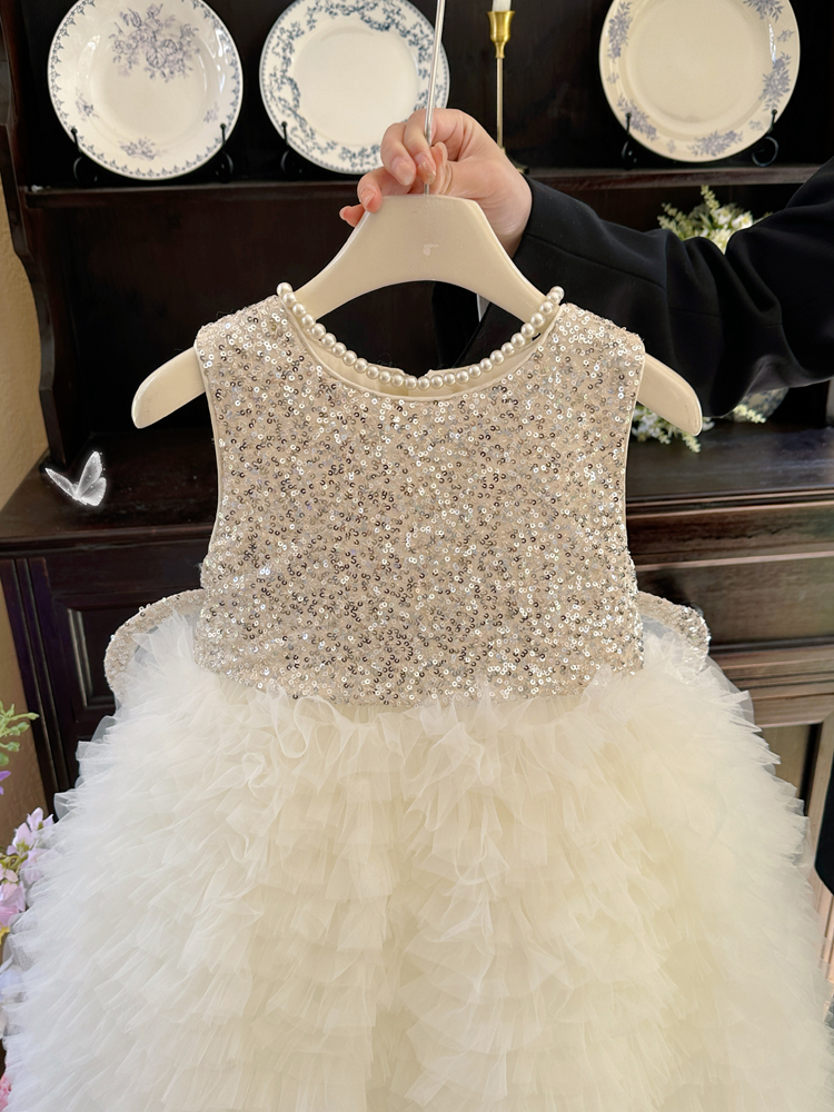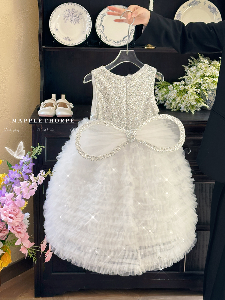 高端儿童公主裙夏季2025带翅膀蓬蓬裙女童生日六一白色礼服连衣裙