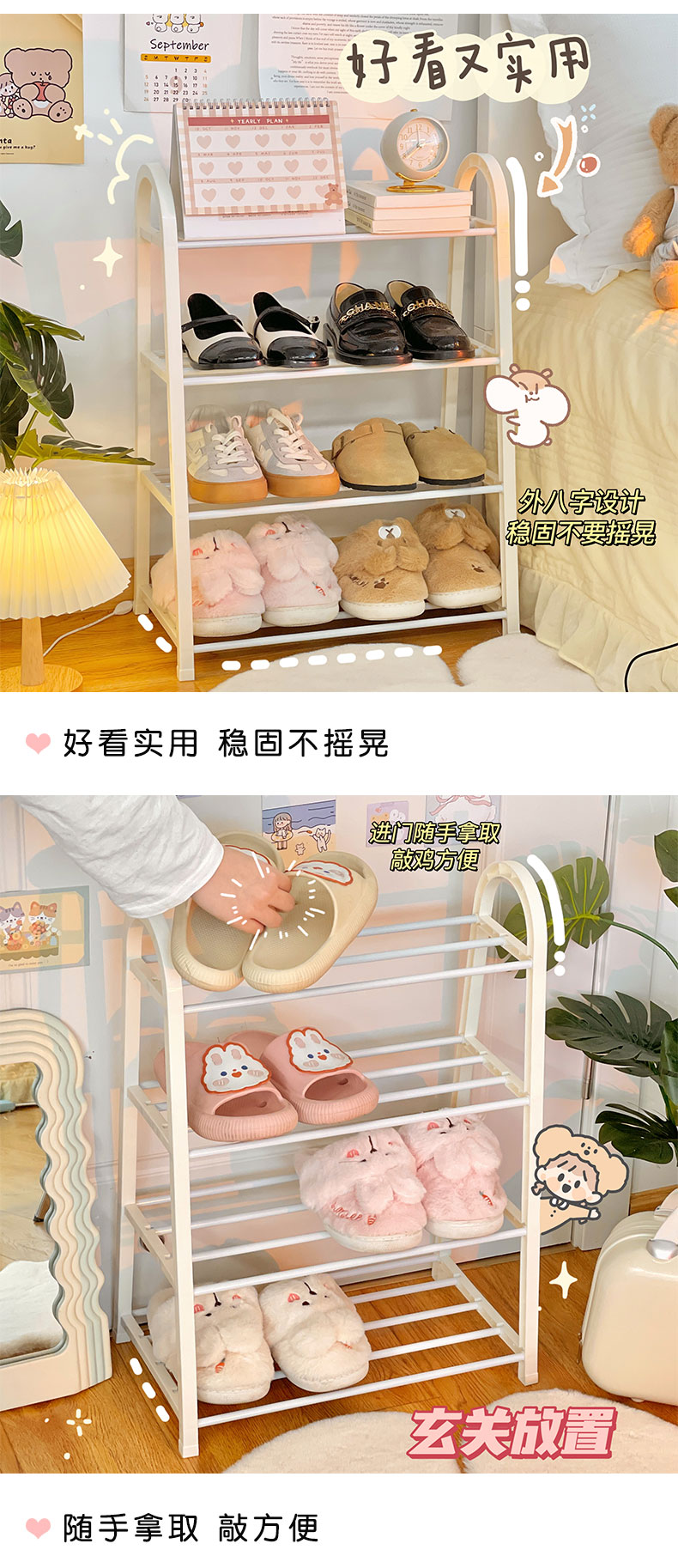 鞋架家用简易门口室内鞋子置物架ins风多层出租房宿舍收纳架鞋柜