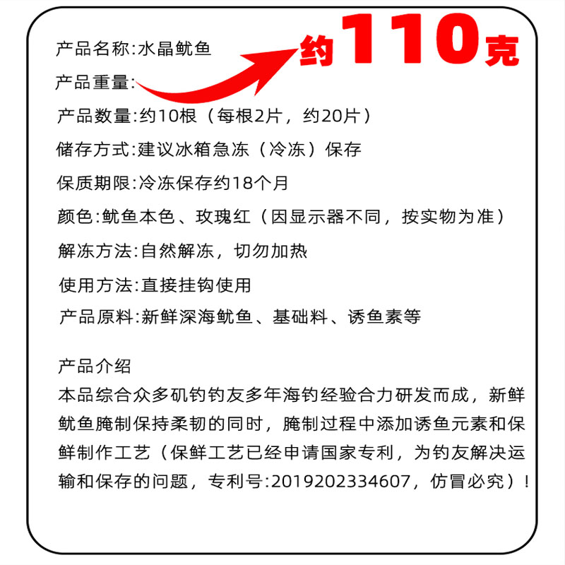 鱿鱼条海钓鱼饵船钓拉流鳕鱼黑头秘制水晶红色深海大物鱼饵远投
