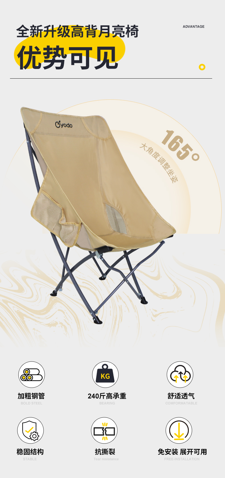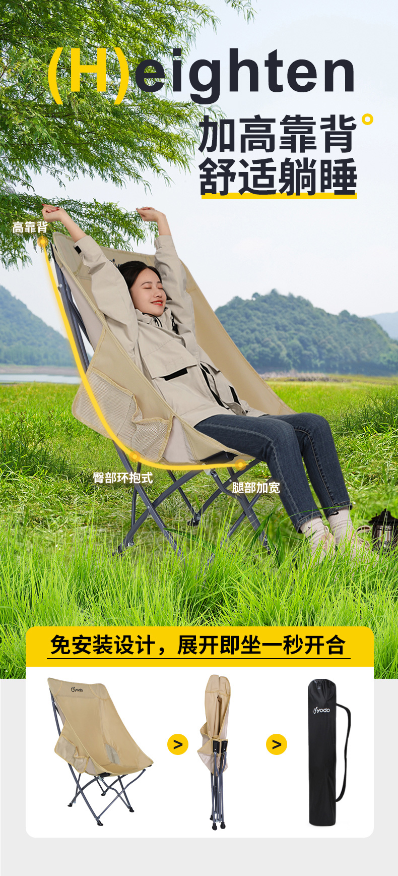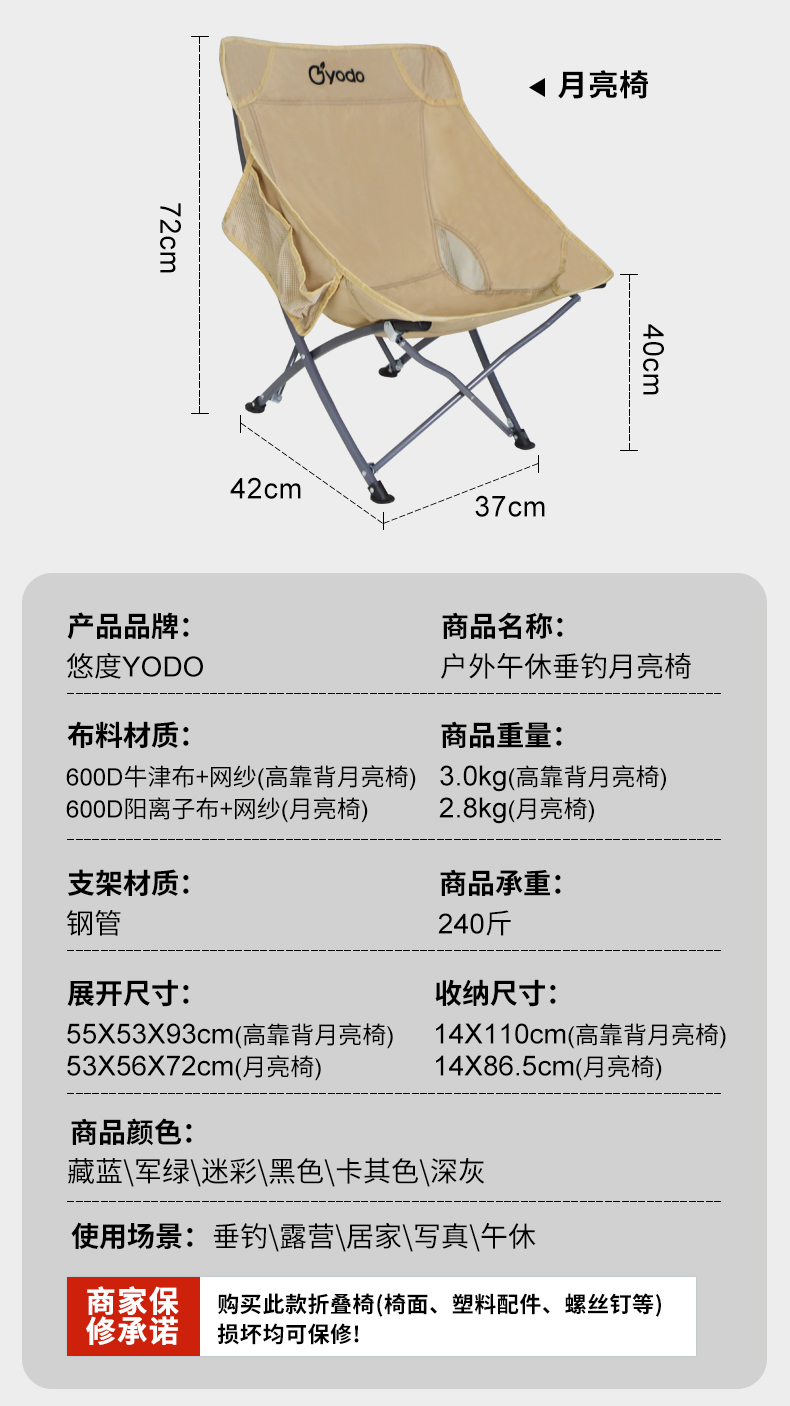 悠度户外折叠椅月亮椅露营折叠椅子便携凳子加高靠背钓鱼凳沙滩椅