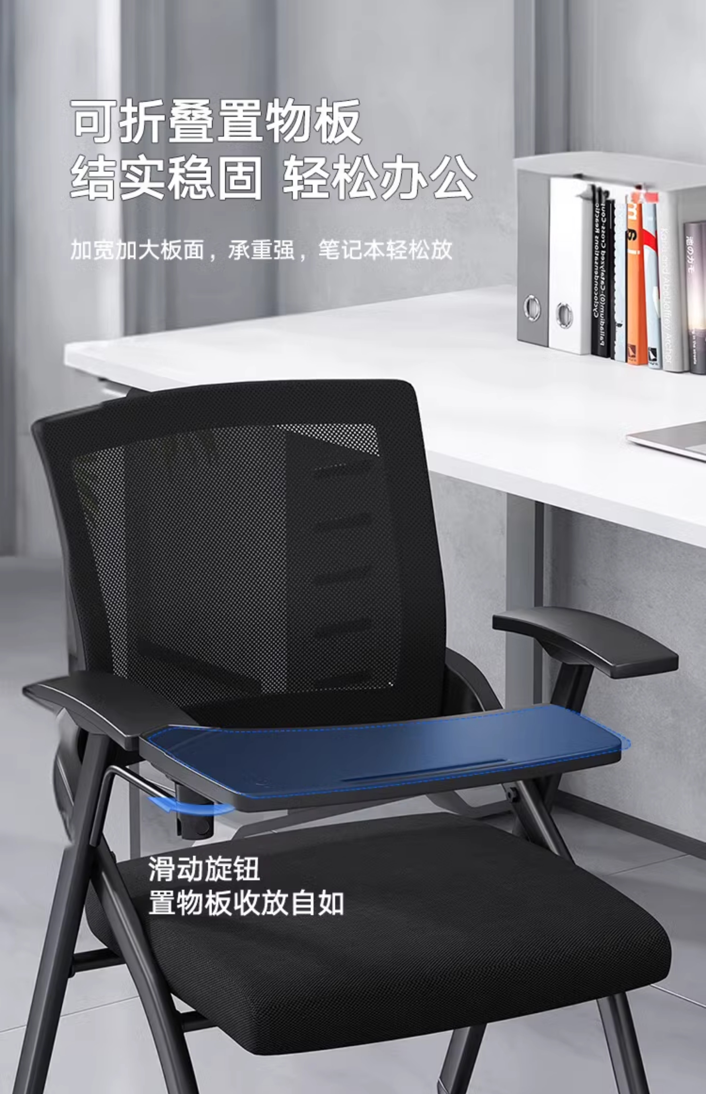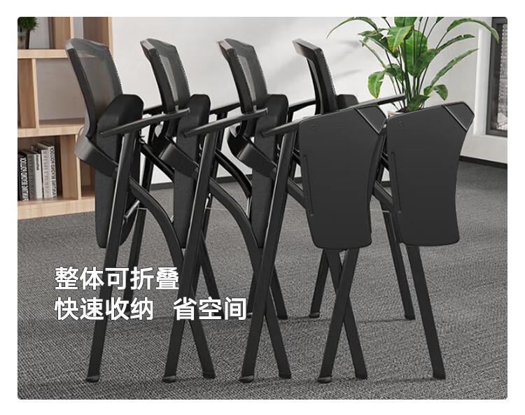 奈高(NAIGAO)培训会议办公家具椅子可折叠万向轮舒适久坐黑色