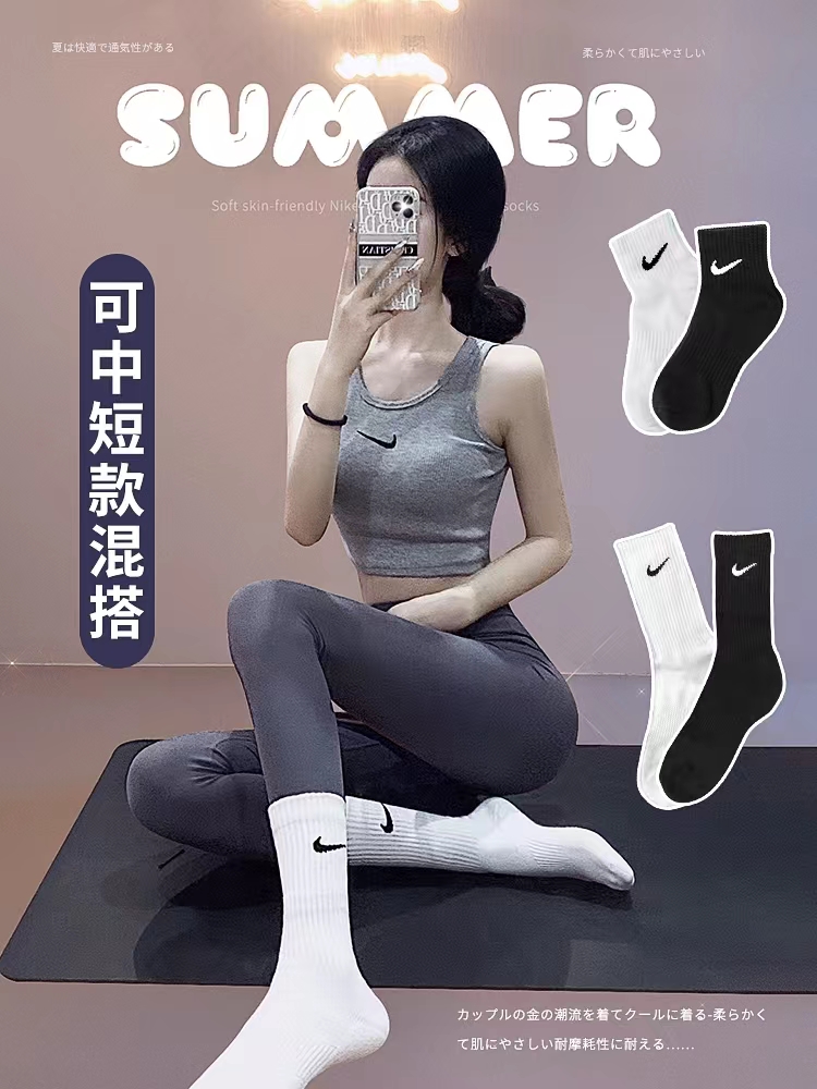 夏季袜子男款中筒袜纯棉吸汗防臭女青少年运动长筒春秋男士篮球袜