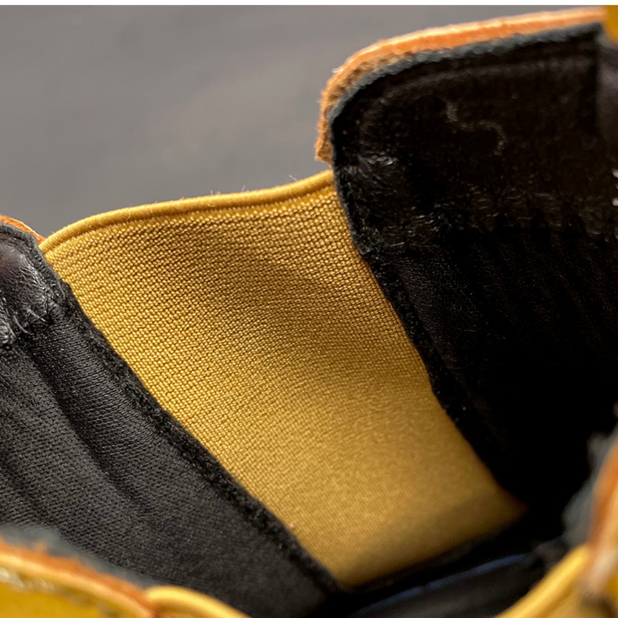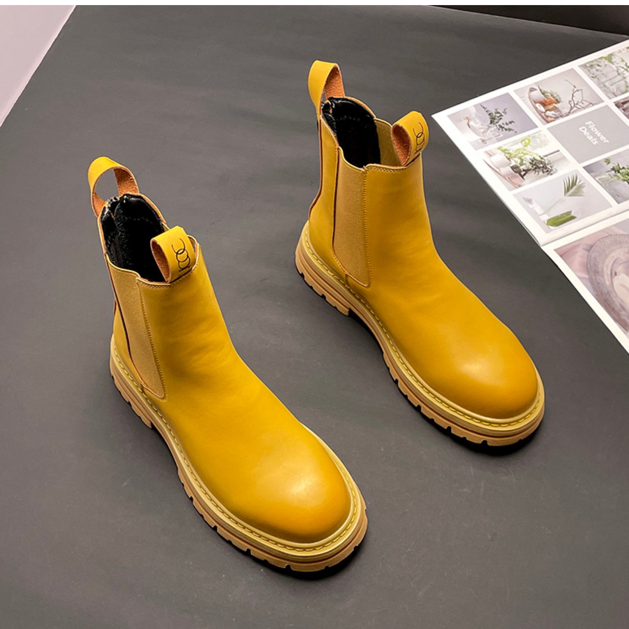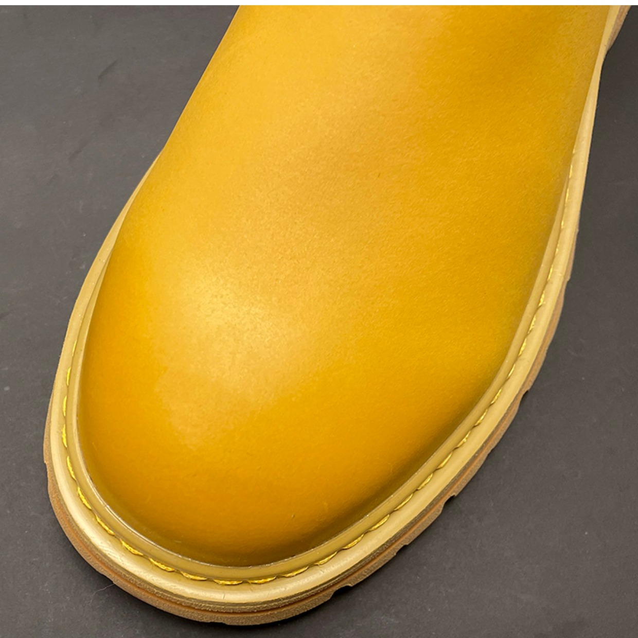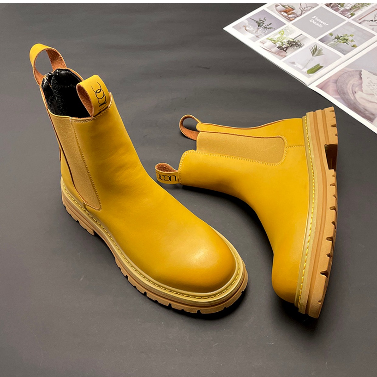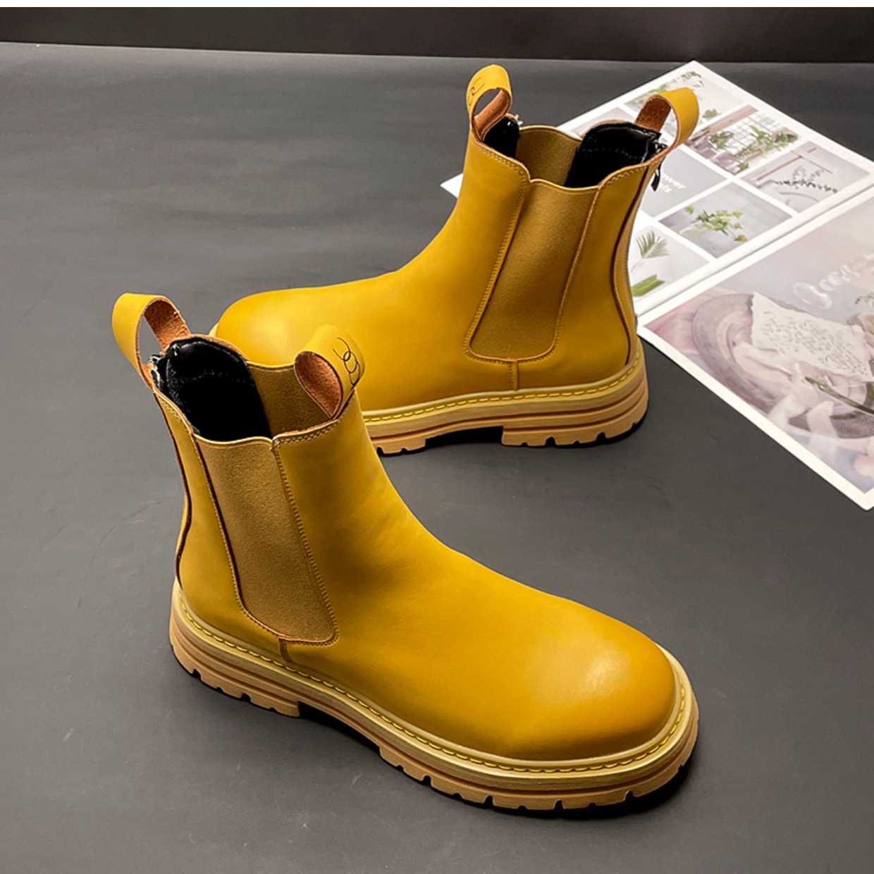 马丁靴男春季新款中帮英伦风套脚时尚大黄靴子内增高软皮切尔西靴