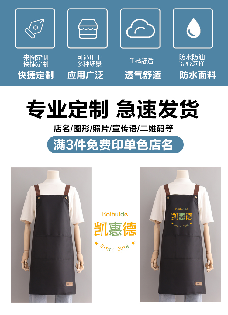 简约日系可爱情侣防水围裙女厨房家用做饭新款围腰男上班工作定制