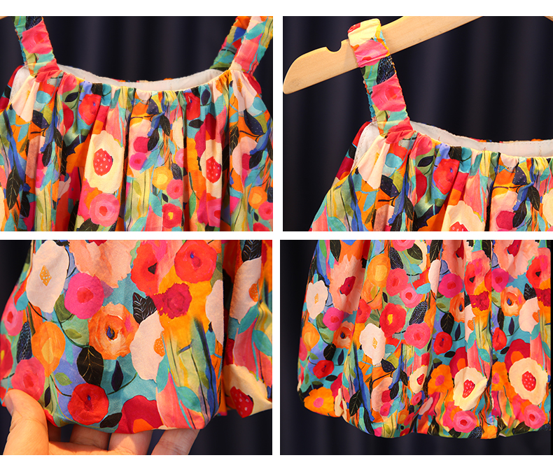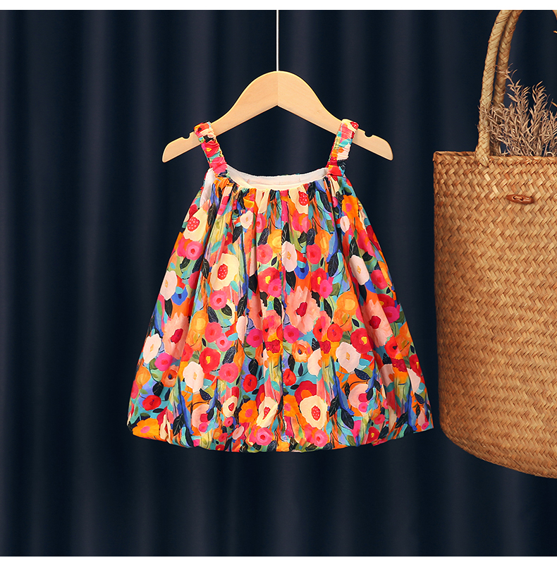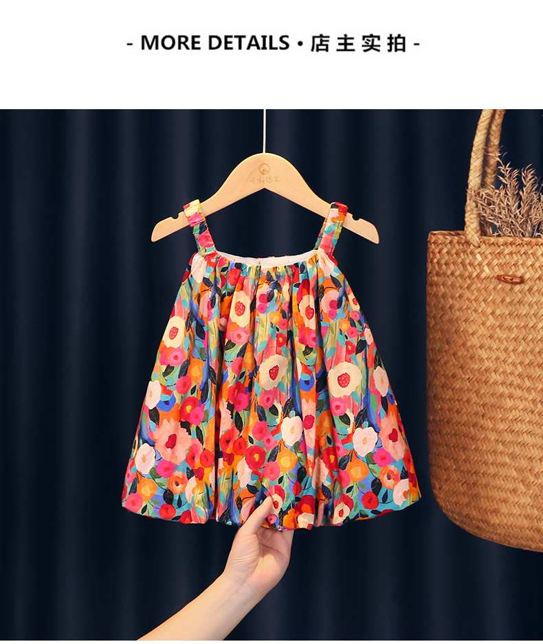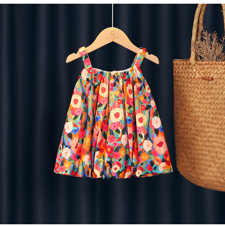 女童连衣裙夏2025新款女宝宝洋气韩式碎花吊带裙女孩宽松沙滩裙子