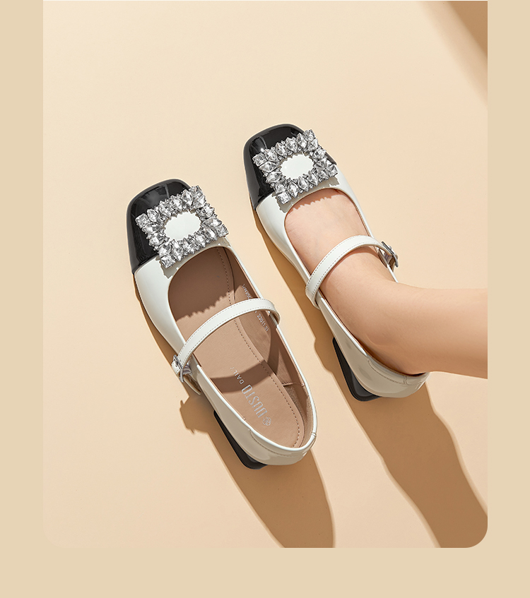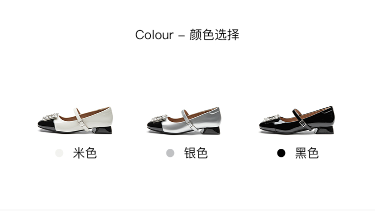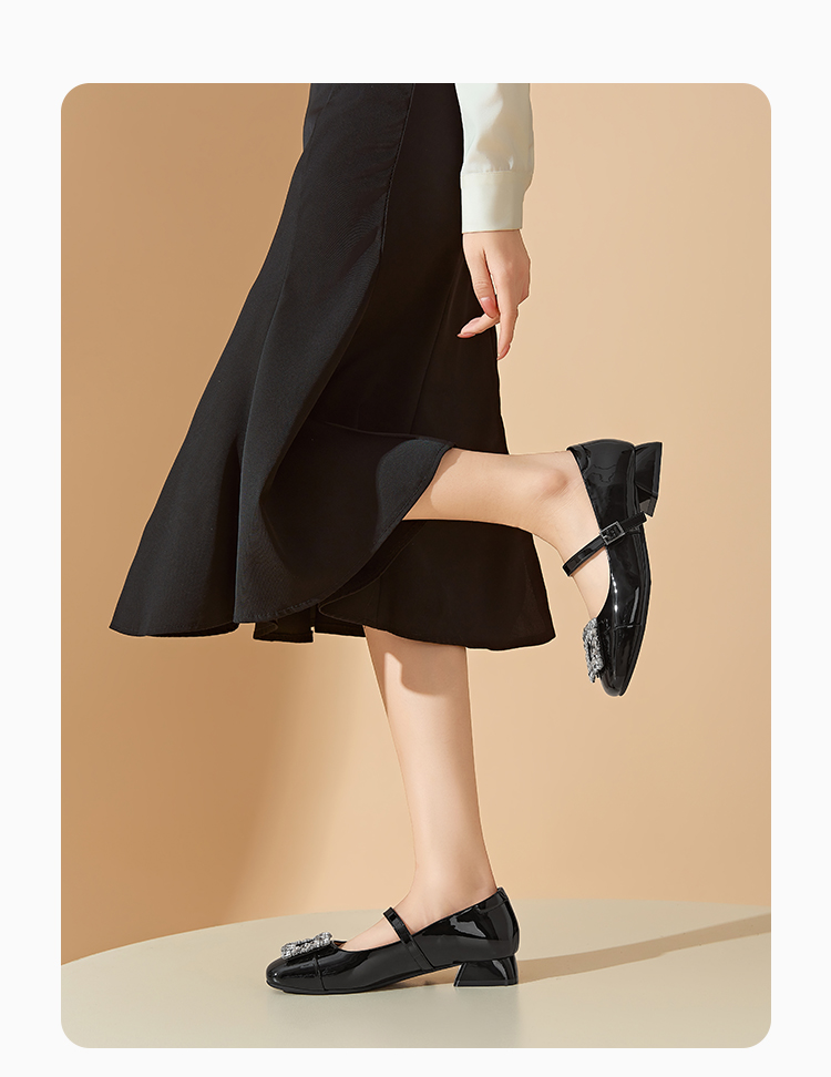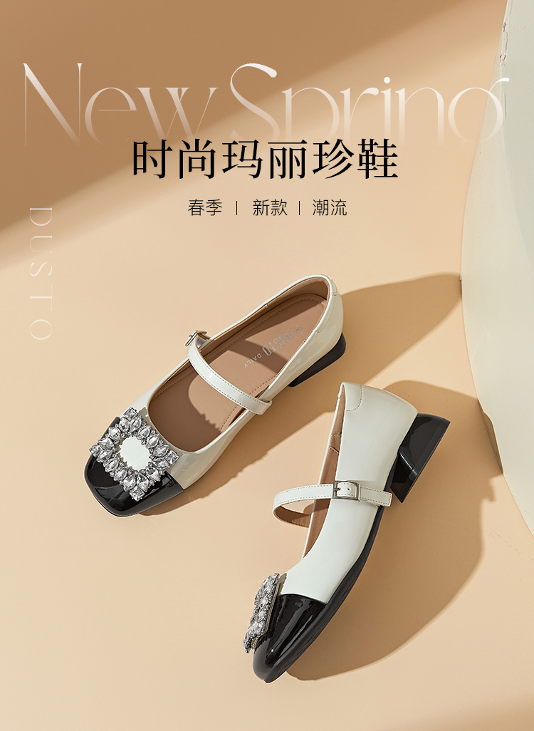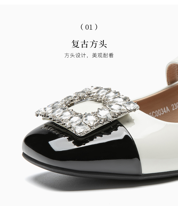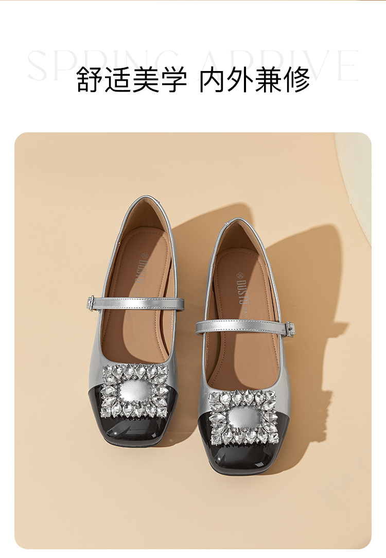 大东女鞋玛丽珍鞋2025春季新款粗跟小香风单鞋浅口法式小皮鞋水钻