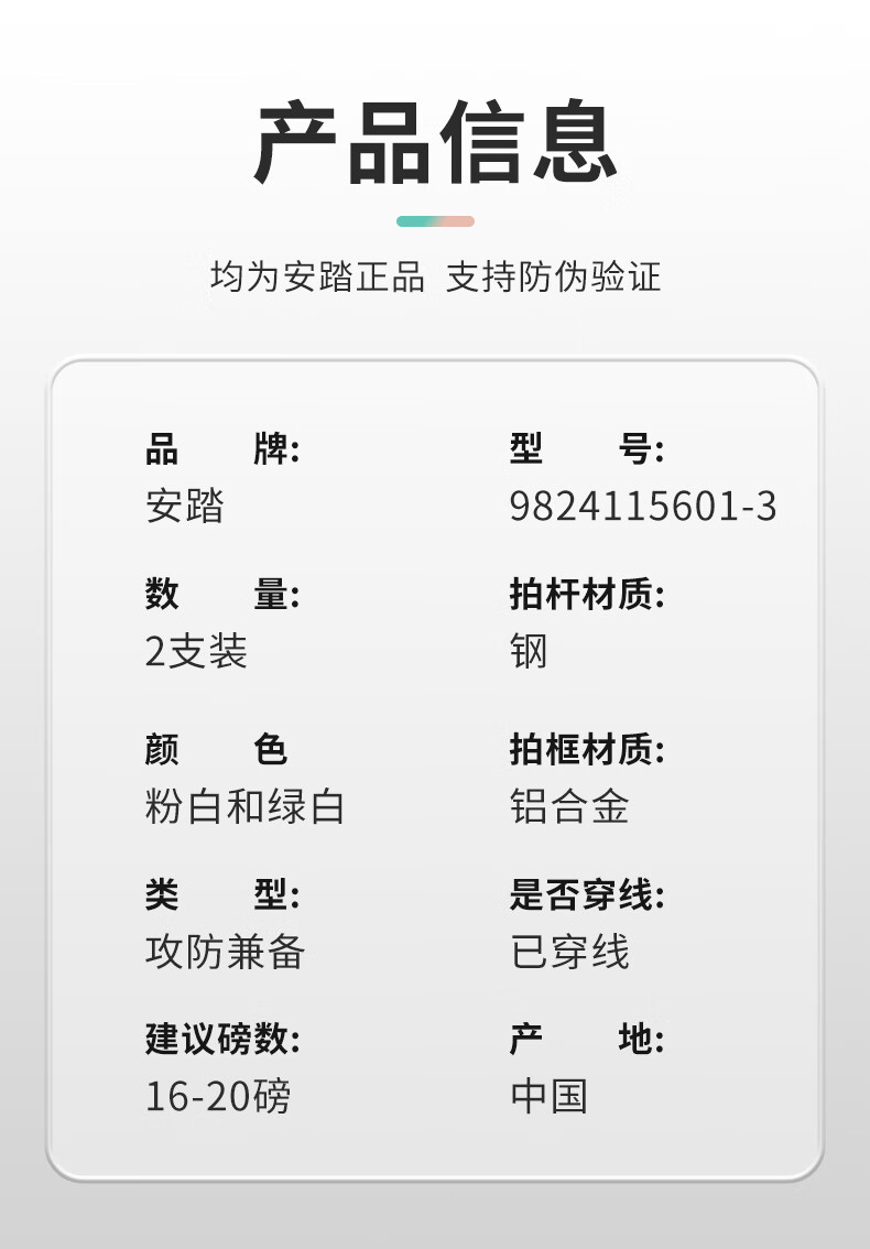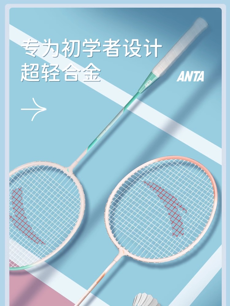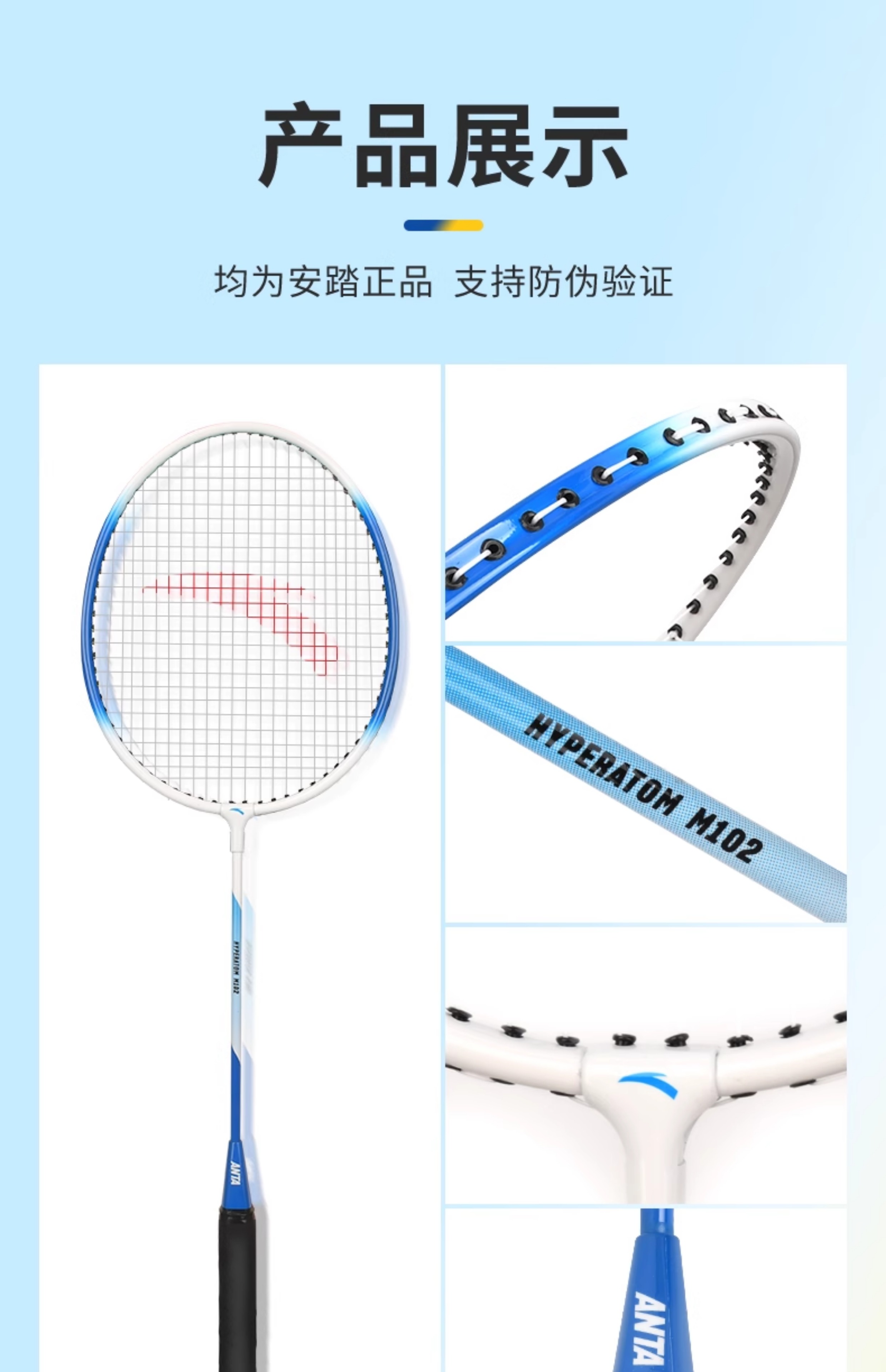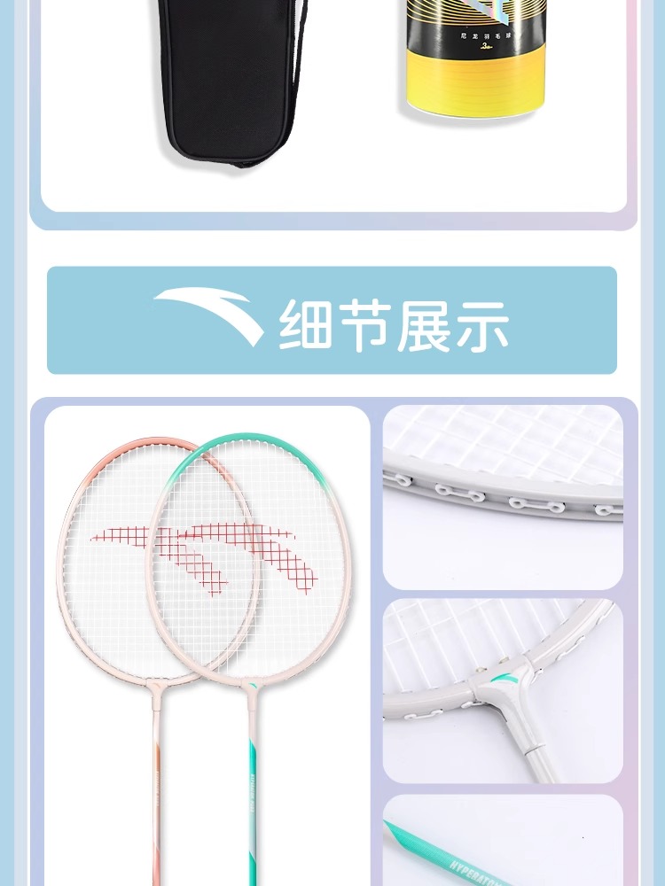 安踏羽毛球拍正品旗舰店全碳素纤维成人超轻双拍装备专业耐打套装