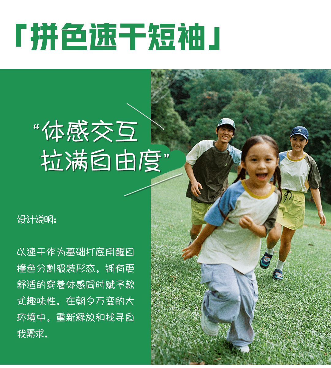 ACMEITEM爱棵米 夏季亲子轻量速干短袖运动户外撞色T恤上衣男女