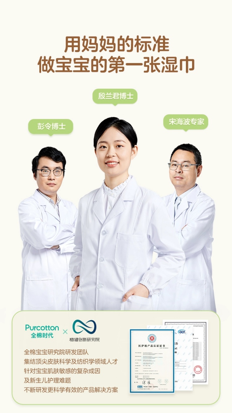 全棉时代婴儿湿巾纯棉宝宝手口屁专用湿纸巾70抽