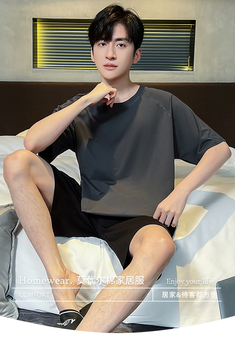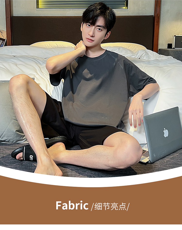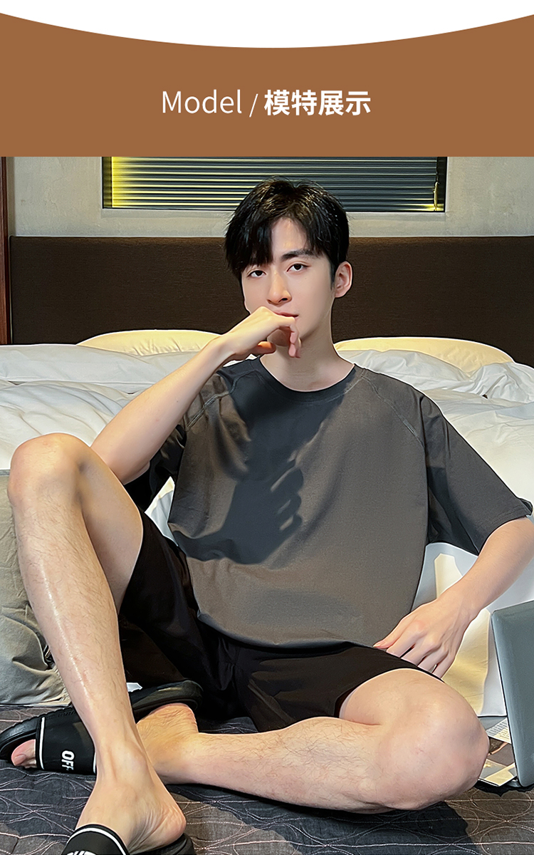 夏季男士加肥加大码短袖睡衣套装家居服薄款夏天可外穿学生青少年
