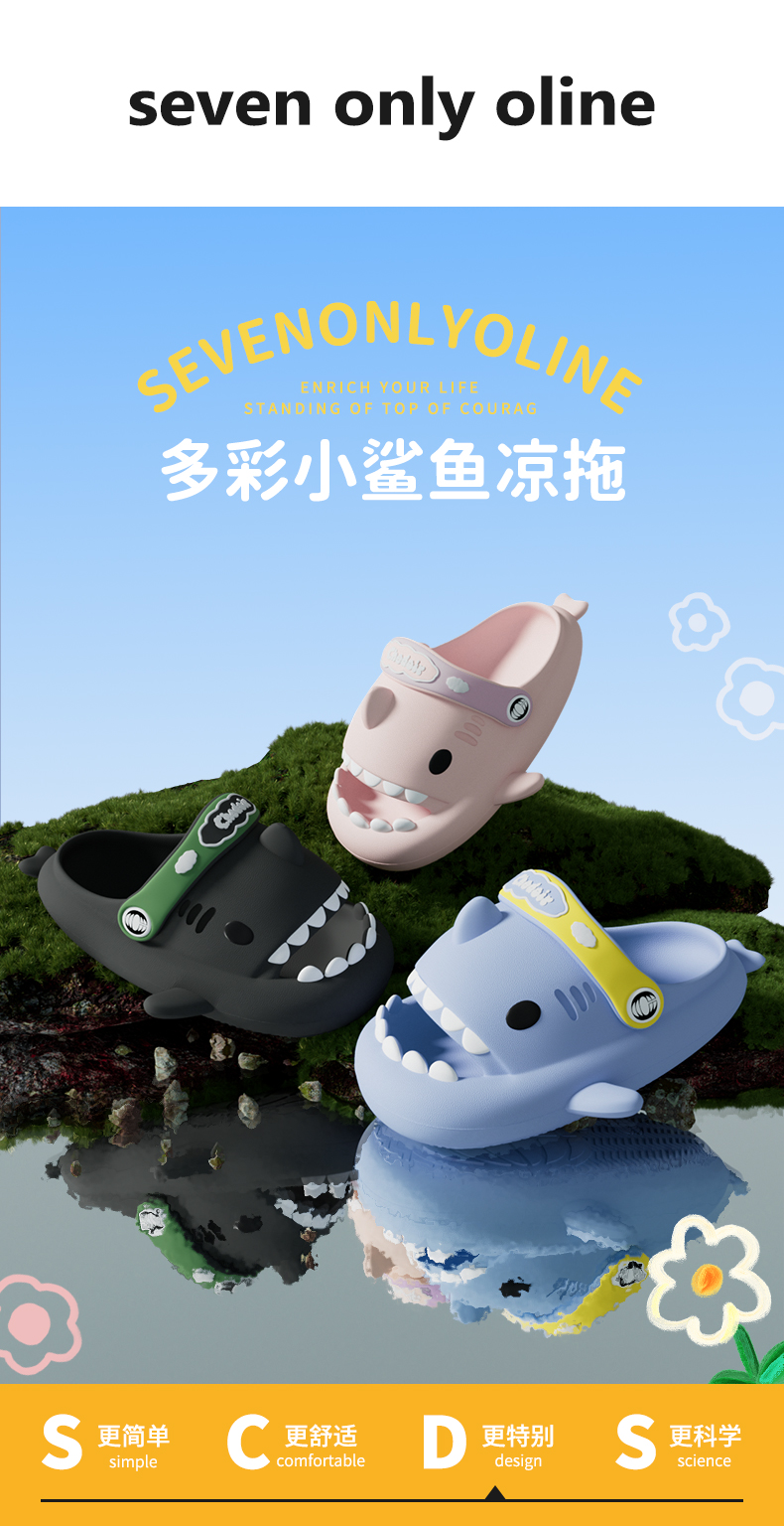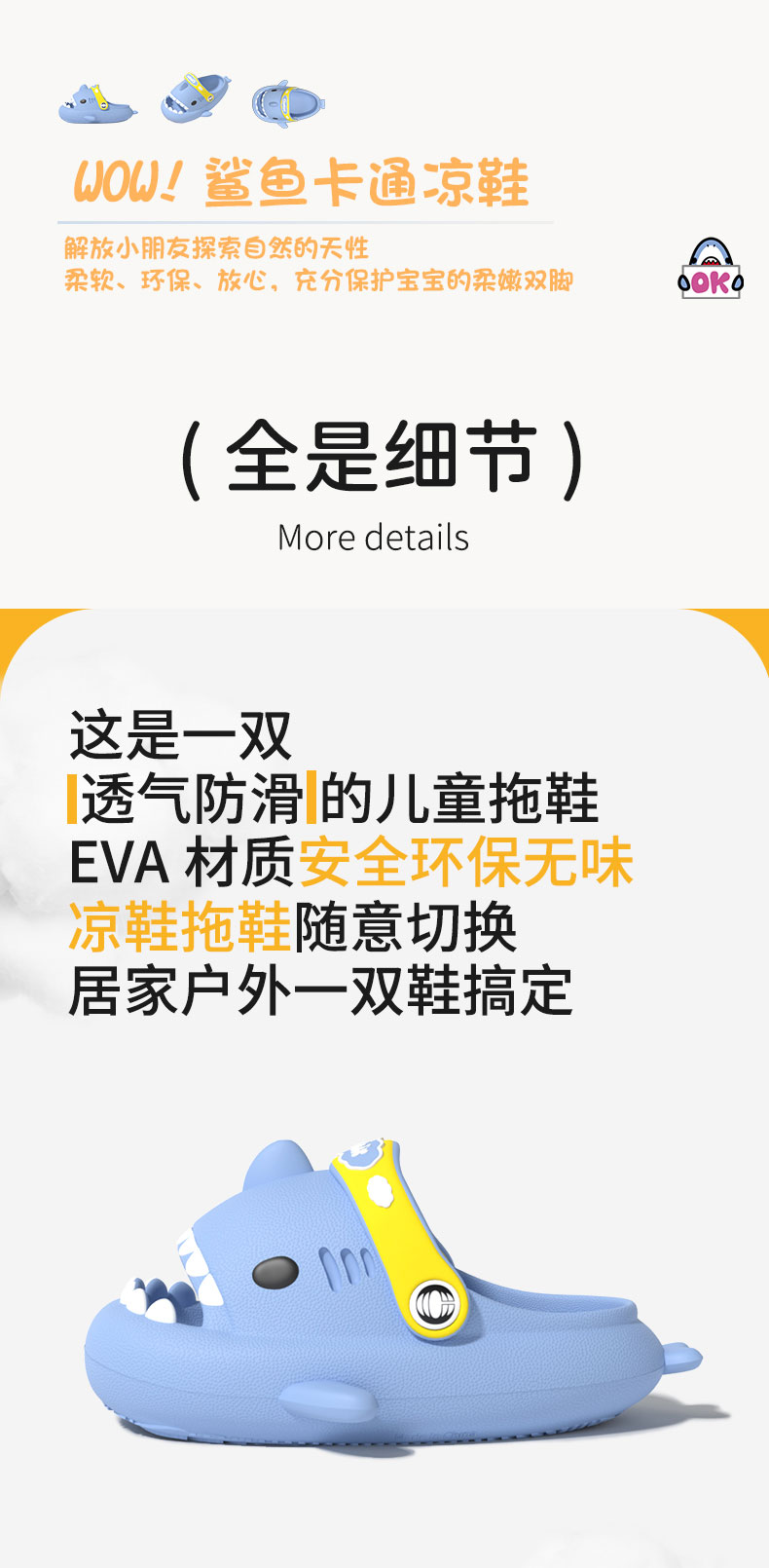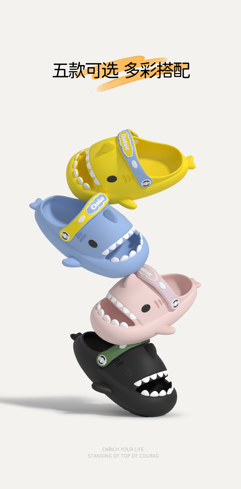 防撞儿童鲨鱼拖鞋夏季抗菌防滑踩屎感男童女童宝宝洞洞鞋沙滩凉鞋