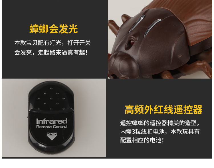 抖音遥控蟑螂玩具小强仿真电动小虫子假昆虫创意礼物整蛊道具恶搞