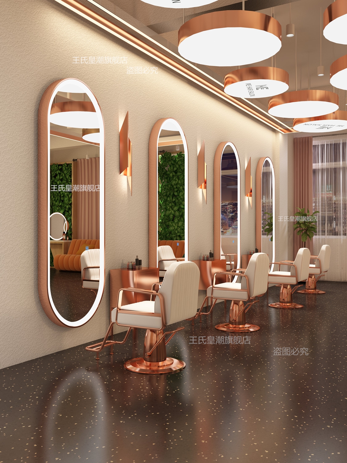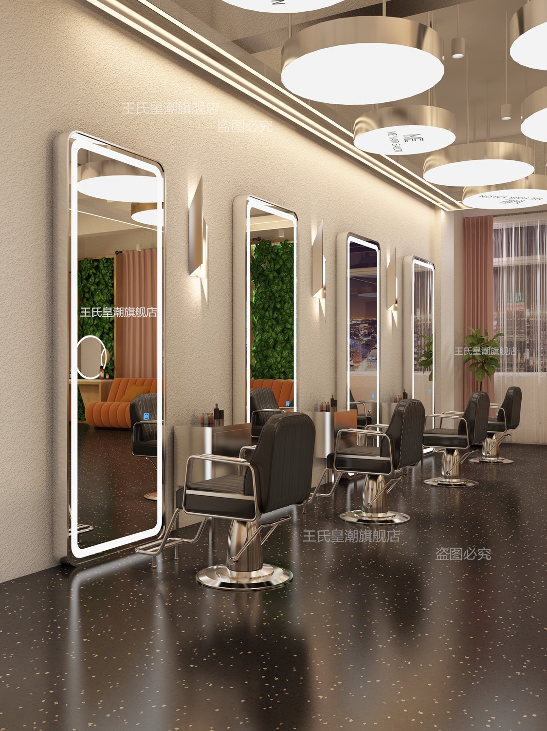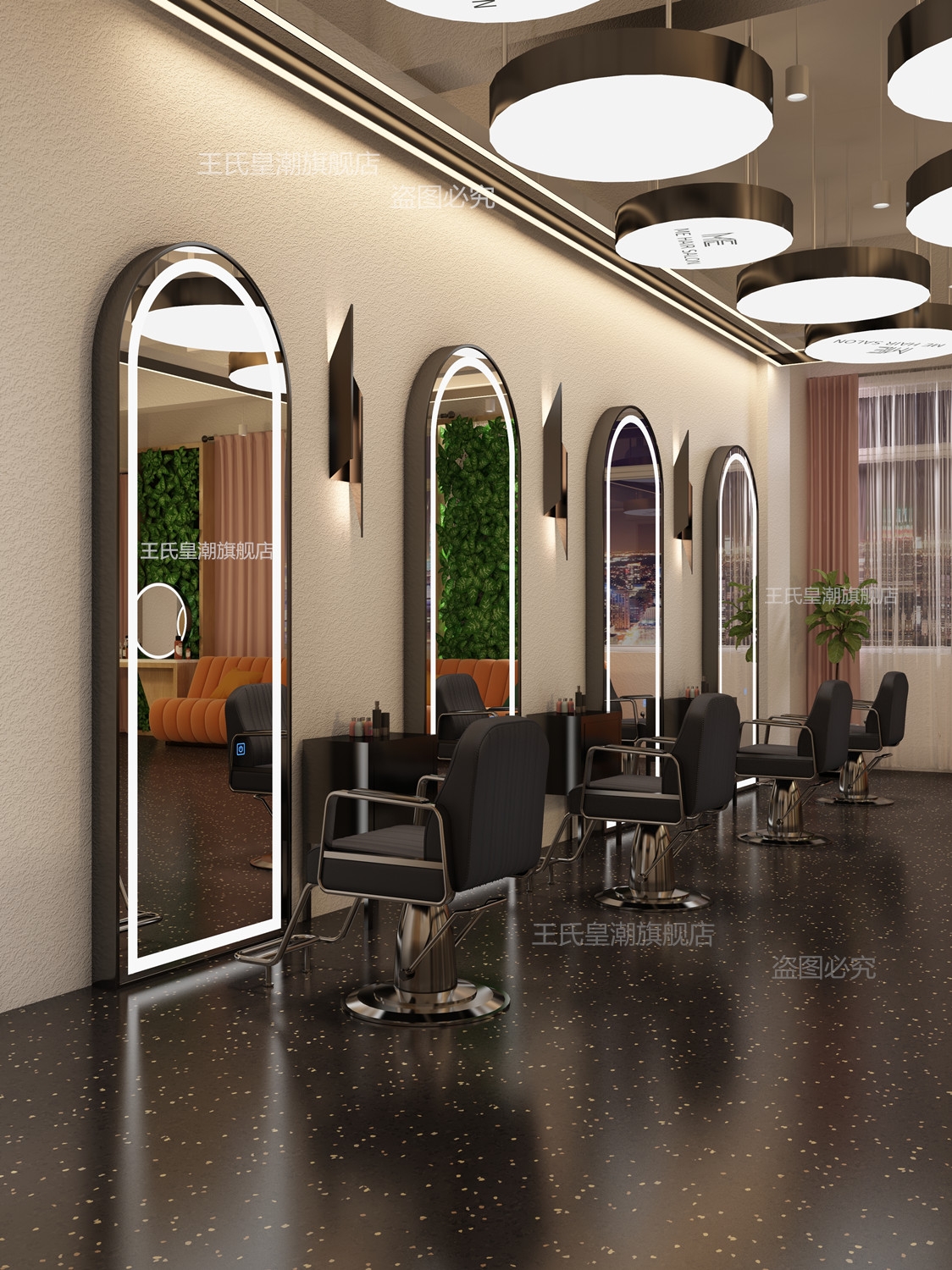 理发店镜子发廊专用美发店镜台led灯网红潮款单面剪发烫染镜落地
