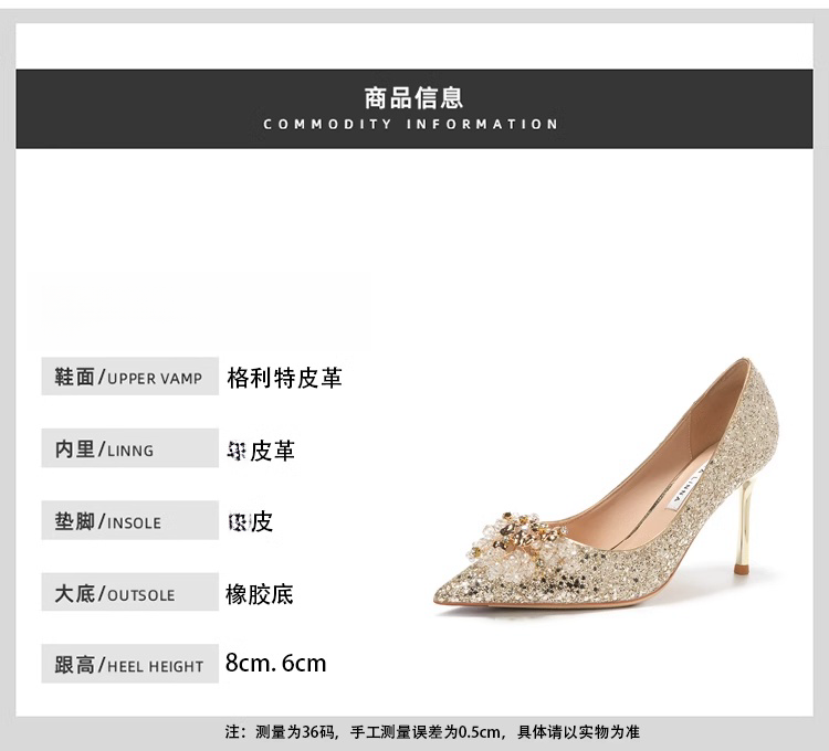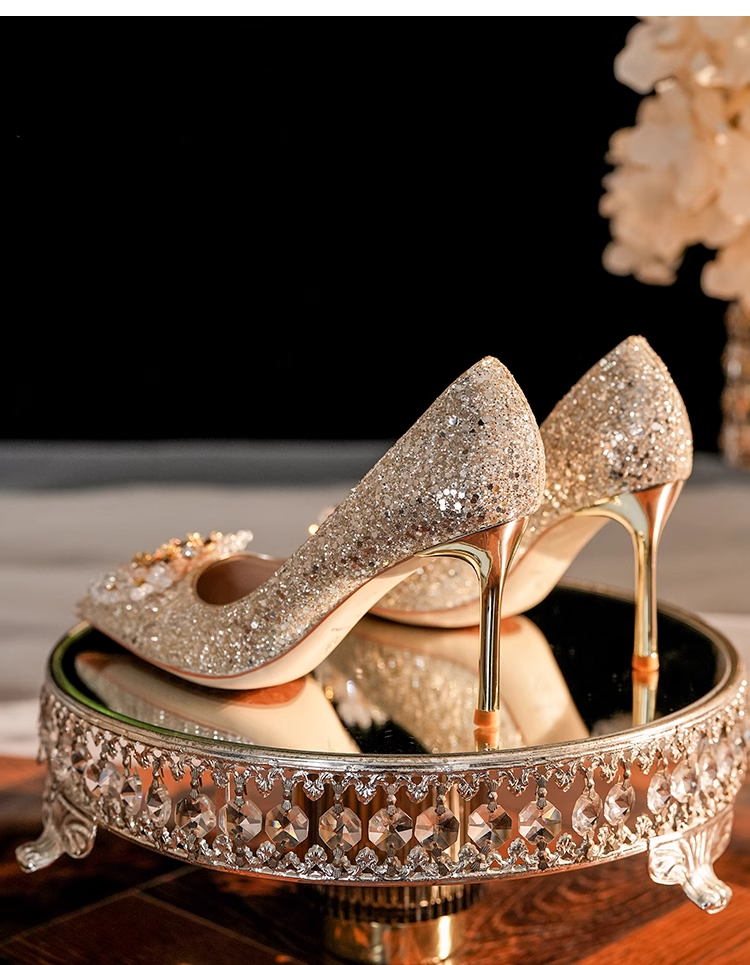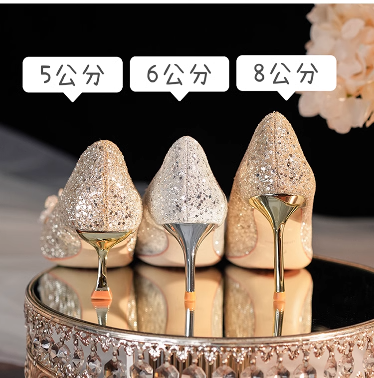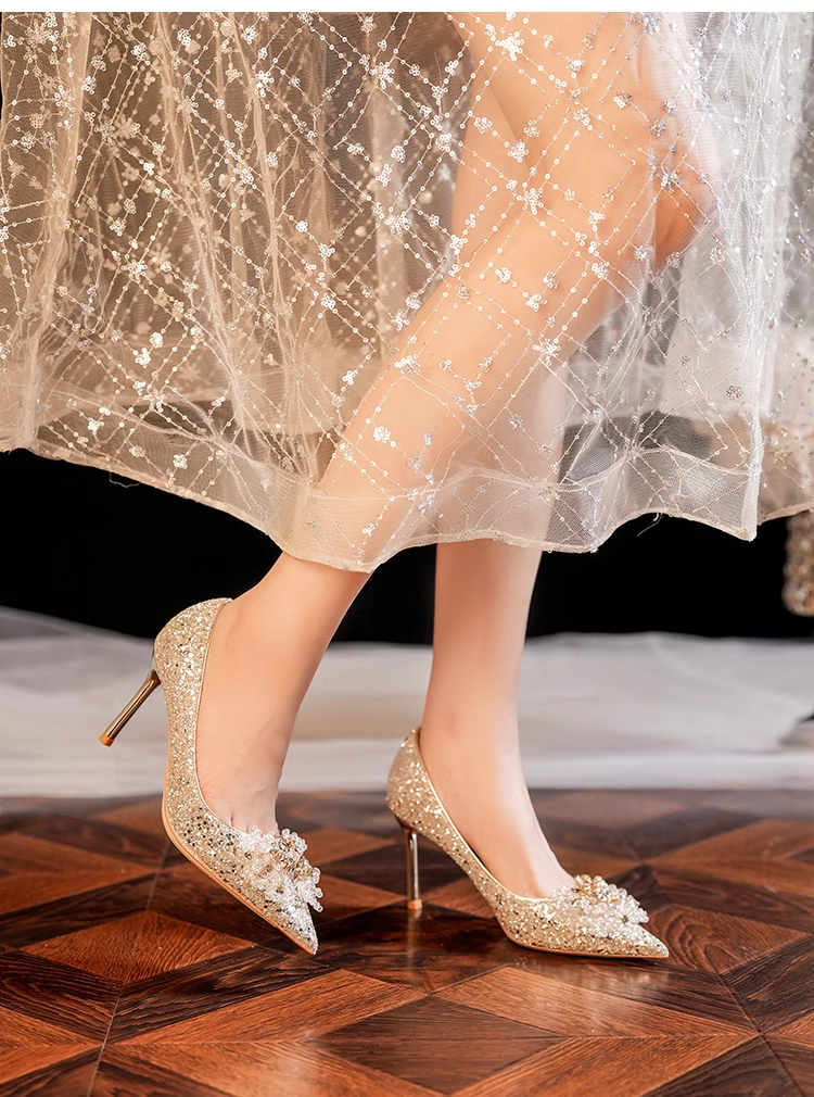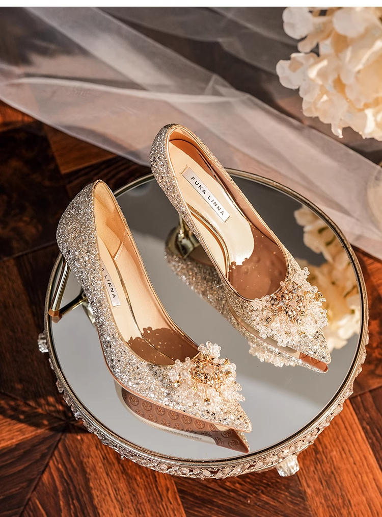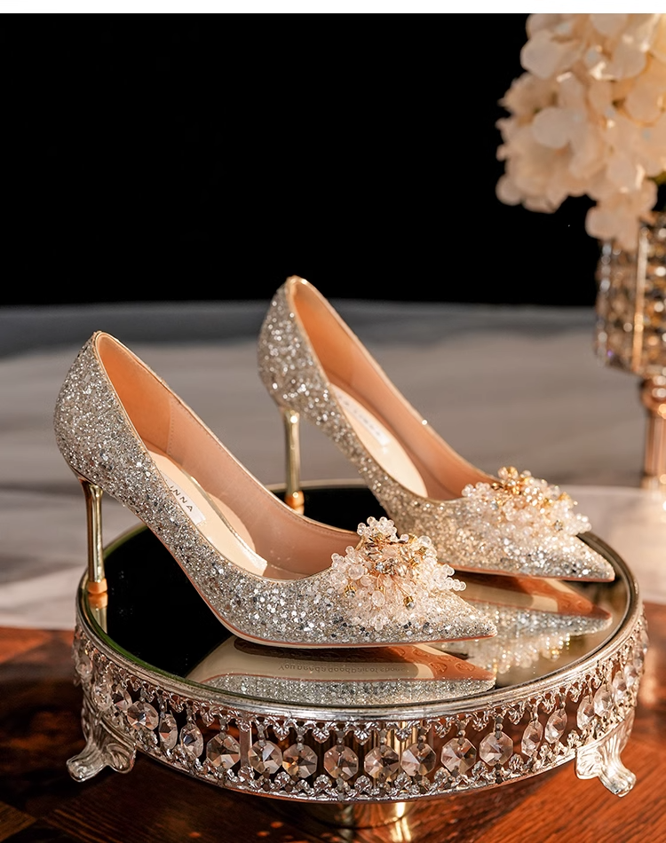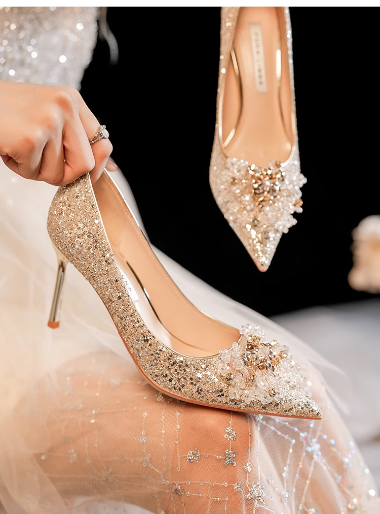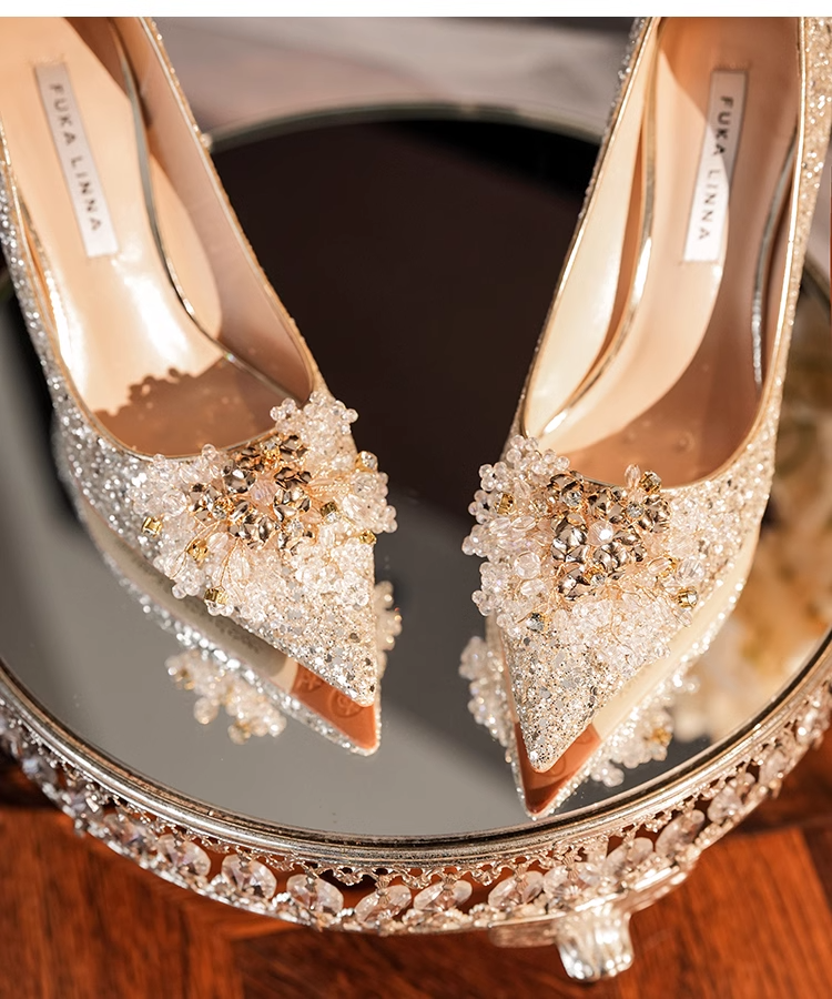 小众婚鞋新娘鞋秀禾婚纱两穿不累脚高级感水晶鞋细跟高跟鞋女单鞋