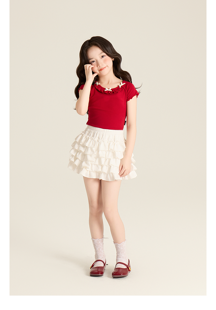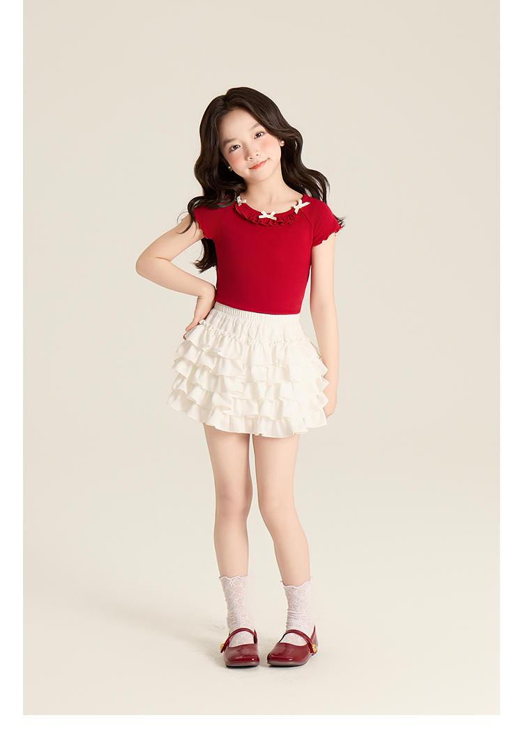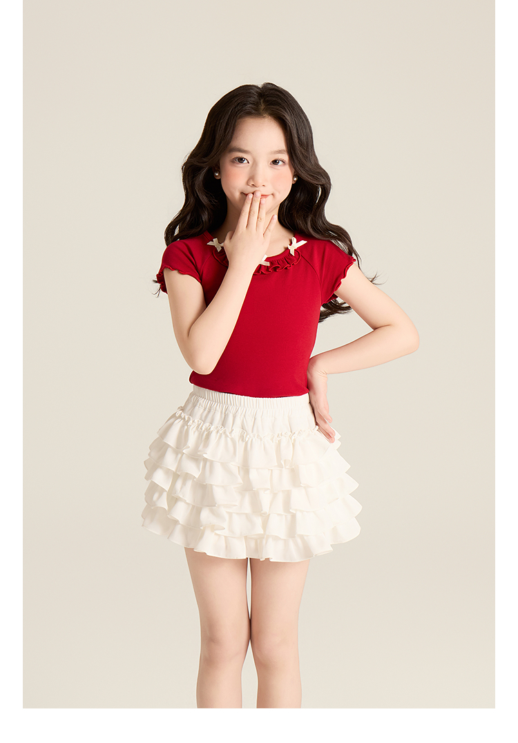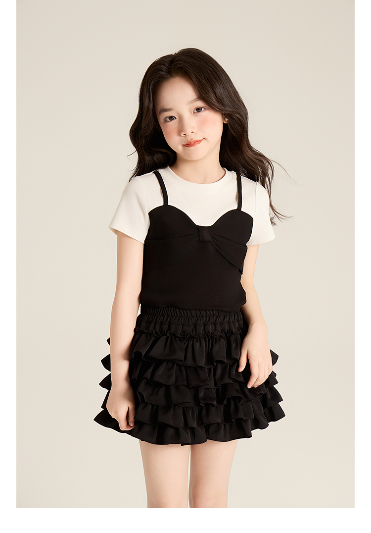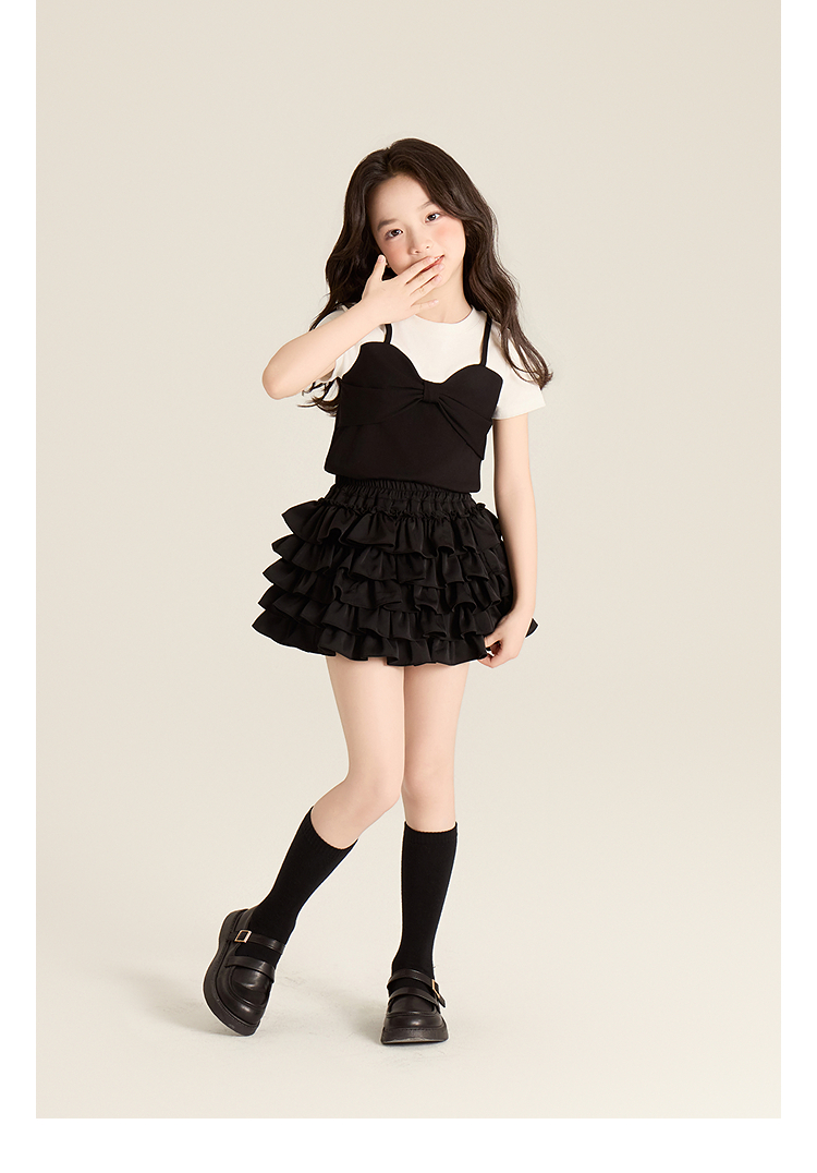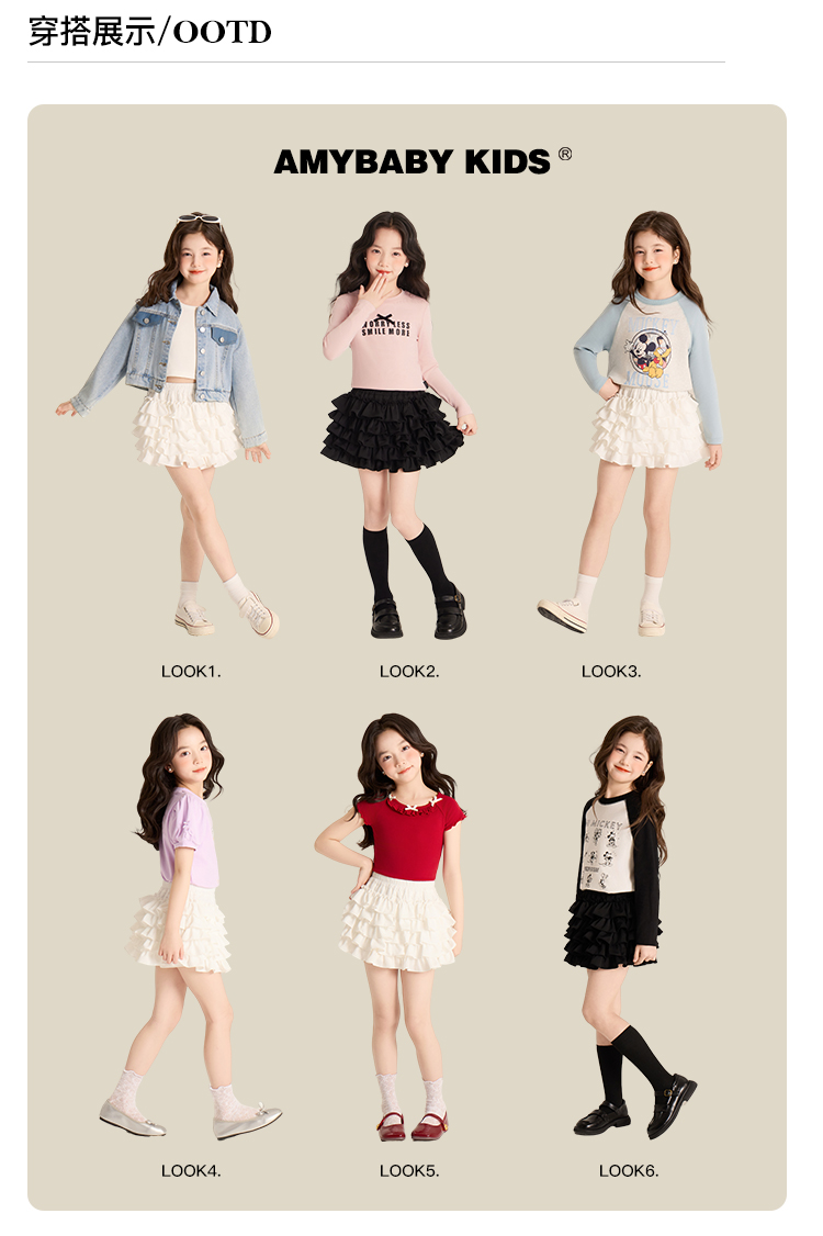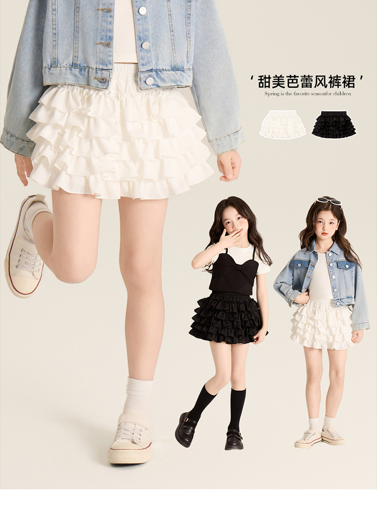 Amybaby女童裙子夏季2025新款韩系甜美芭蕾风荷叶边蓬蓬半身裙裤