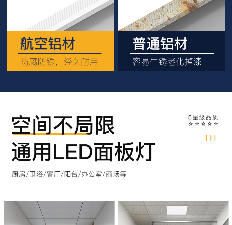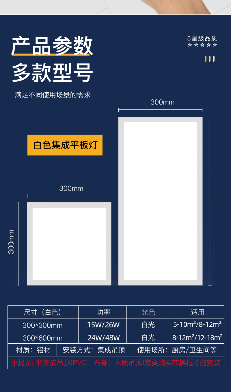卫生间浴室集成吊顶led灯嵌入式厨房天花平板灯铝扣板厨卫吸顶灯