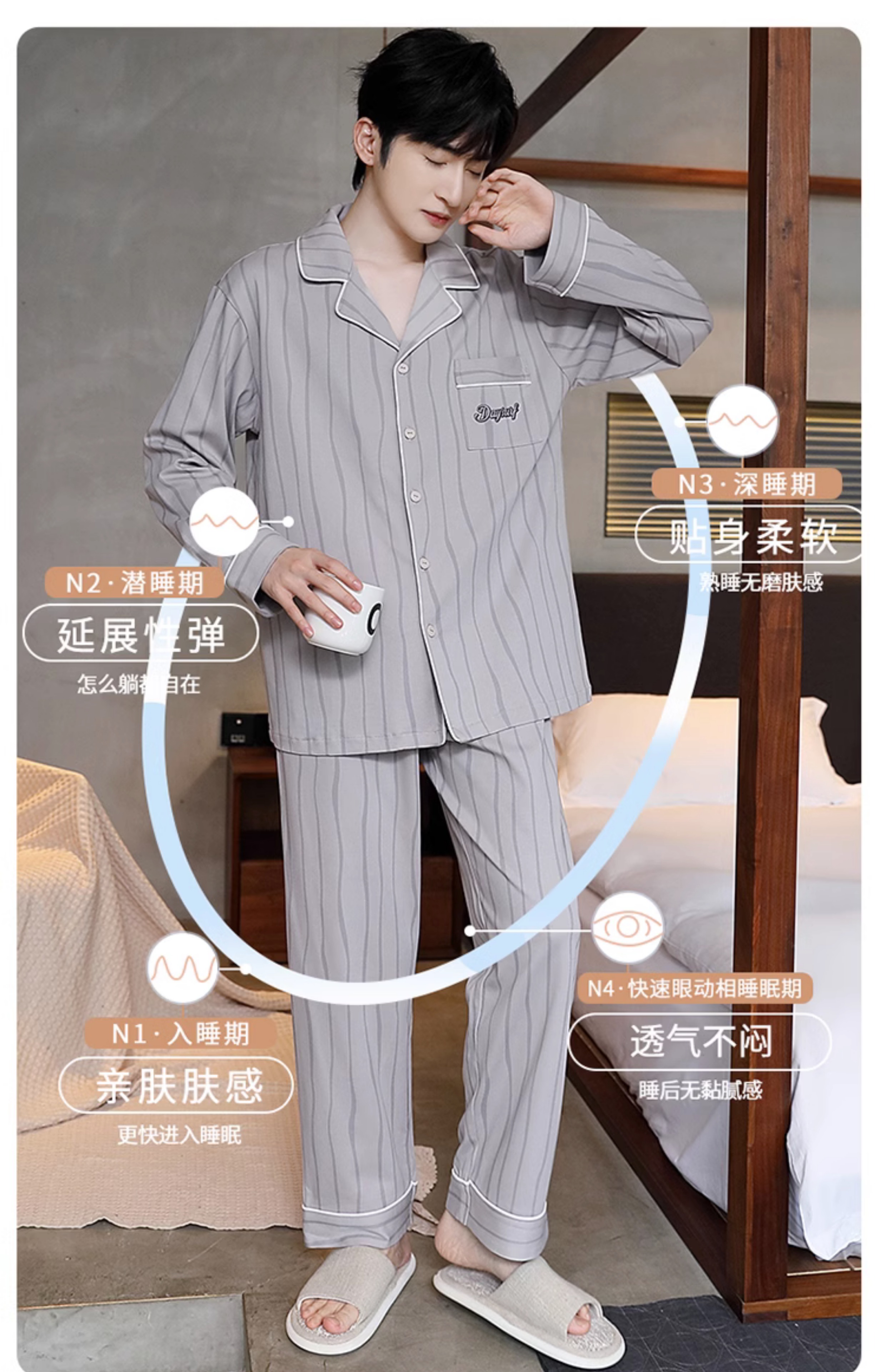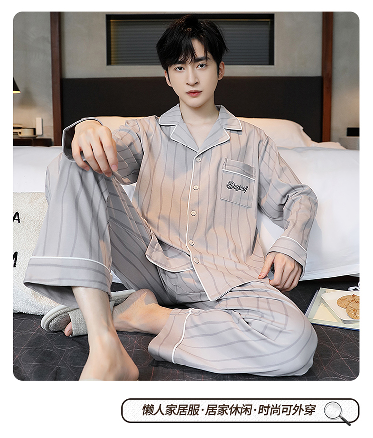 春秋季睡衣男士纯棉宽松大码休闲长袖长裤夏冬款可外穿套装家居服