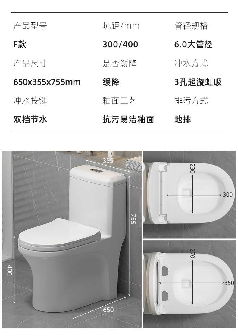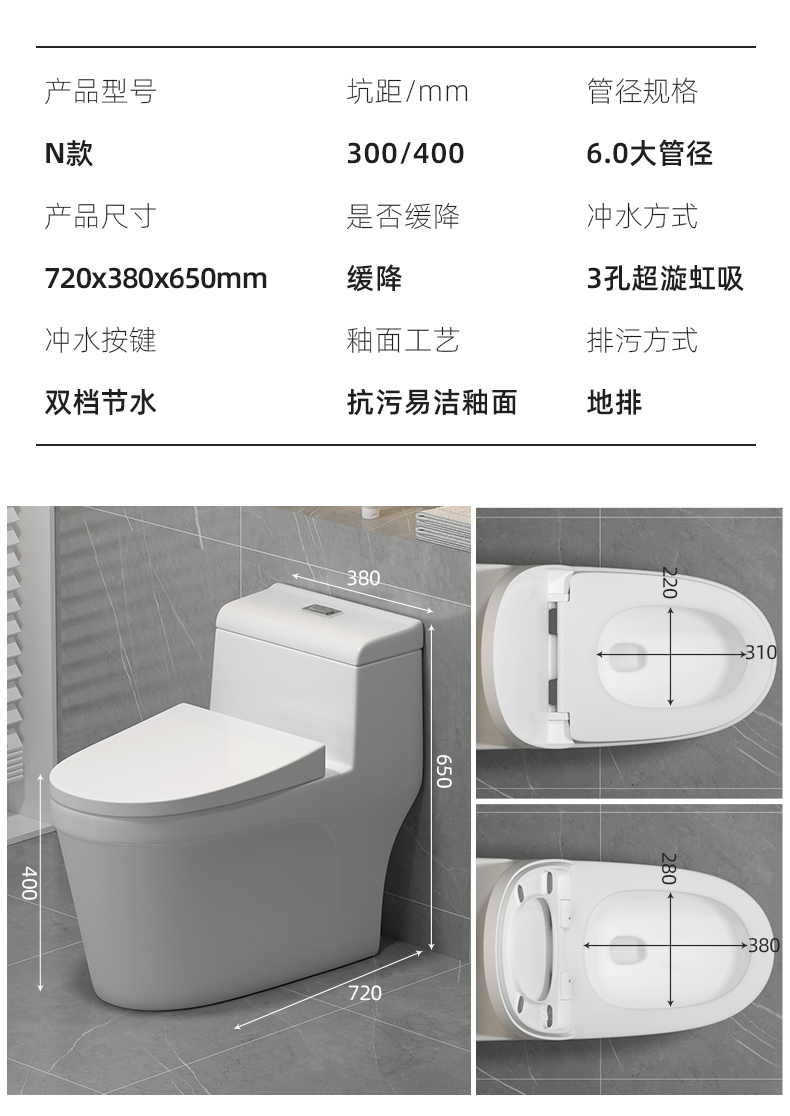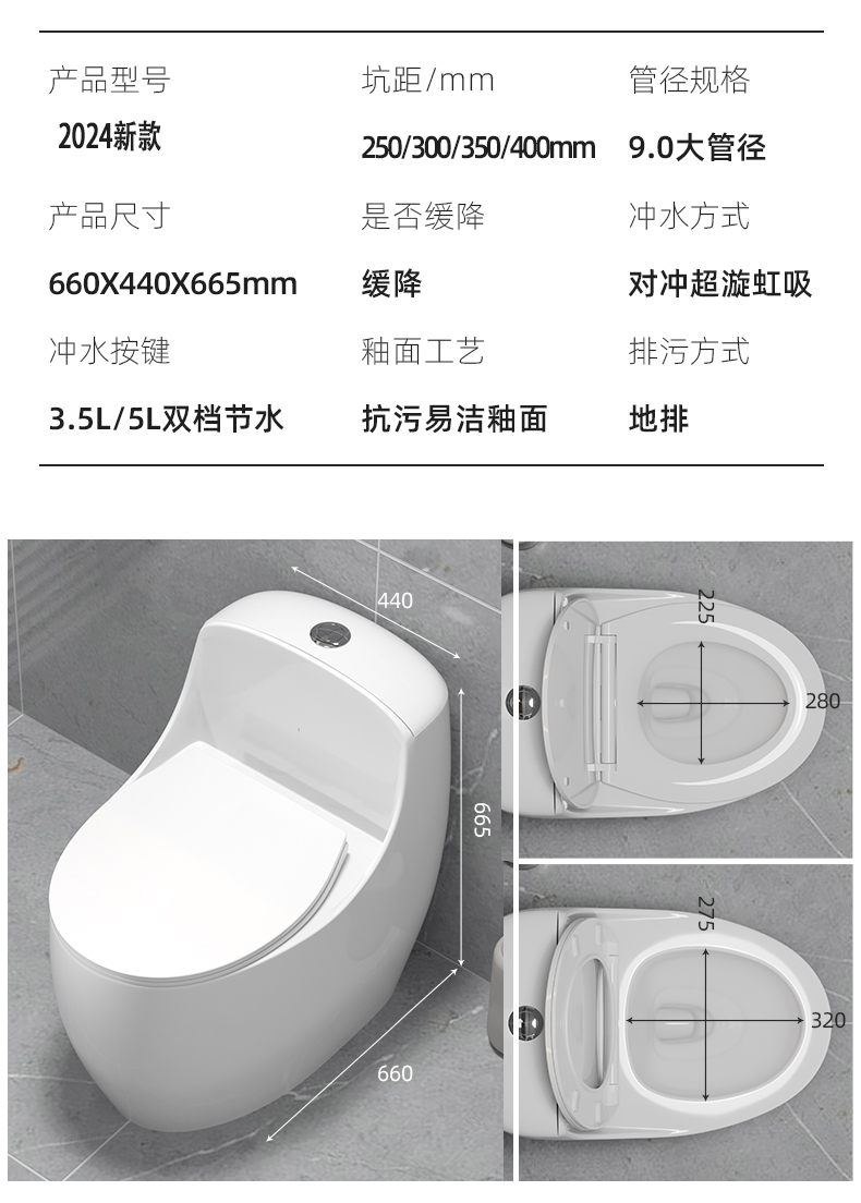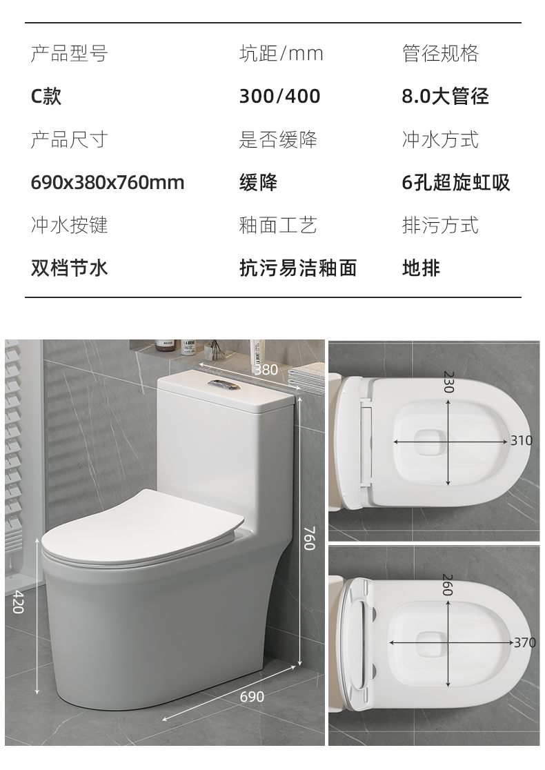 JOMOW马桶坐便器家用卫生间陶瓷防臭大冲力节水超旋虹吸式坐厕