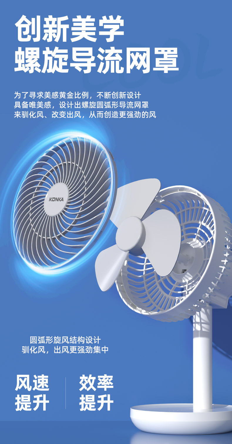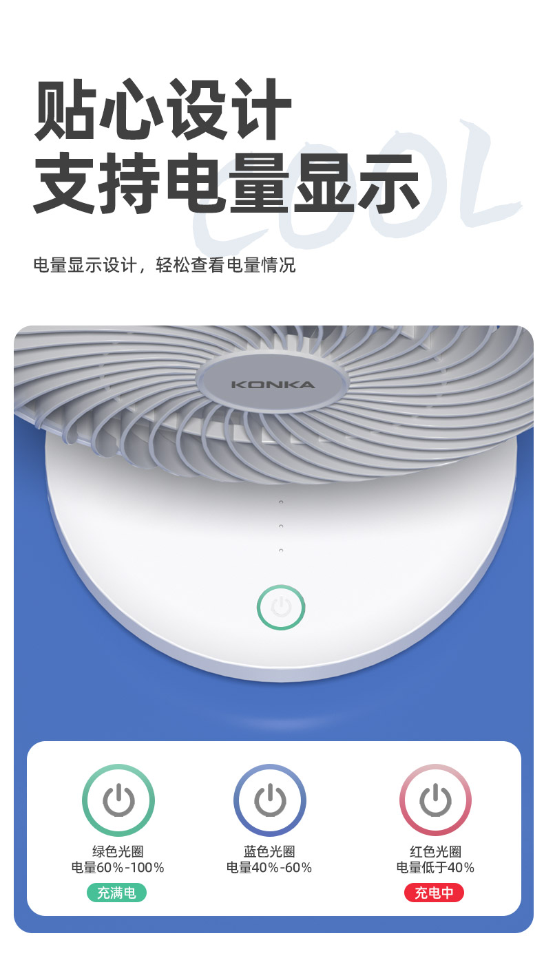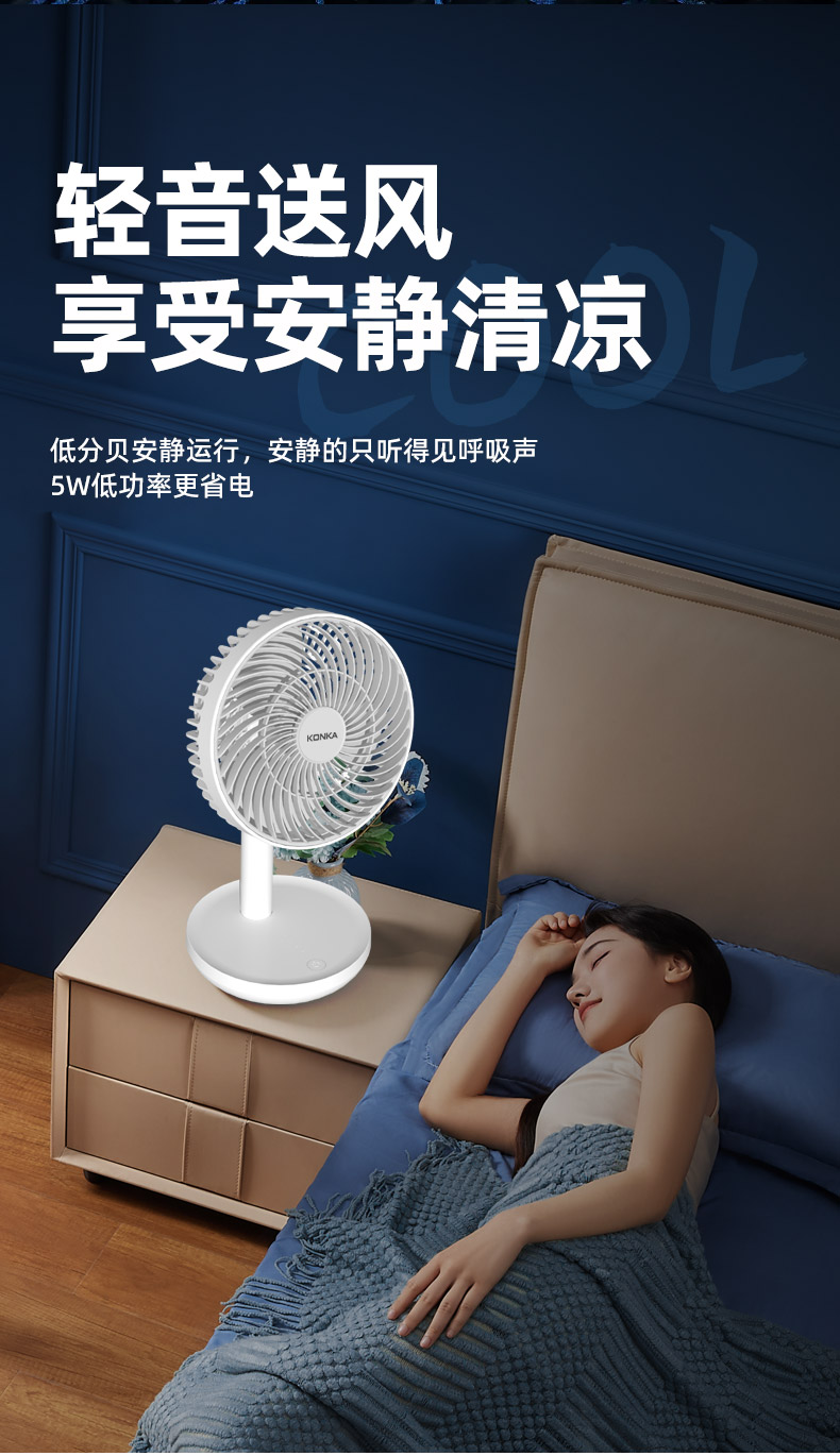 康佳USB小风扇桌面电风扇便携式可充电学生宿舍迷你床上办公室小型风扇大风力桌上户外摇头制冷台式强力电扇
