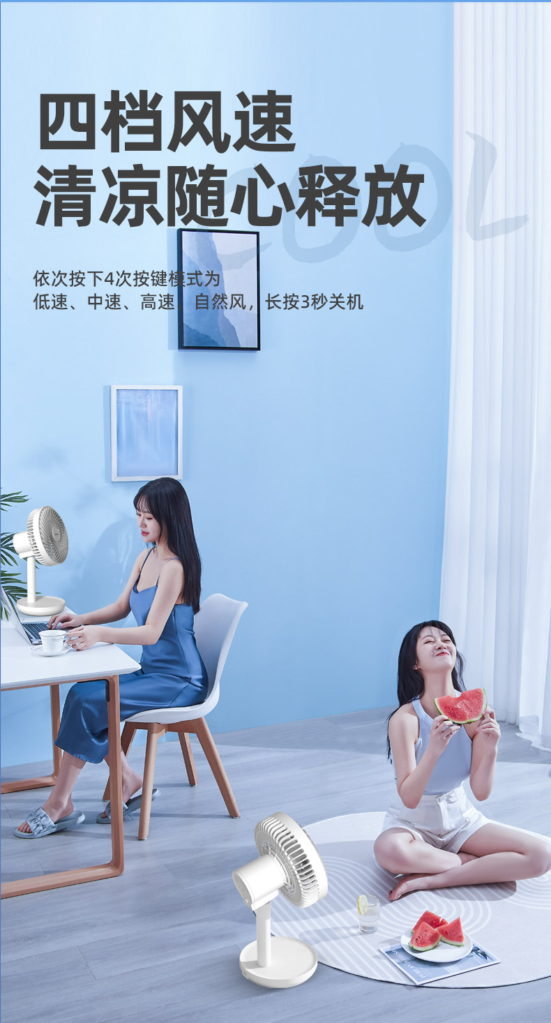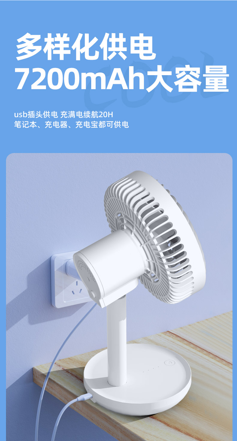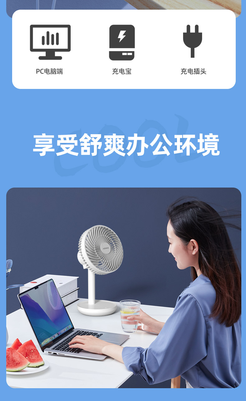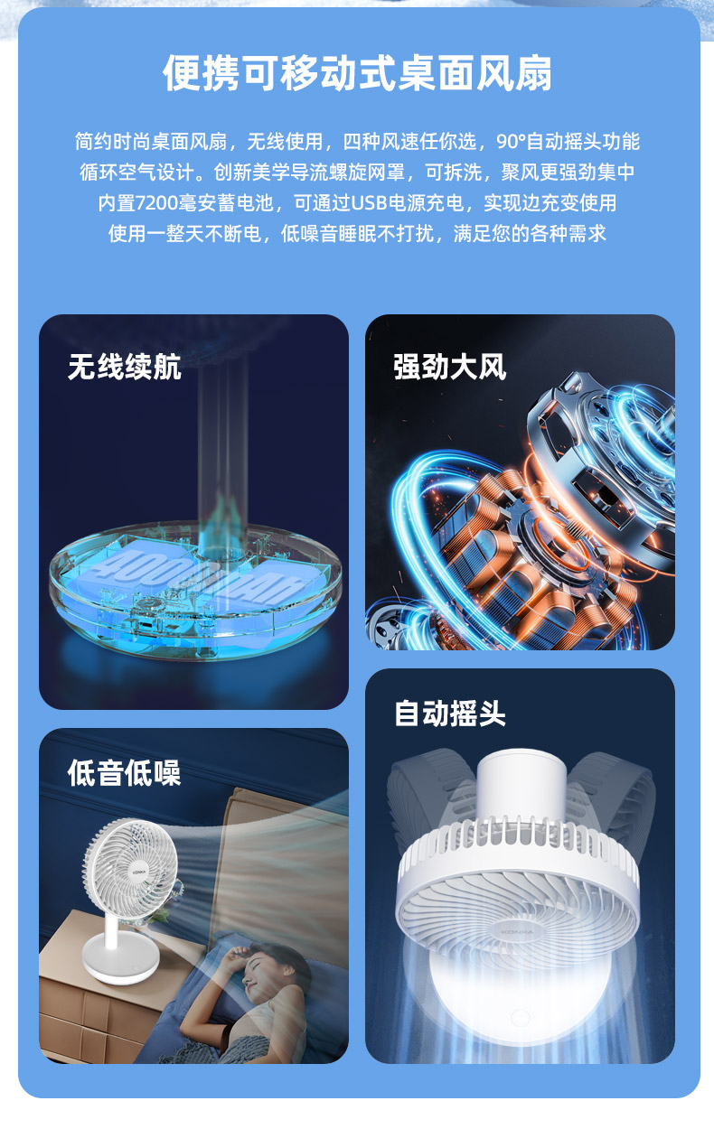 康佳USB小风扇桌面电风扇便携式可充电学生宿舍迷你床上办公室小型风扇大风力桌上户外摇头制冷台式强力电扇