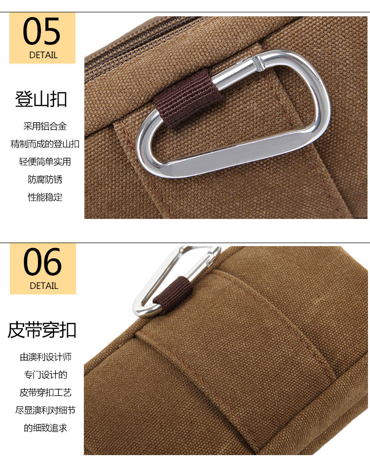 澳利手机包男穿皮带腰包帆布5.5寸6寸手机包横款多功能手拿零钱包
