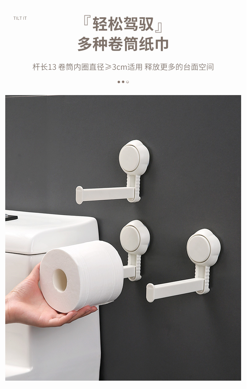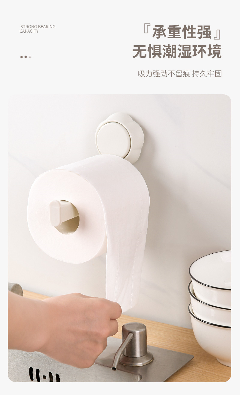 居家家吸盘纸巾架卫生间免打孔卷纸挂杆挂抹布架浴室橱柜收纳挂架