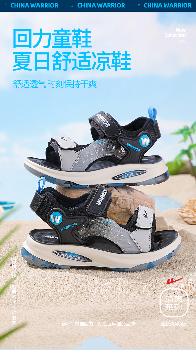 回力男童凉鞋2025年夏季新款男孩校园软底露趾鞋子儿童涉水沙滩鞋