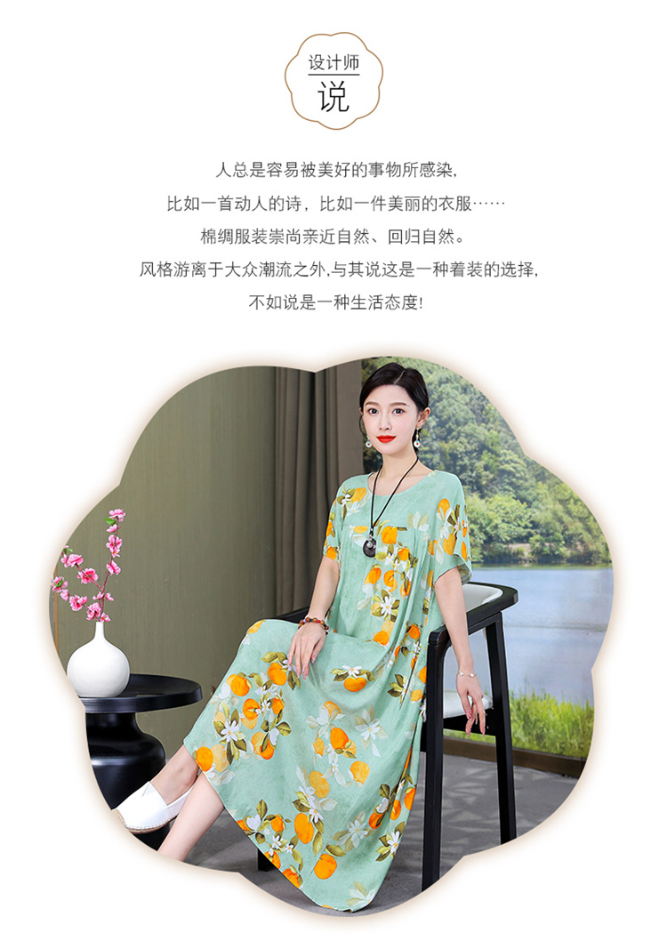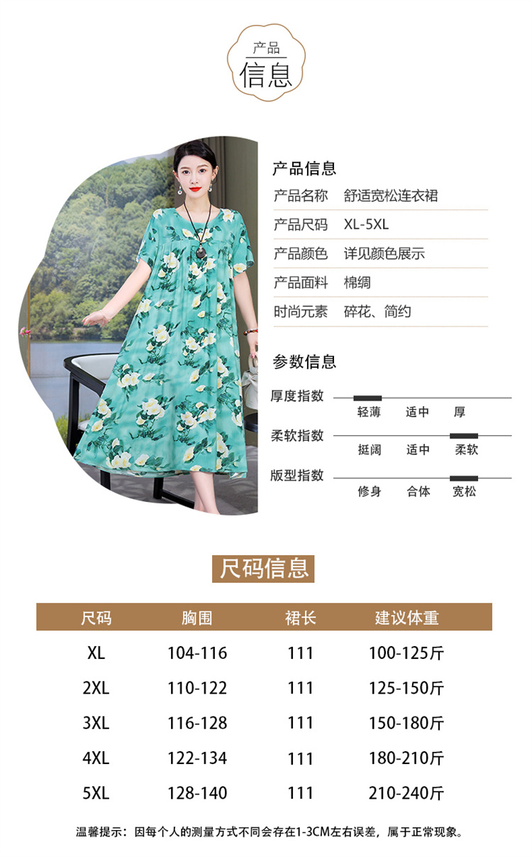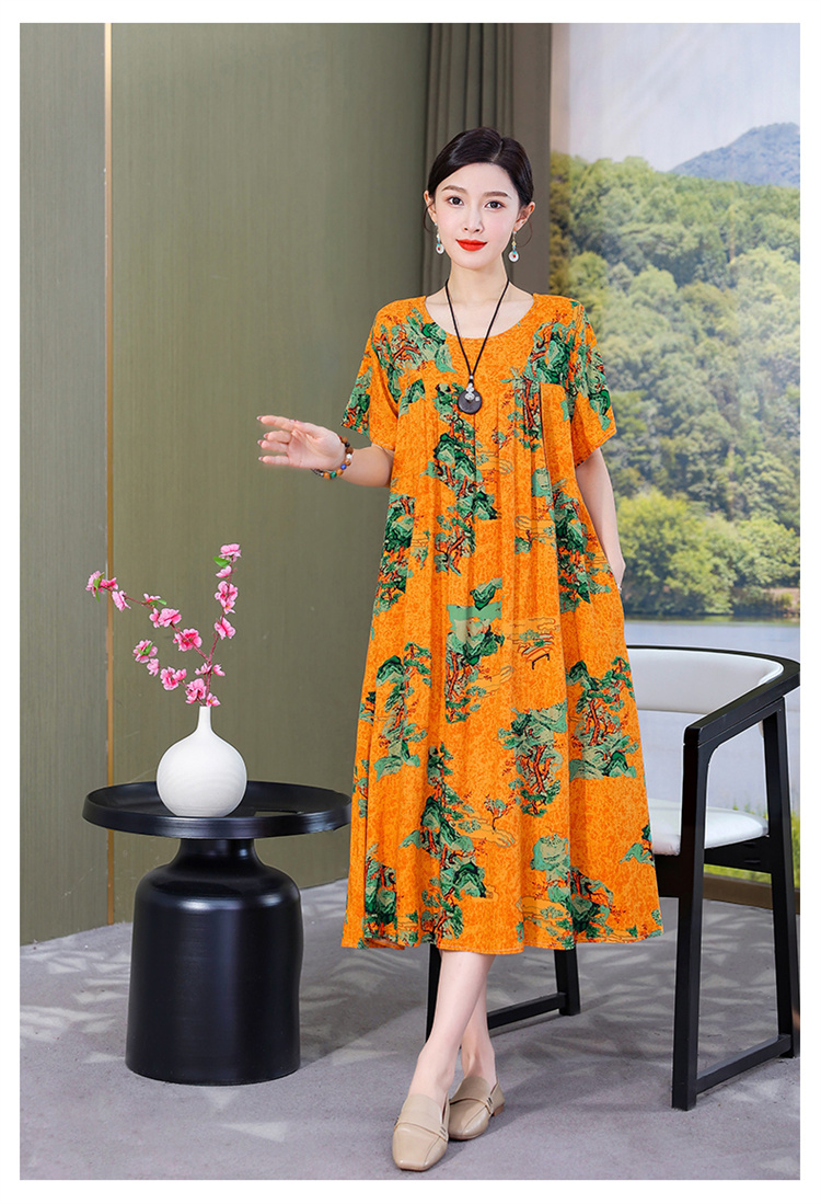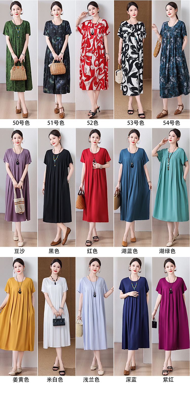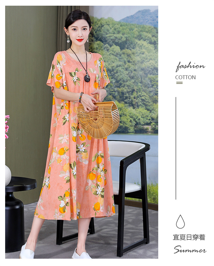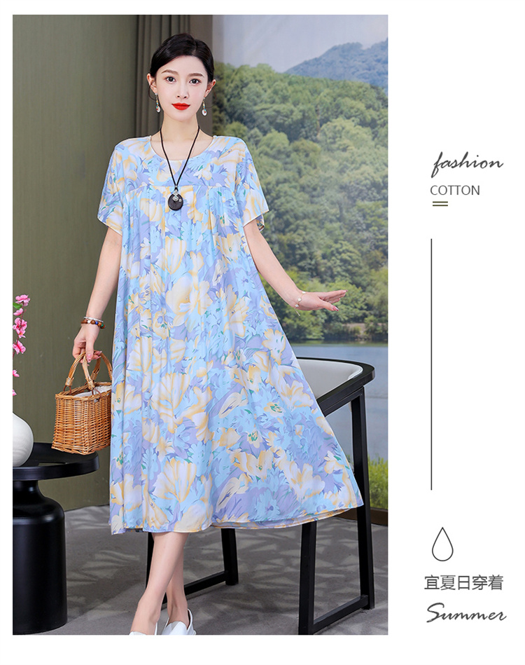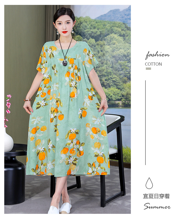 妈妈棉绸连衣裙短袖中老年夏装大码女装加肥加大宽松人造棉裙子女
