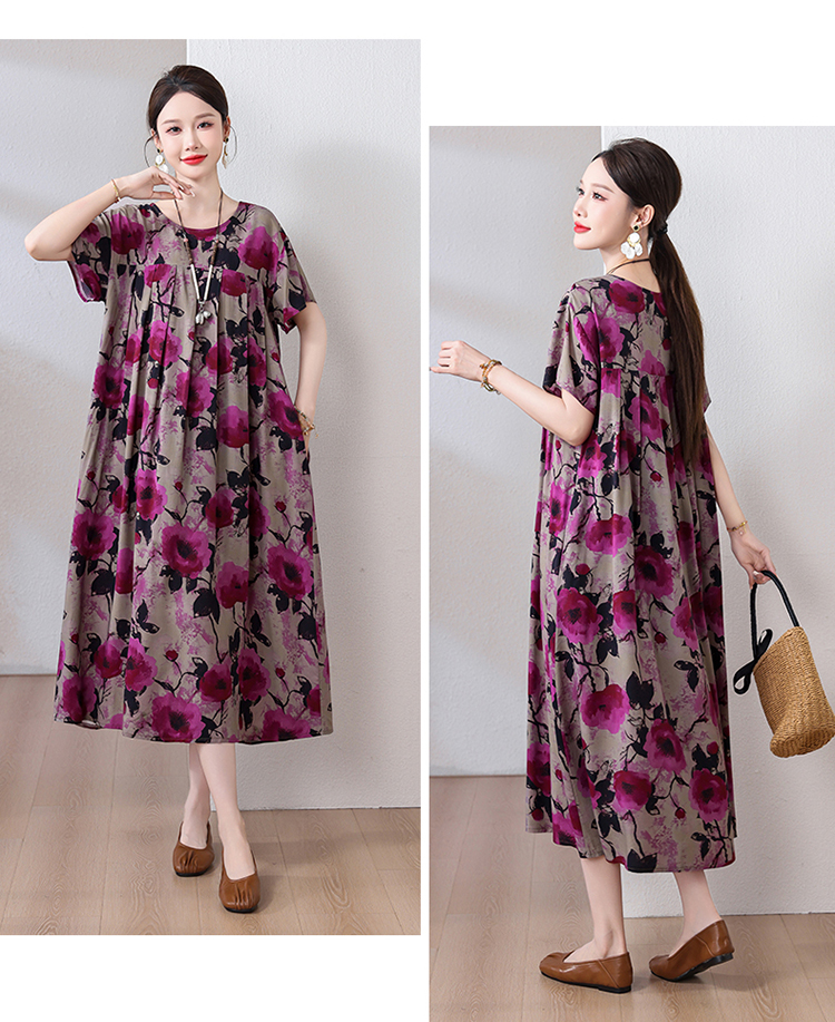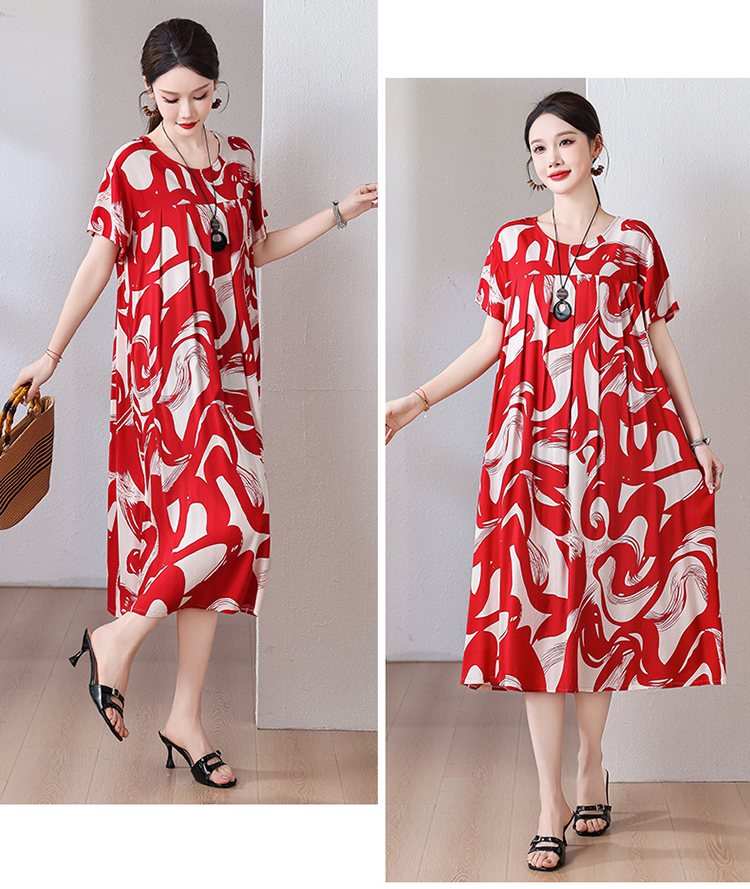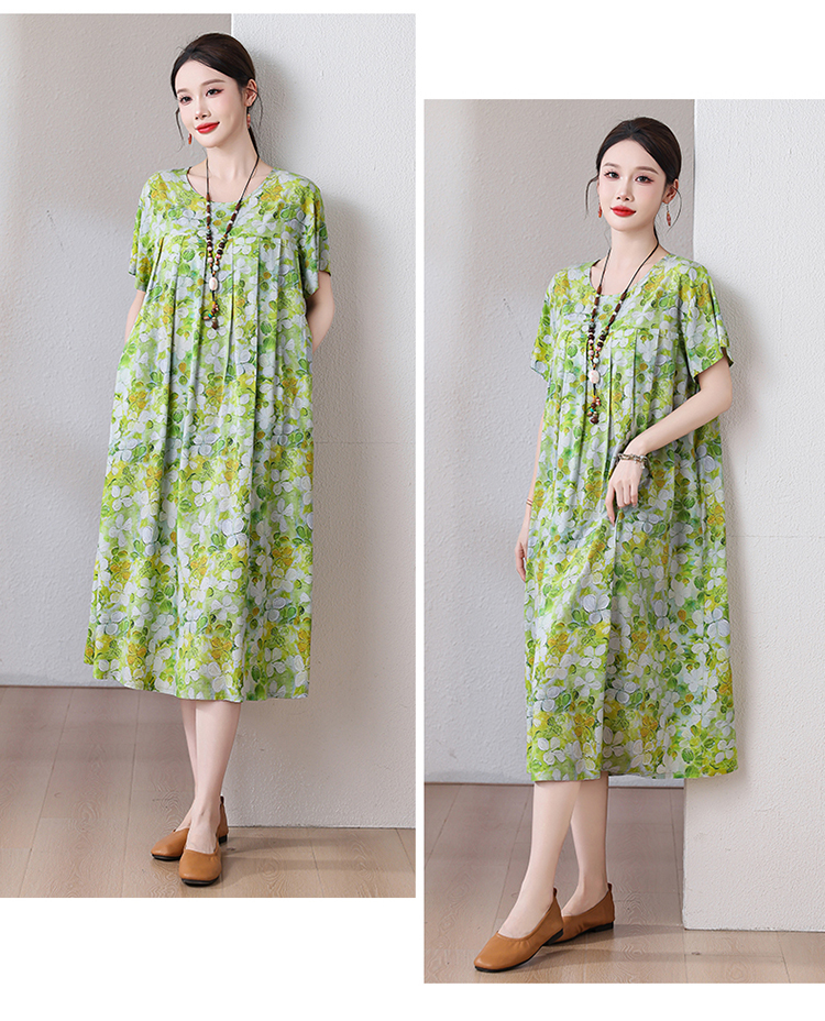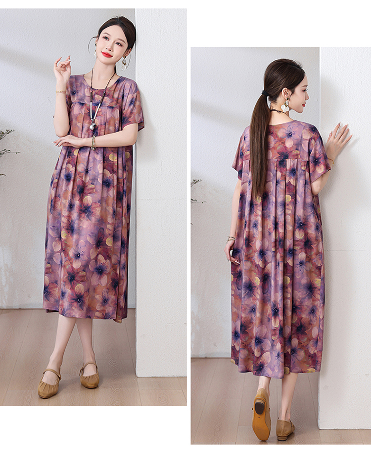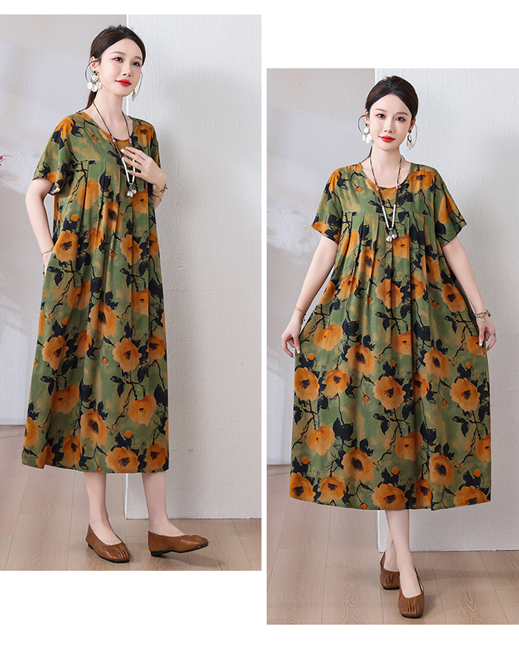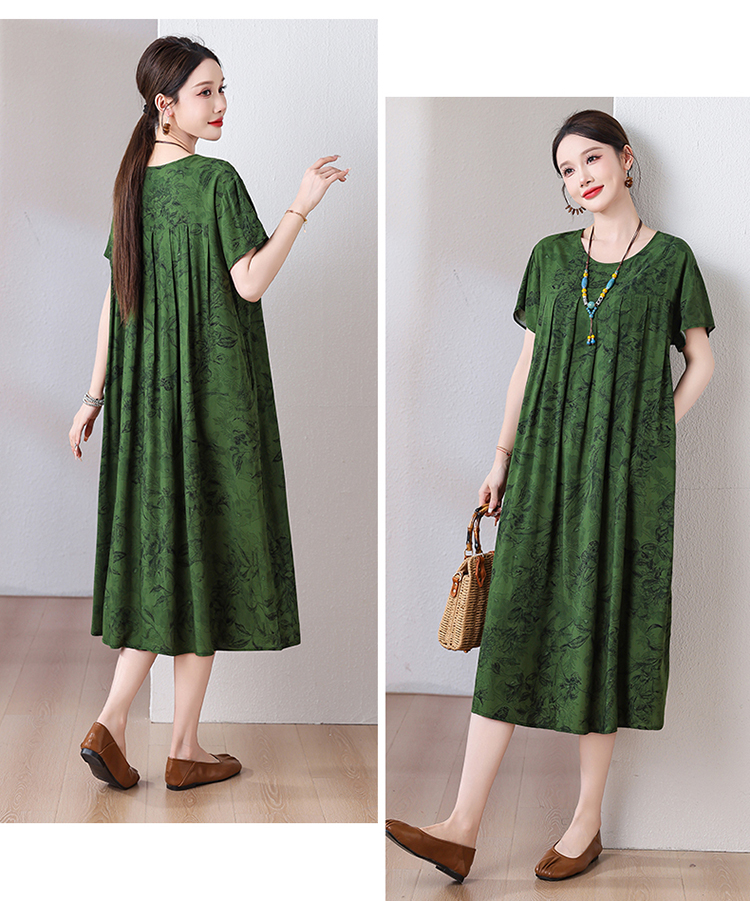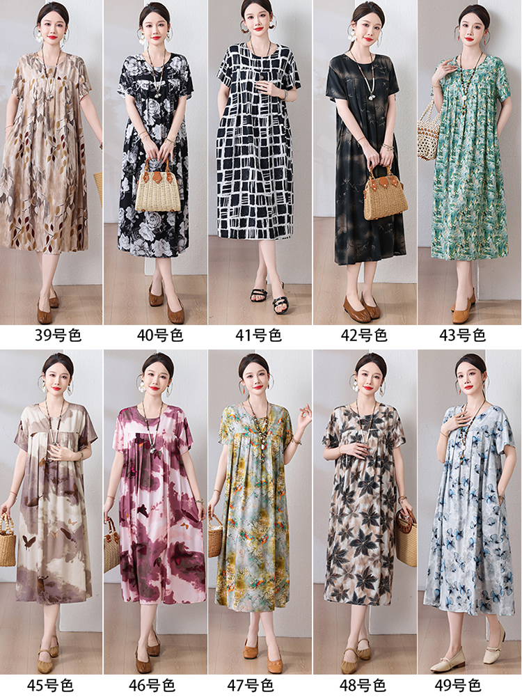 妈妈棉绸连衣裙短袖中老年夏装大码女装加肥加大宽松人造棉裙子女