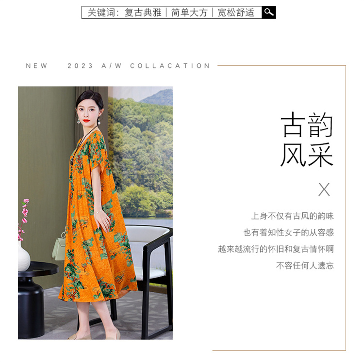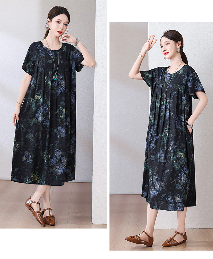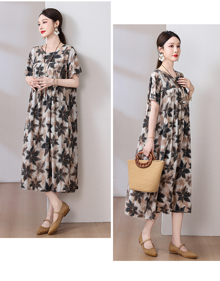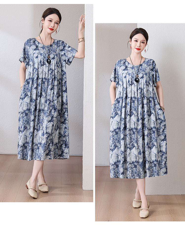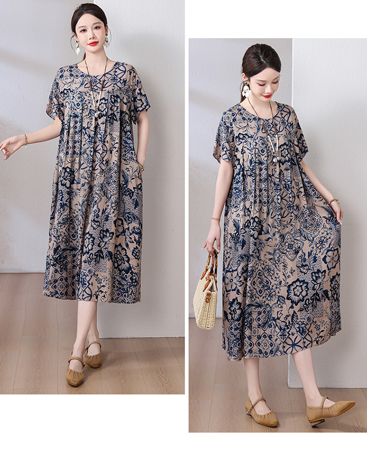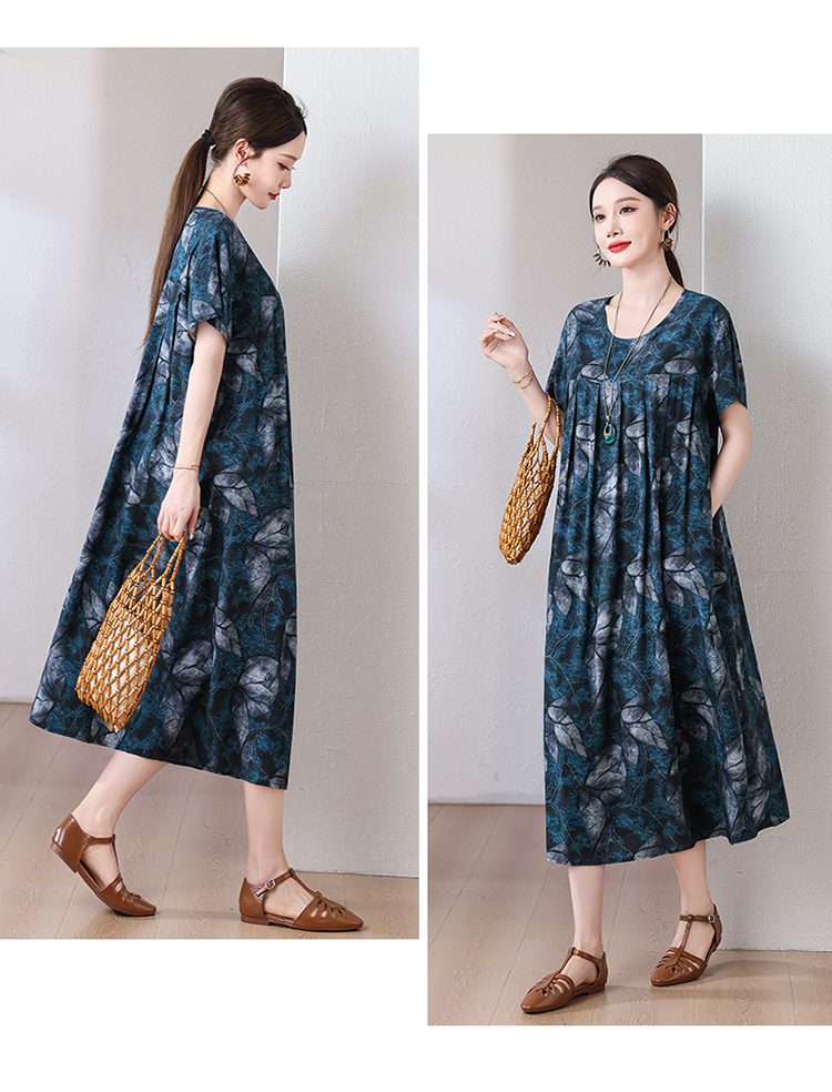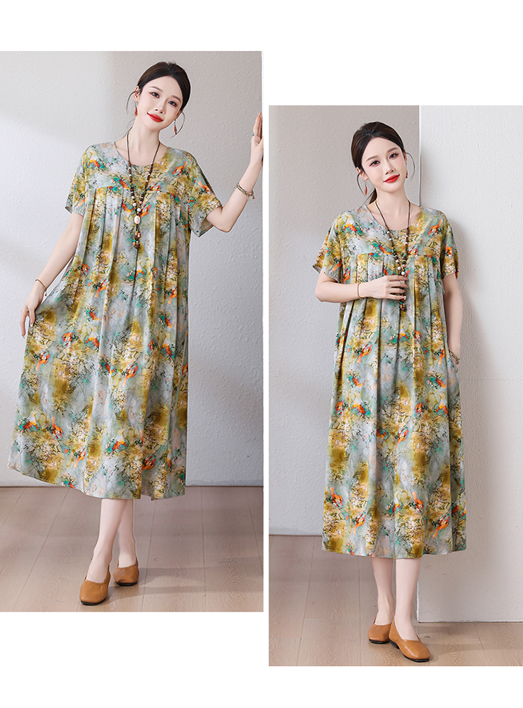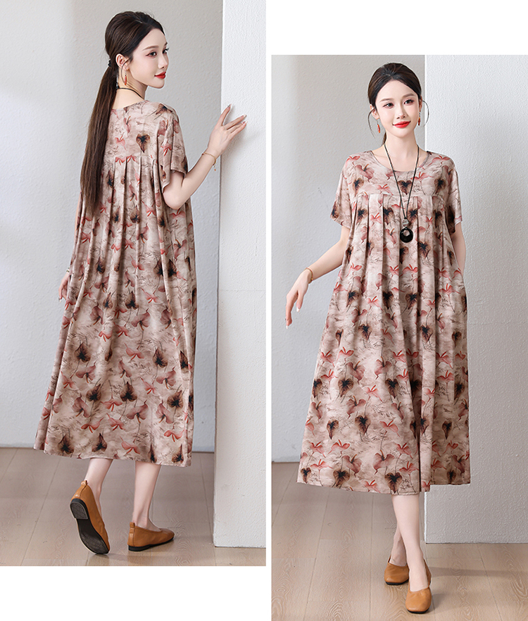 妈妈棉绸连衣裙短袖中老年夏装大码女装加肥加大宽松人造棉裙子女