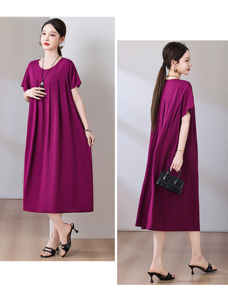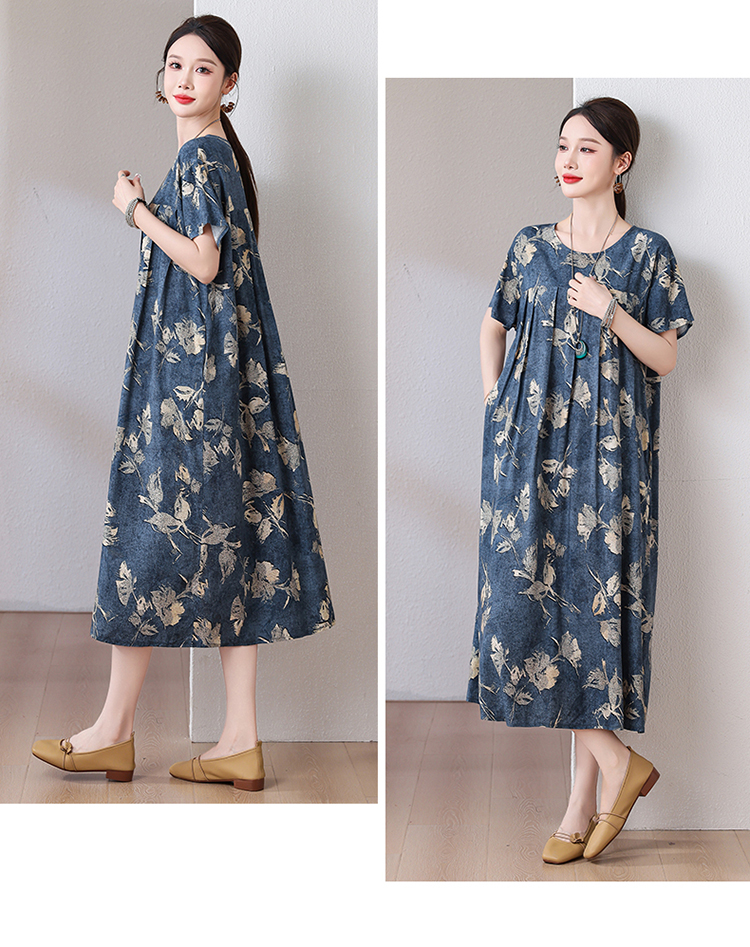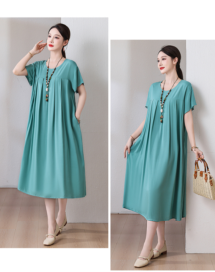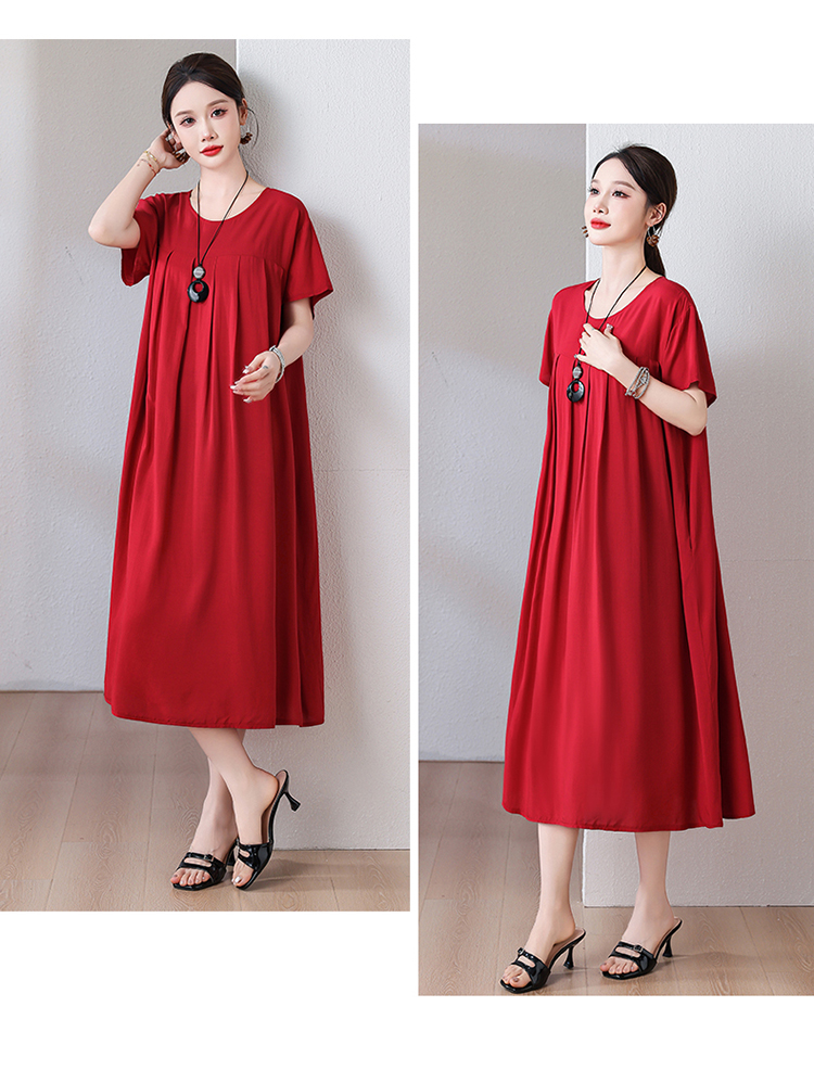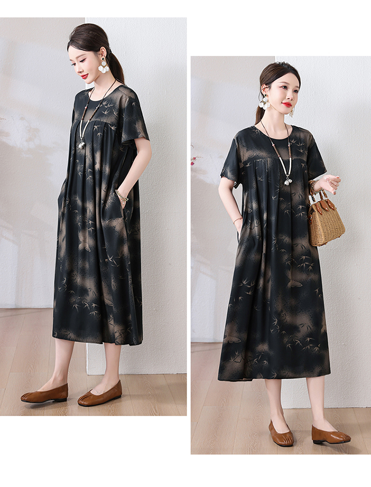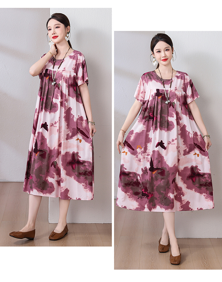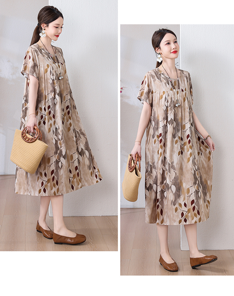 妈妈棉绸连衣裙短袖中老年夏装大码女装加肥加大宽松人造棉裙子女