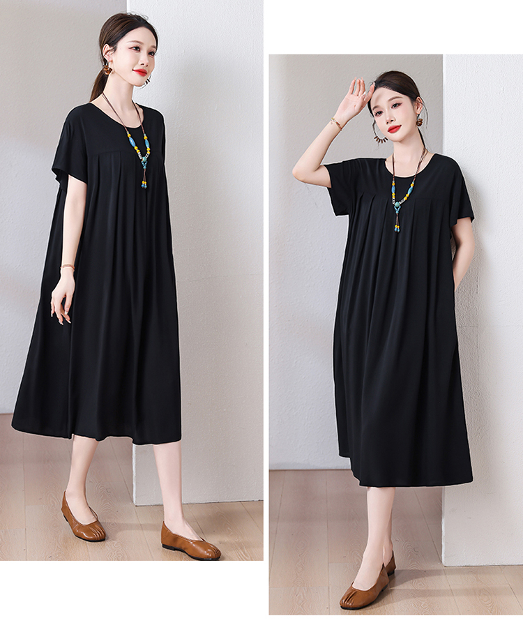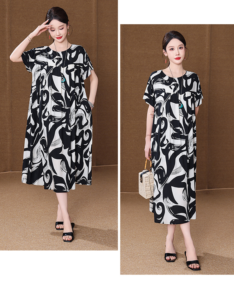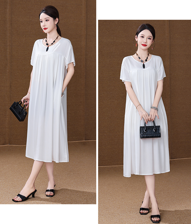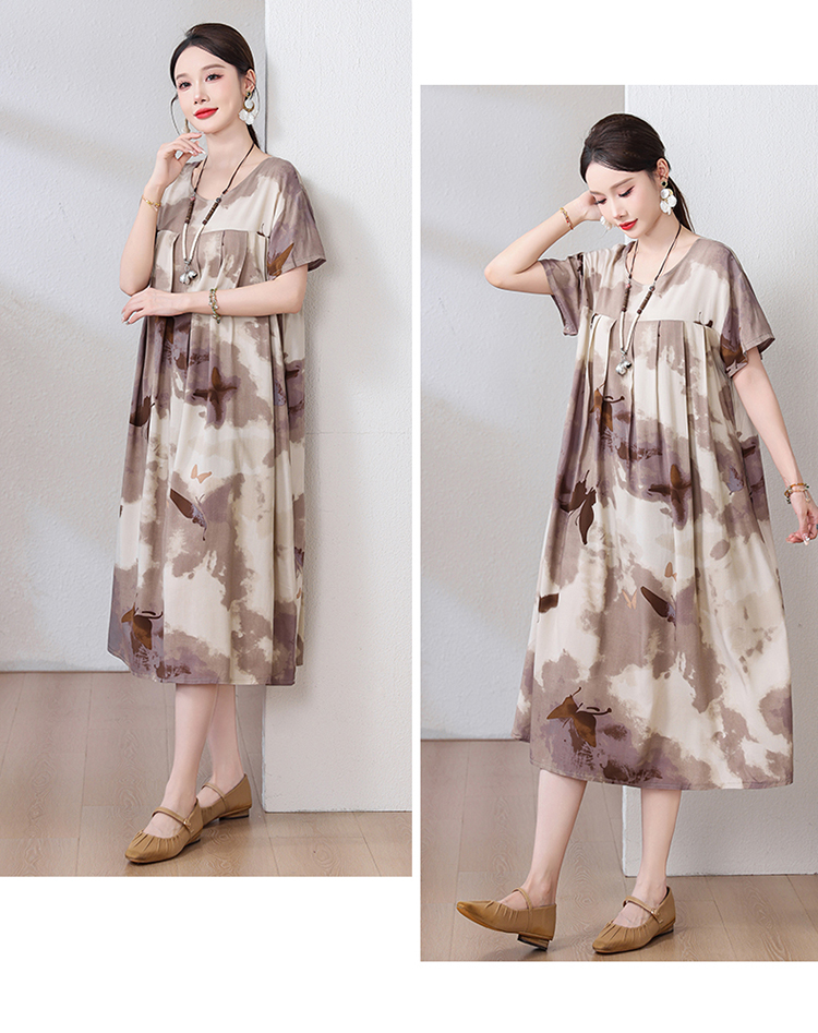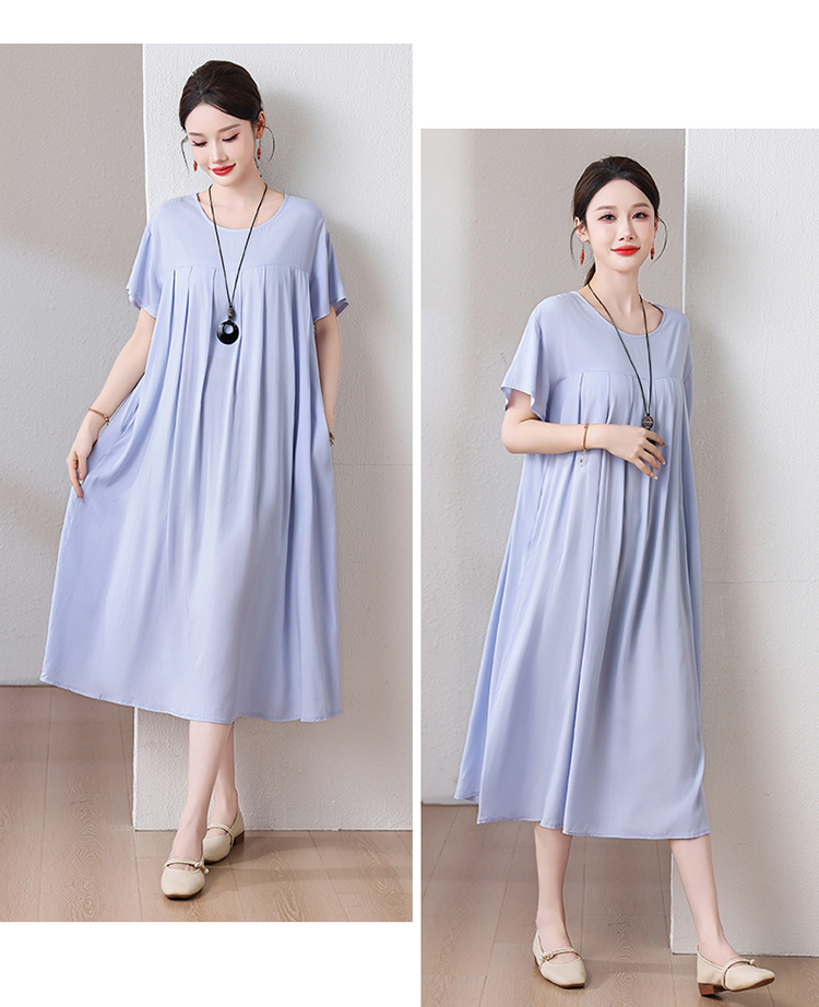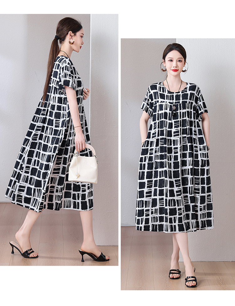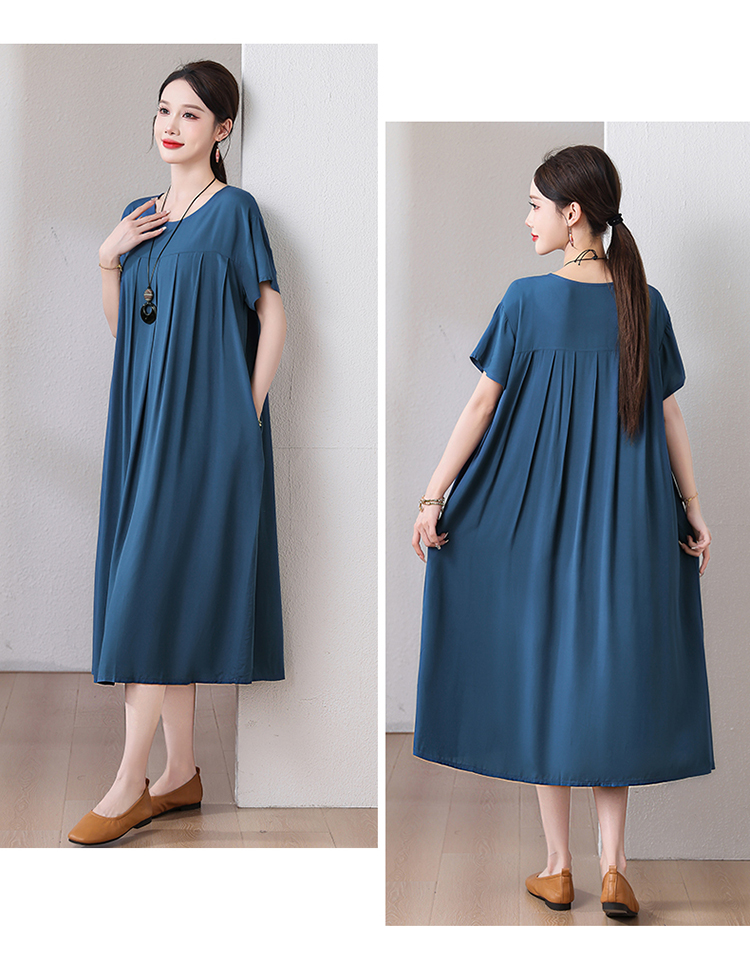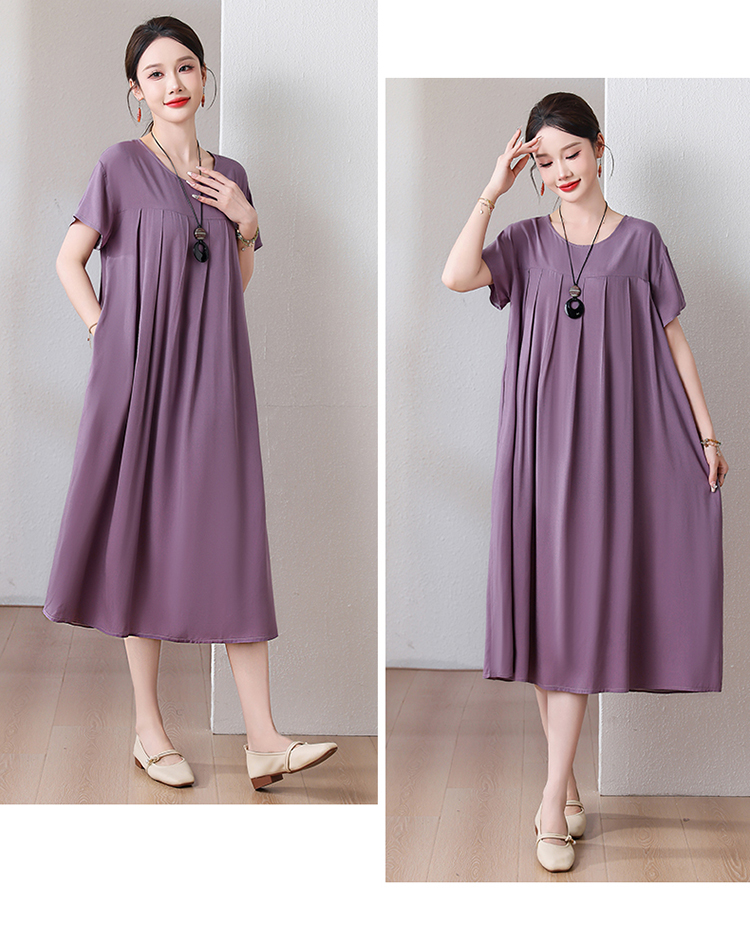 妈妈棉绸连衣裙短袖中老年夏装大码女装加肥加大宽松人造棉裙子女