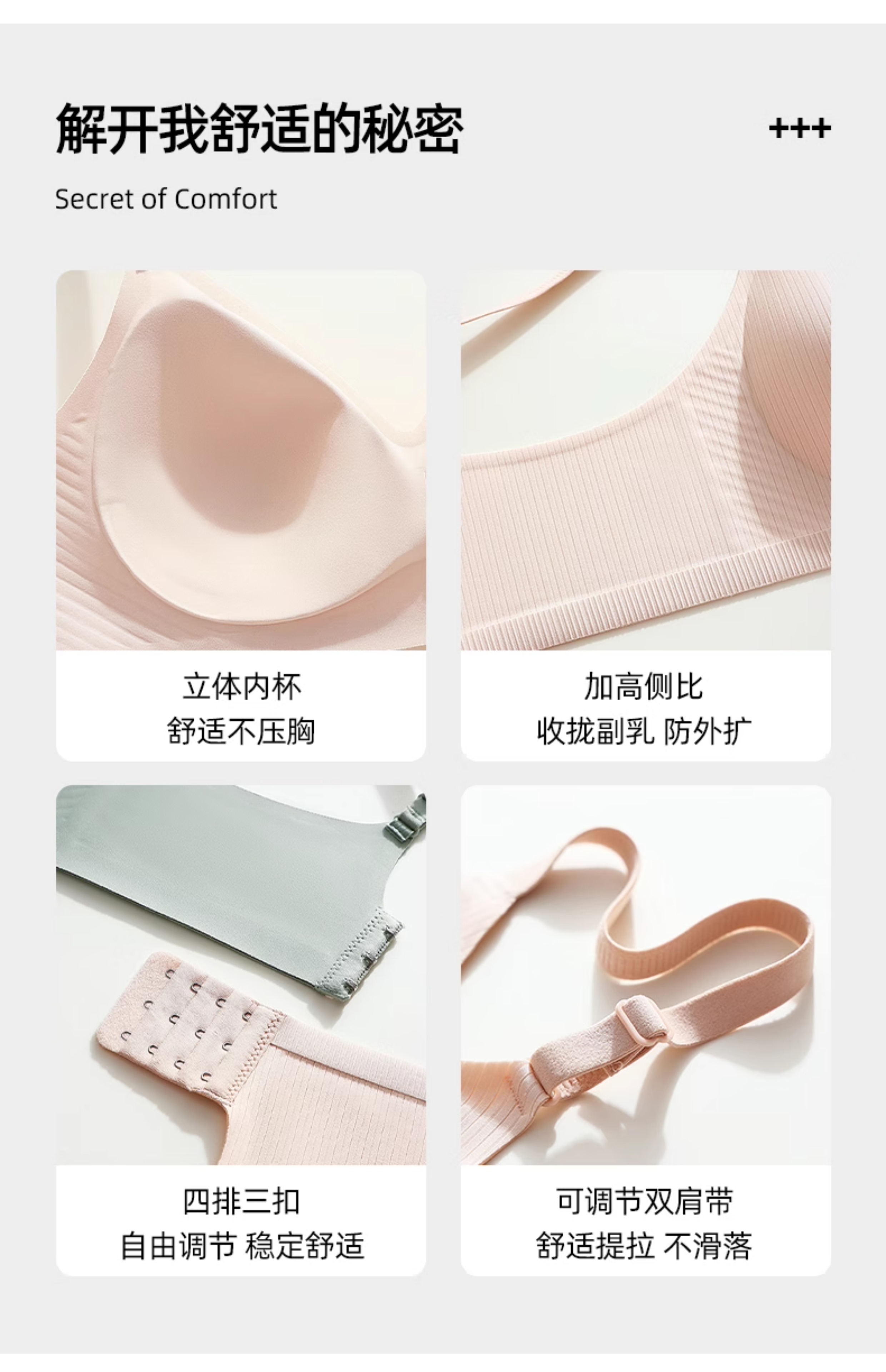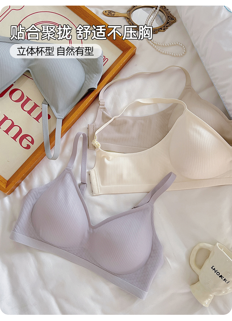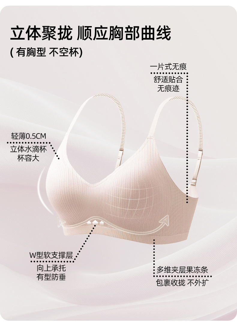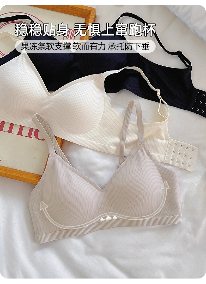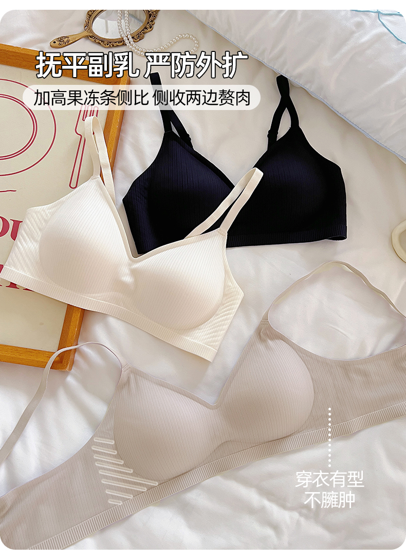 六只兔子无痕内衣女小胸聚拢舒适轻薄果冻条软支撑文胸无钢圈胸罩