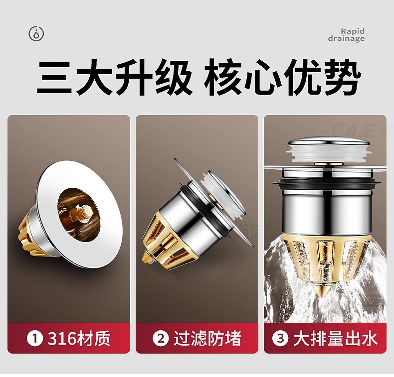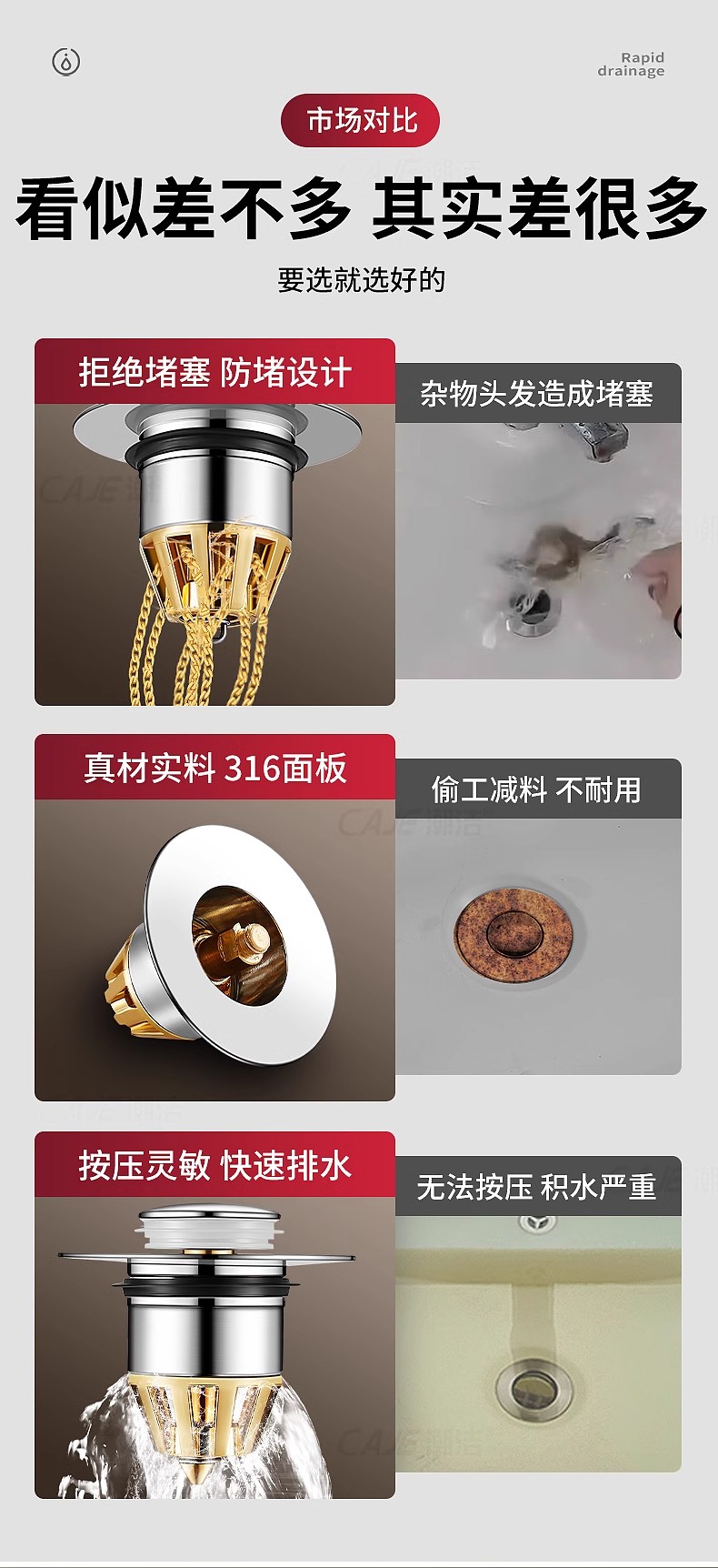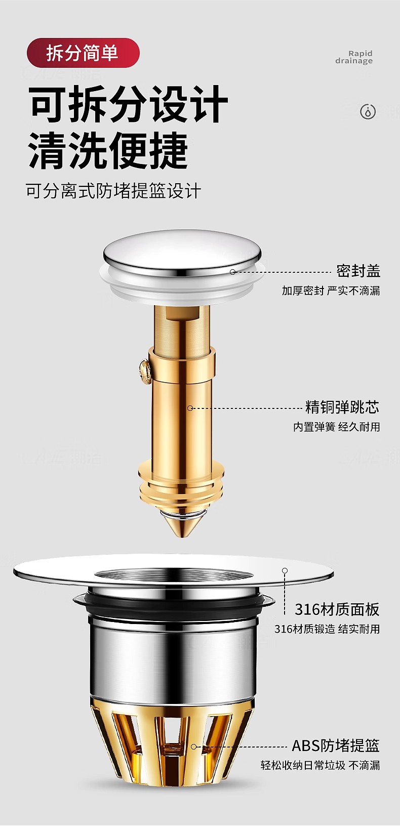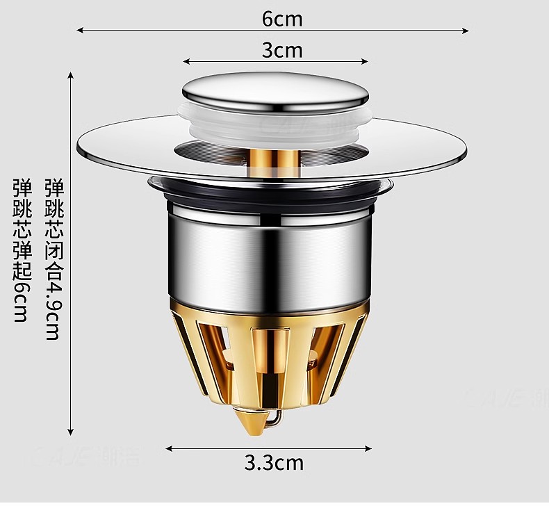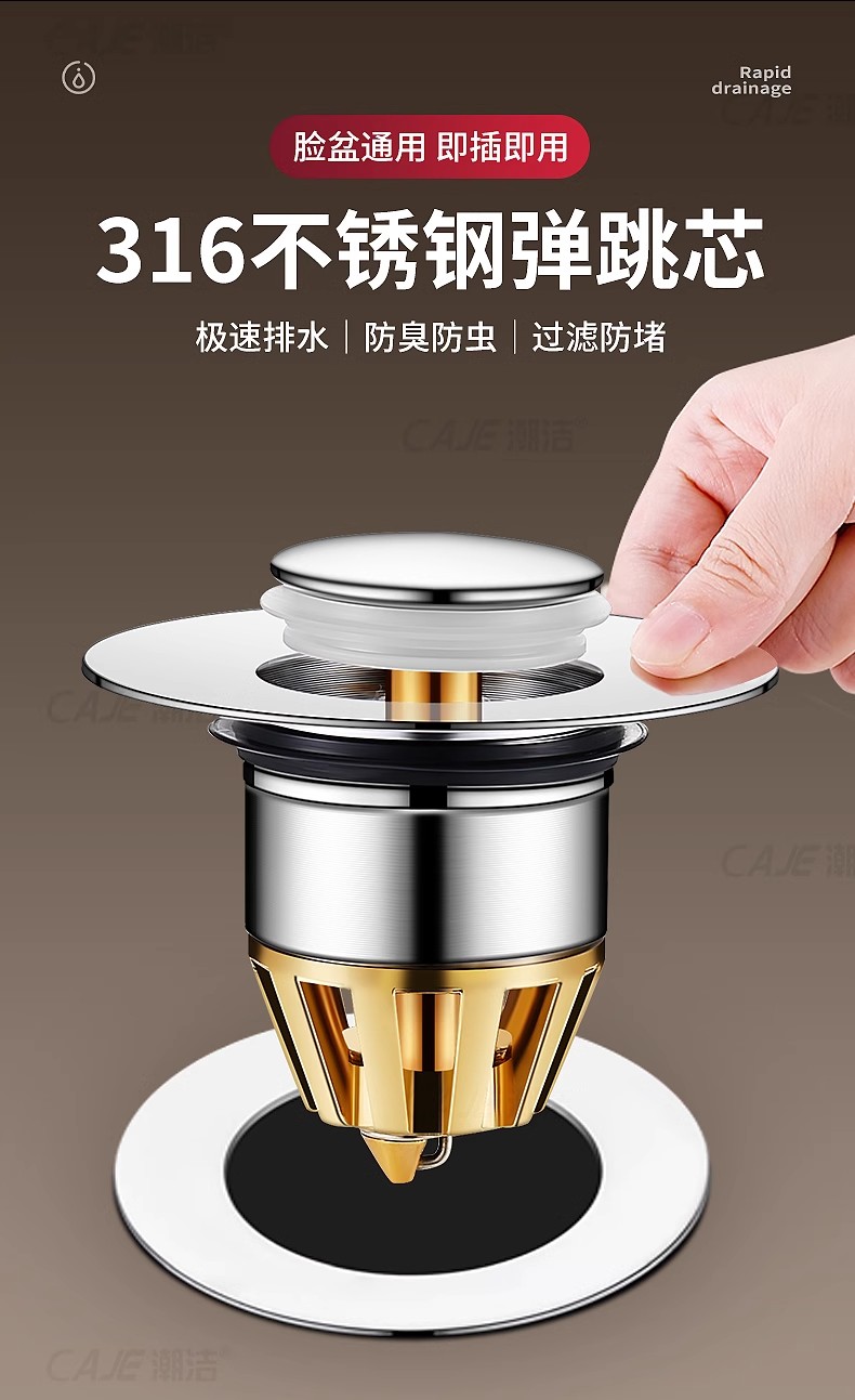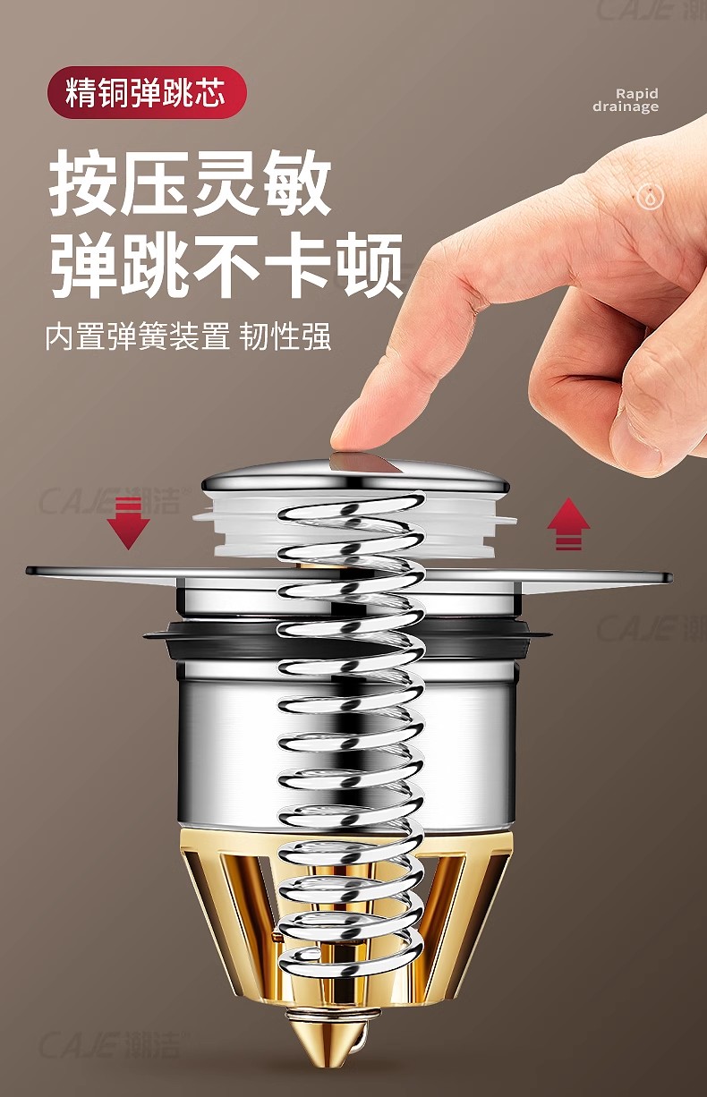 不锈钢洗手盆漏水塞按压式防臭弹跳芯水池下水器洗脸面盆通用配件