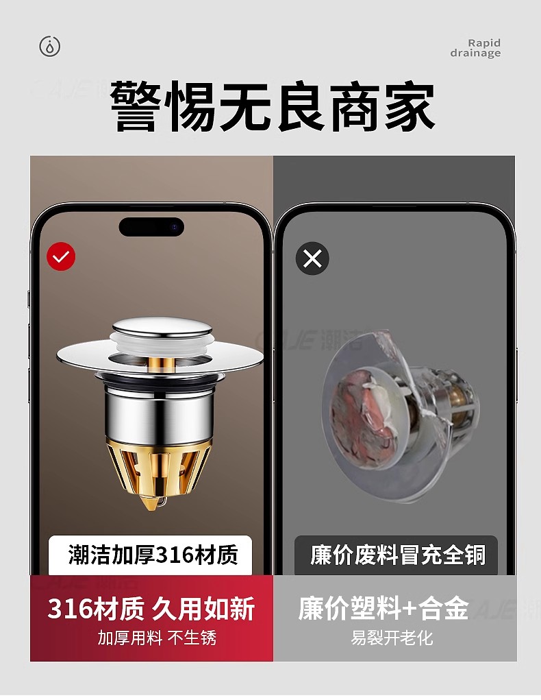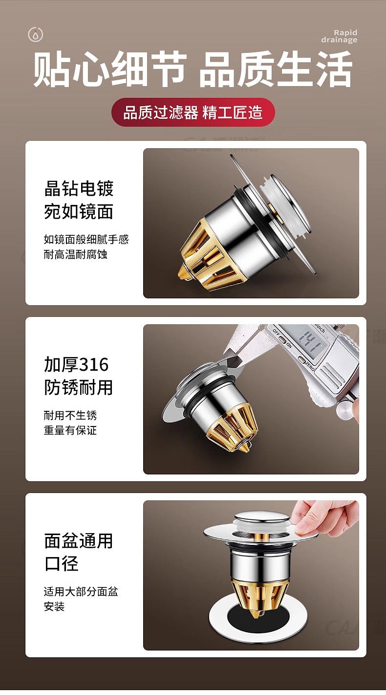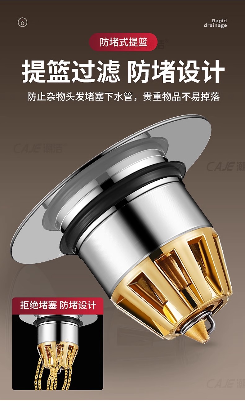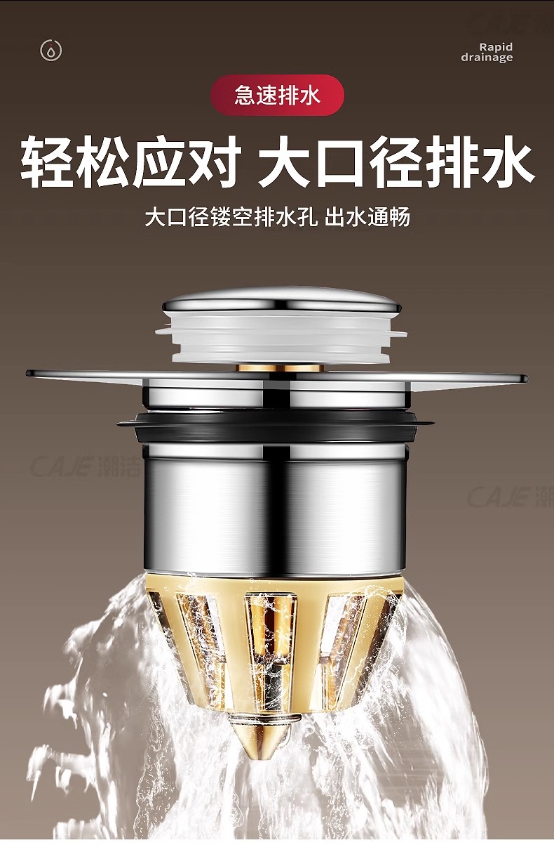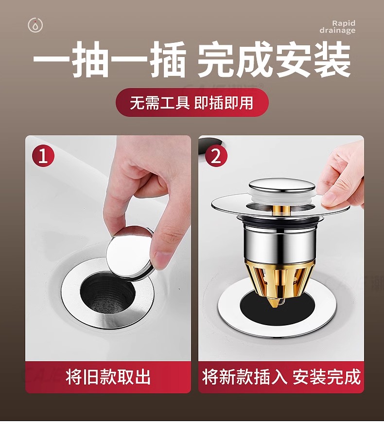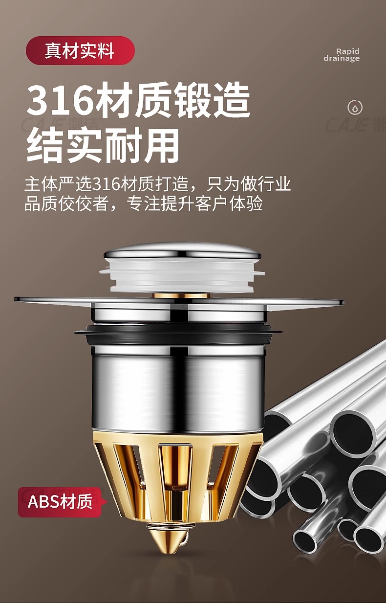 不锈钢洗手盆漏水塞按压式防臭弹跳芯水池下水器洗脸面盆通用配件