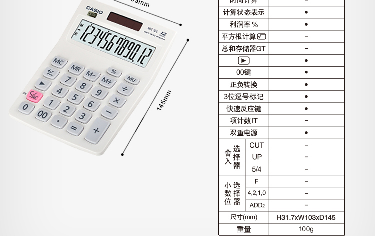 卡西欧GZ/DZ/MZ-12S商务办公用计算机台式大中小号计算器12位数