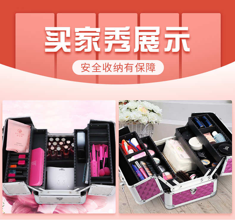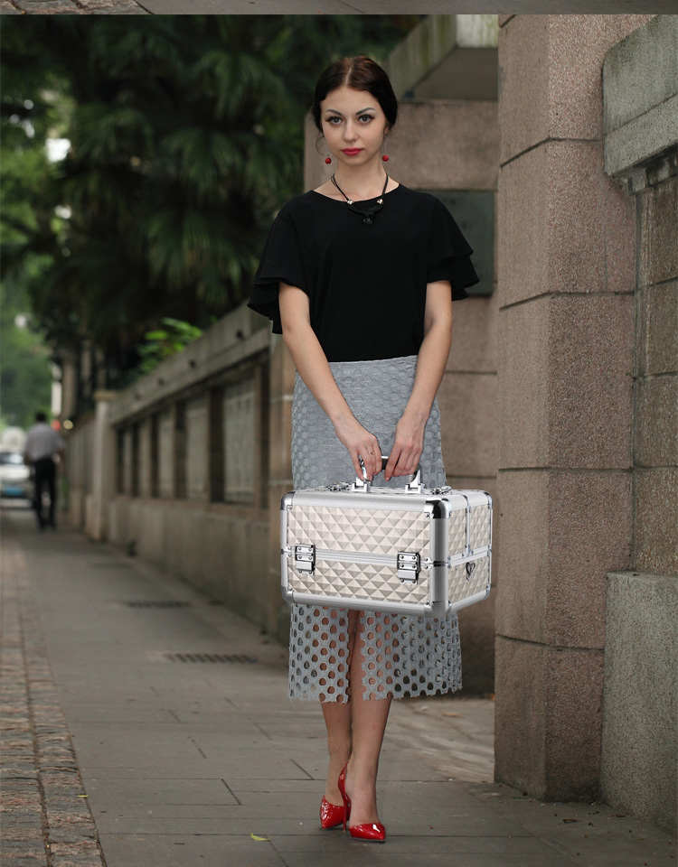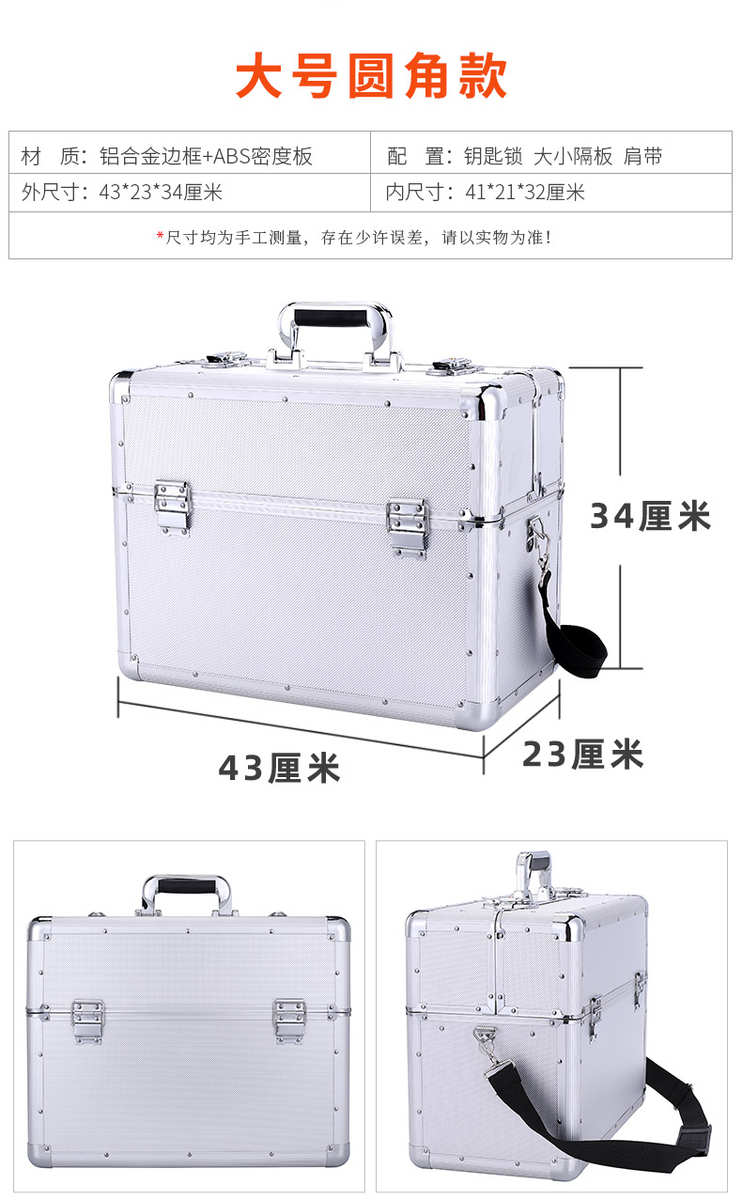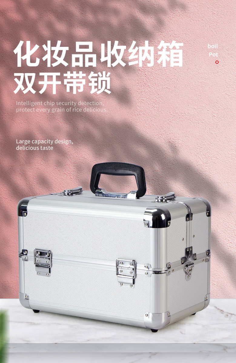 铝合金手提化妆箱双开带锁专业跟妆美甲彩妆纹绣工具箱美容工具箱