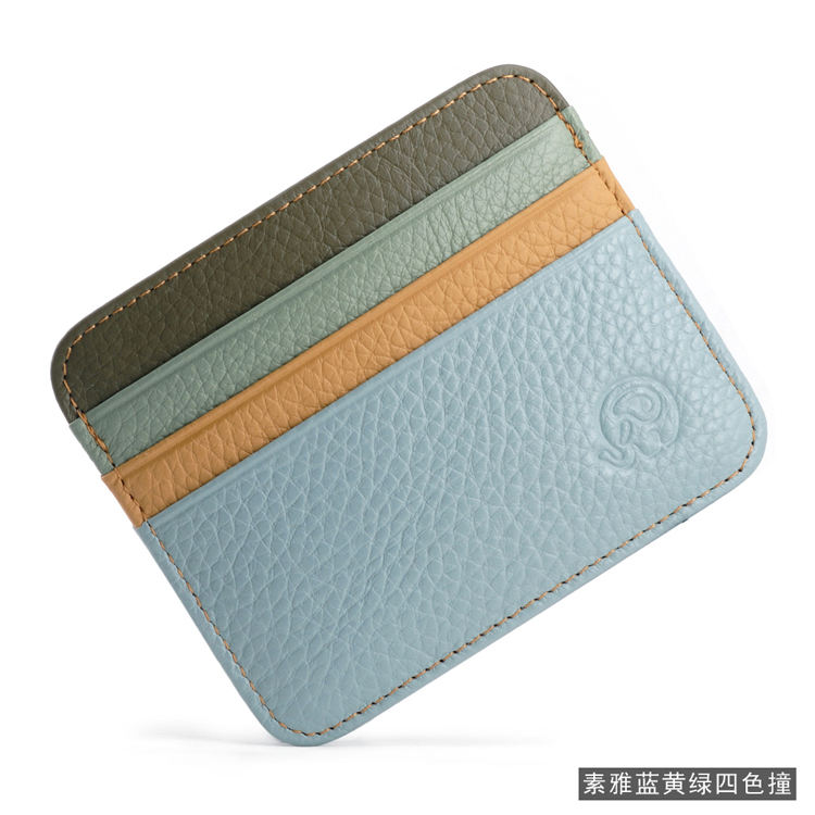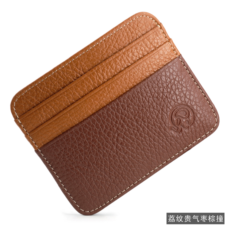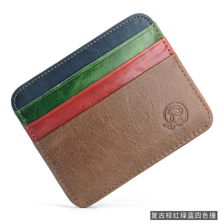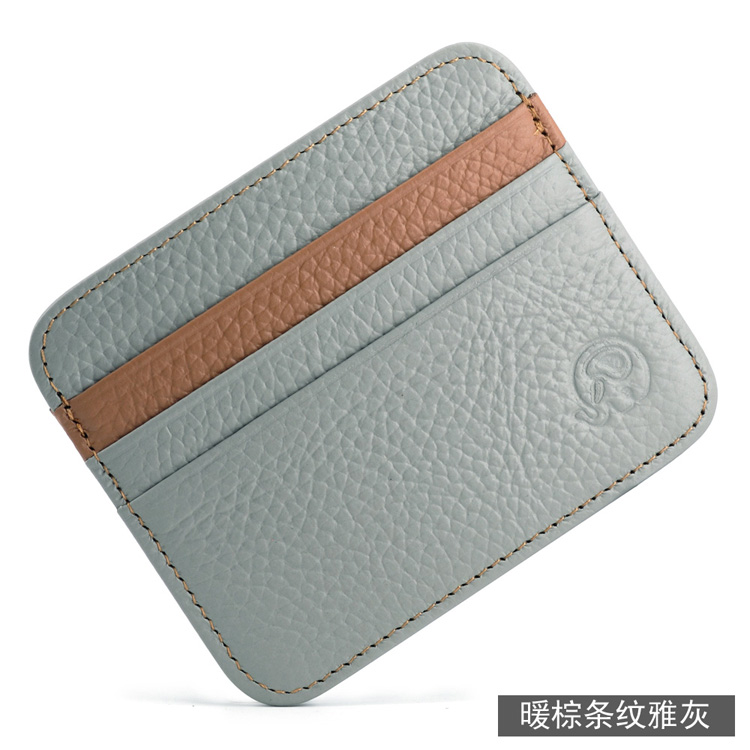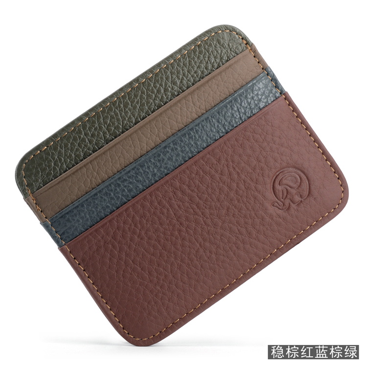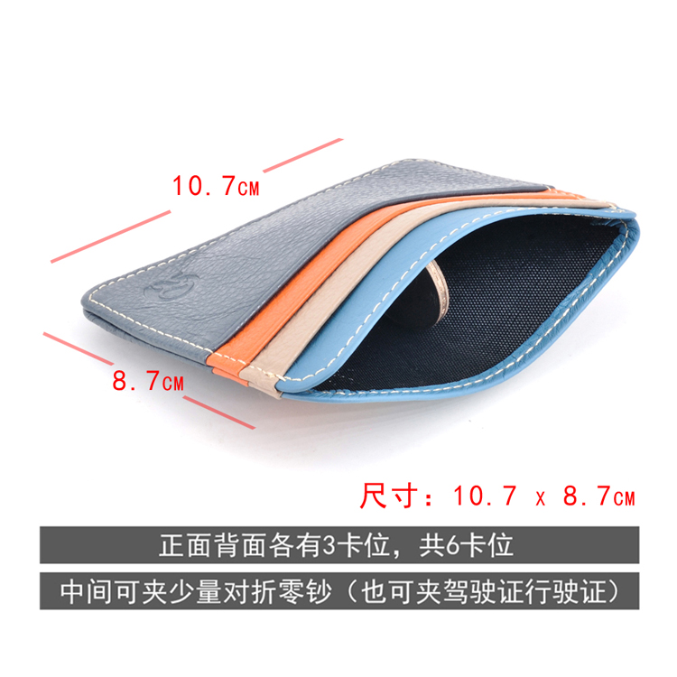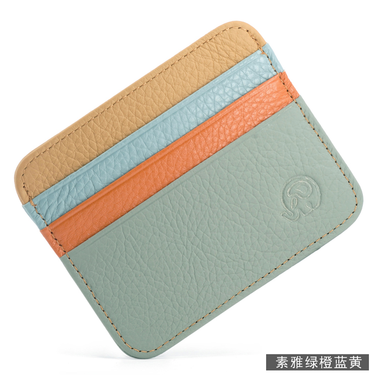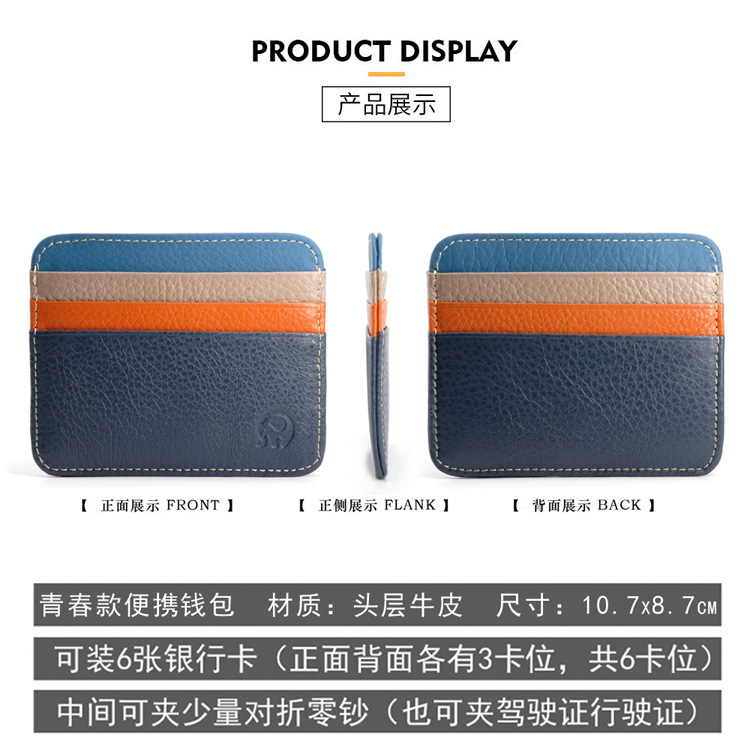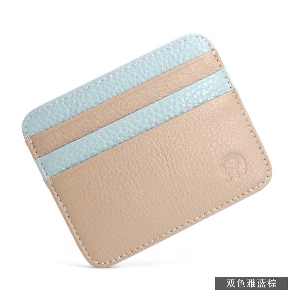 小圆象头层牛皮女撞色卡包零钱包真皮卡夹银行卡驾驶证包公交卡套