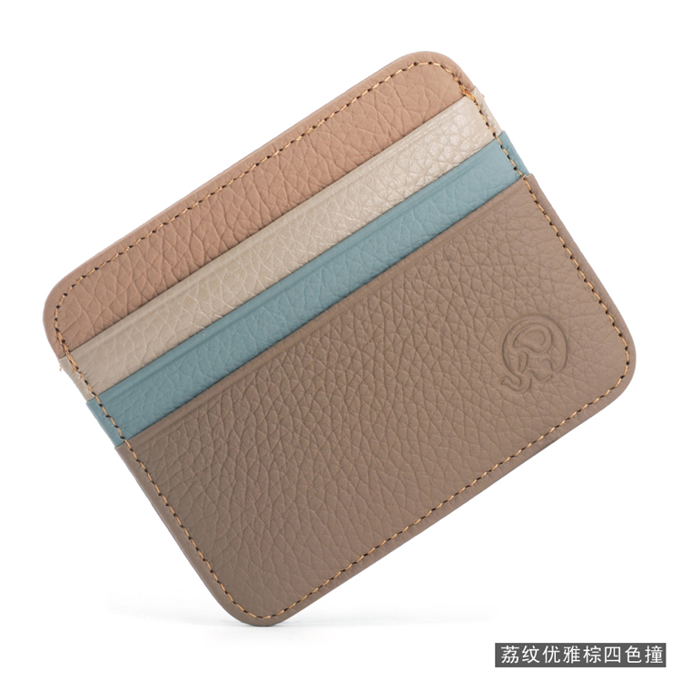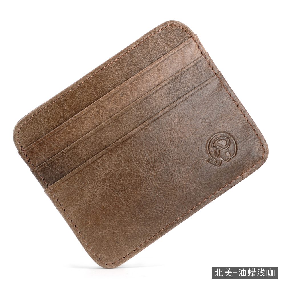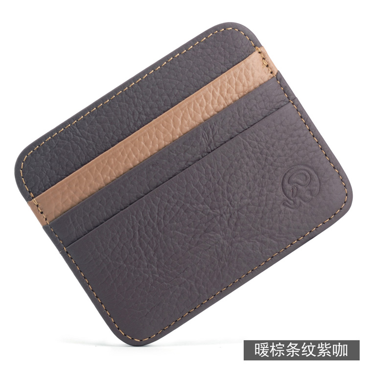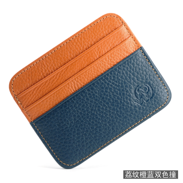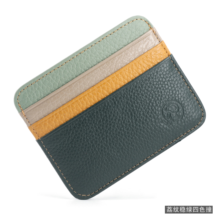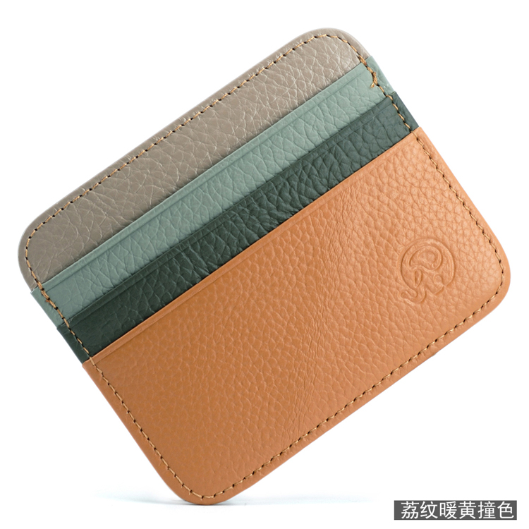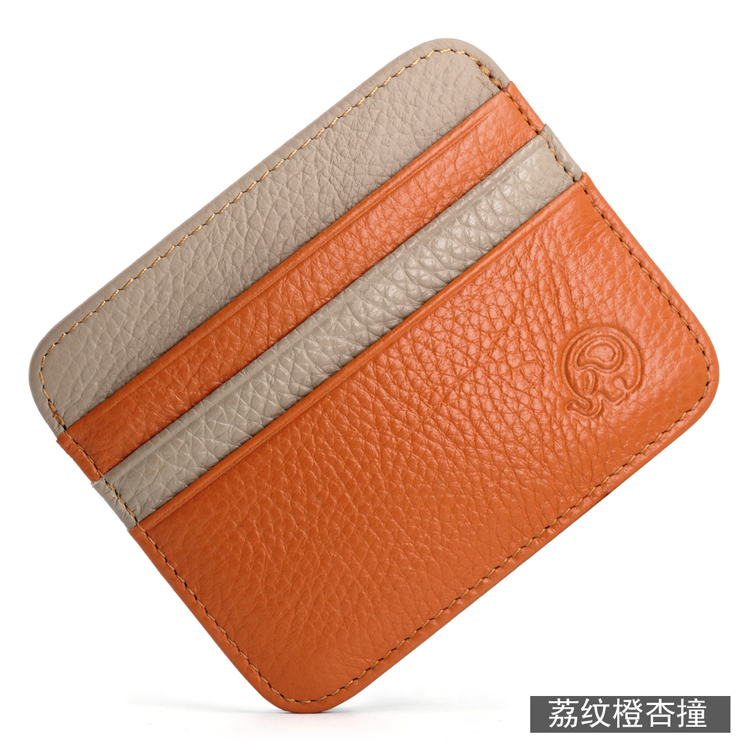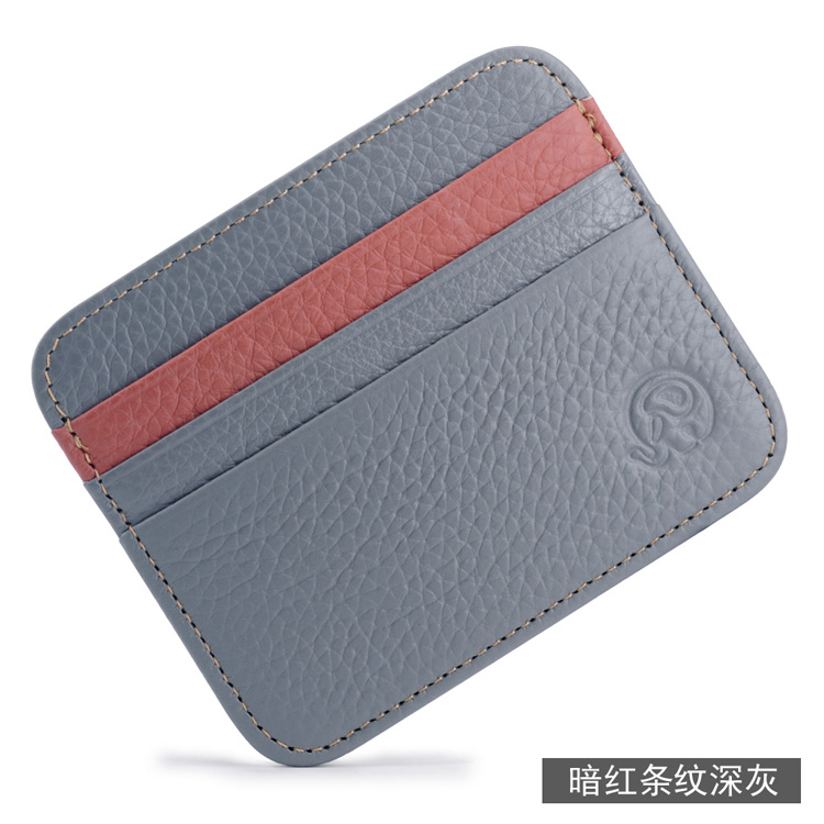 小圆象头层牛皮女撞色卡包零钱包真皮卡夹银行卡驾驶证包公交卡套