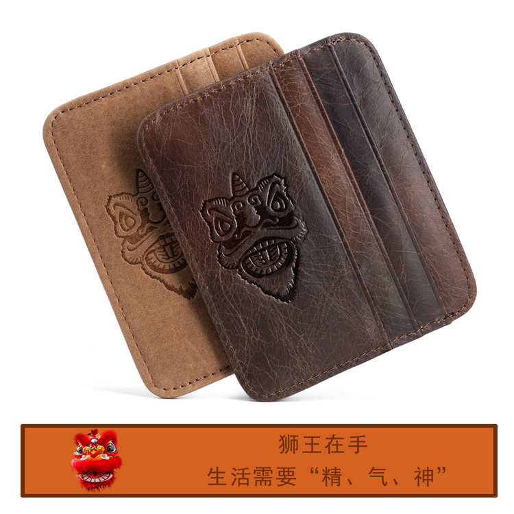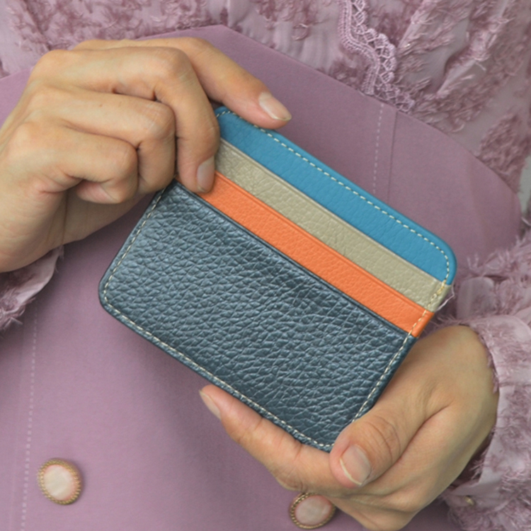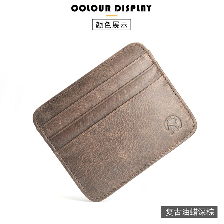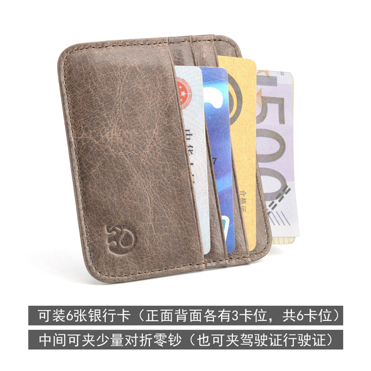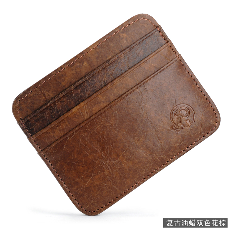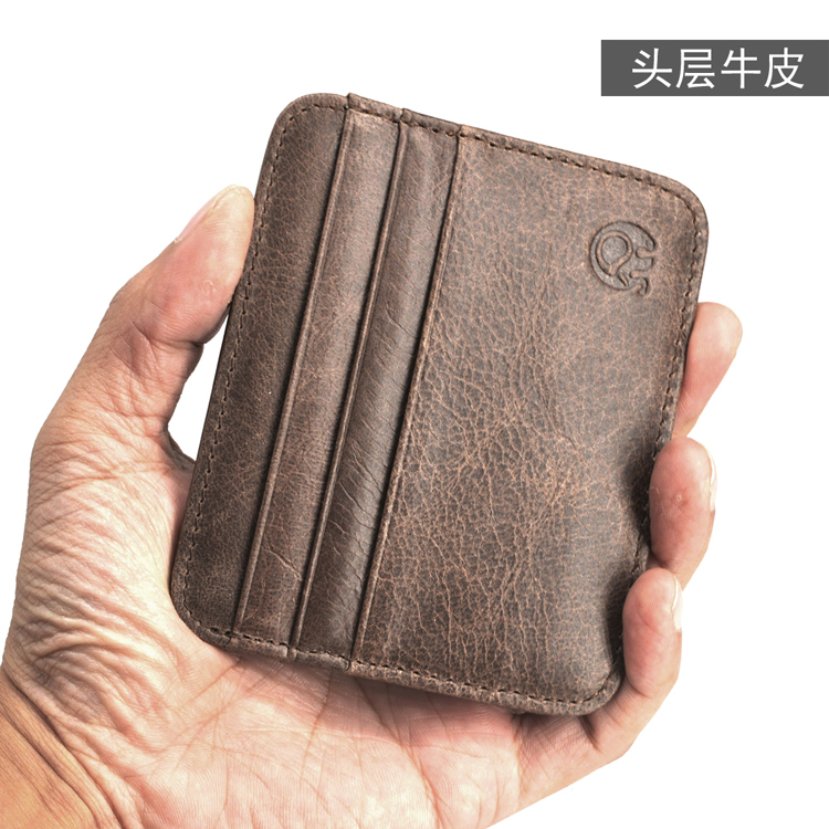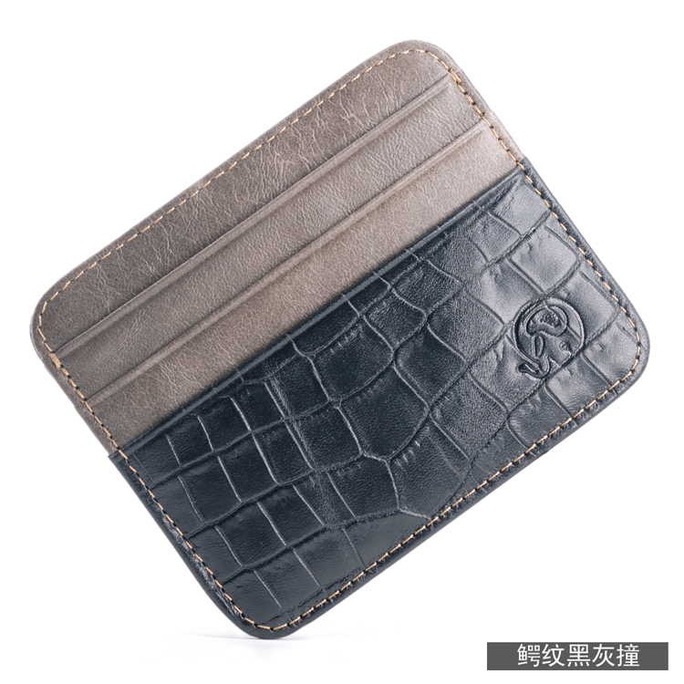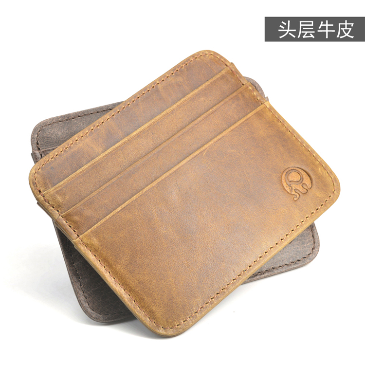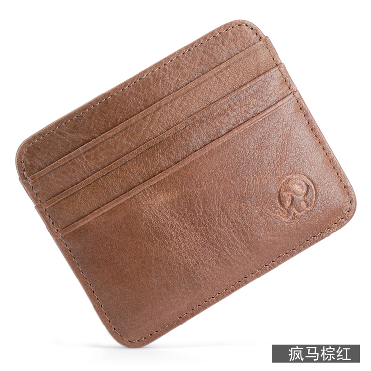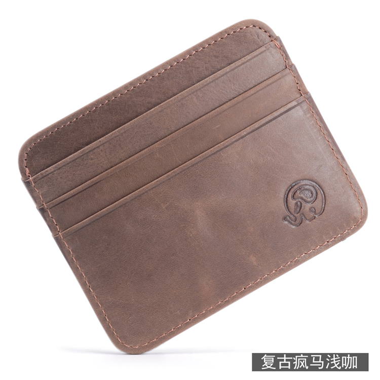 小圆象头层牛皮女撞色卡包零钱包真皮卡夹银行卡驾驶证包公交卡套