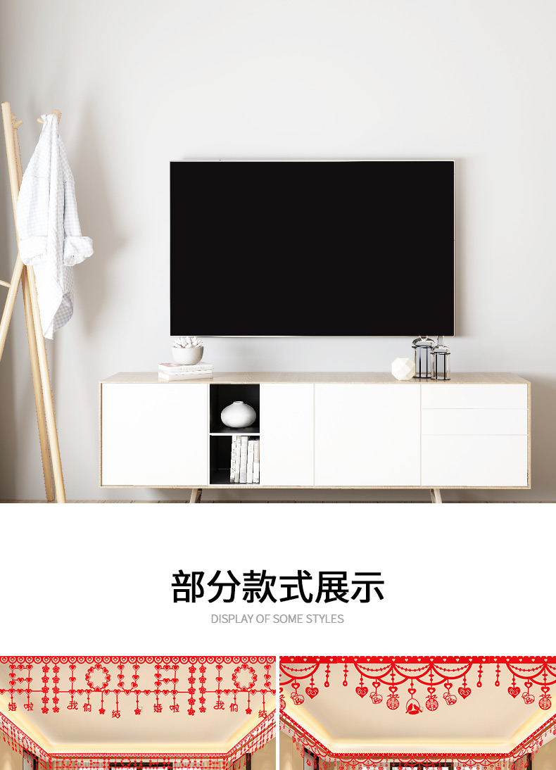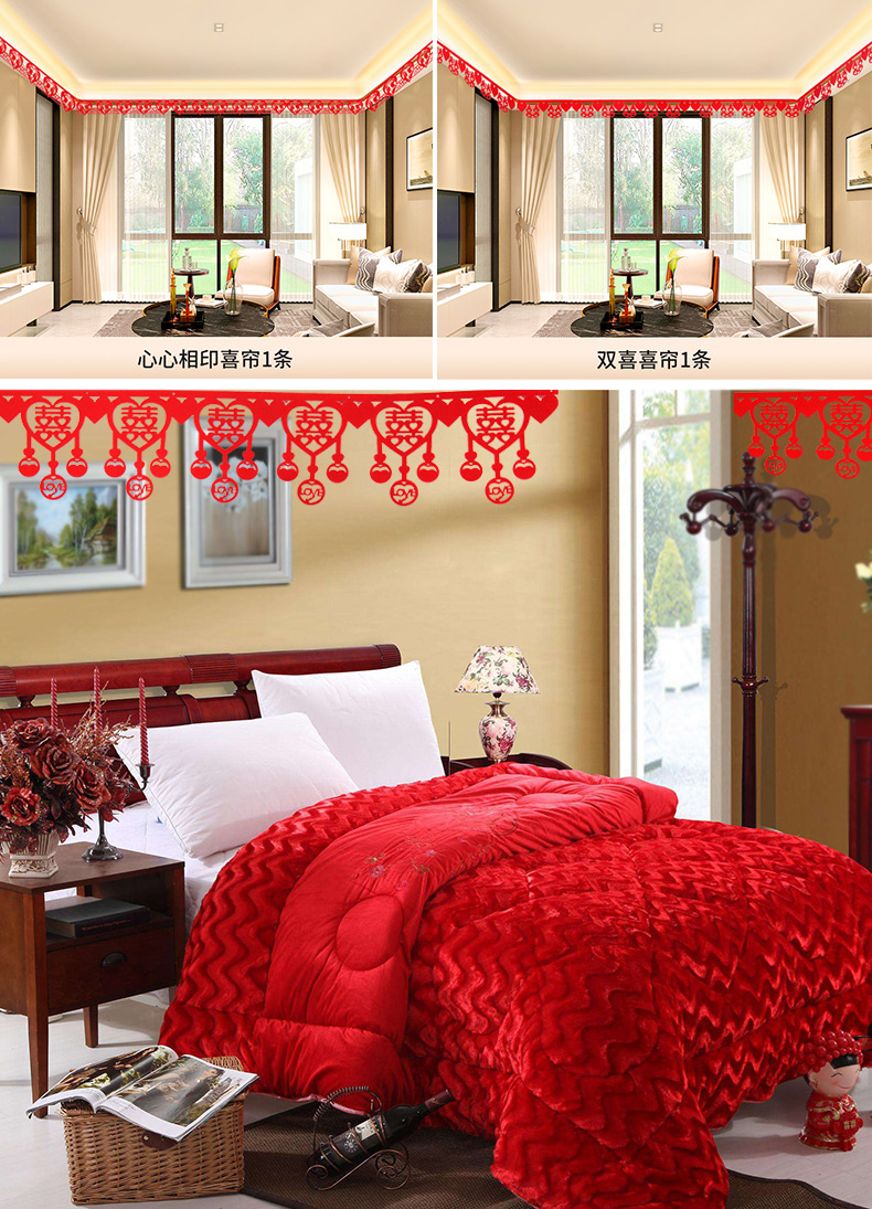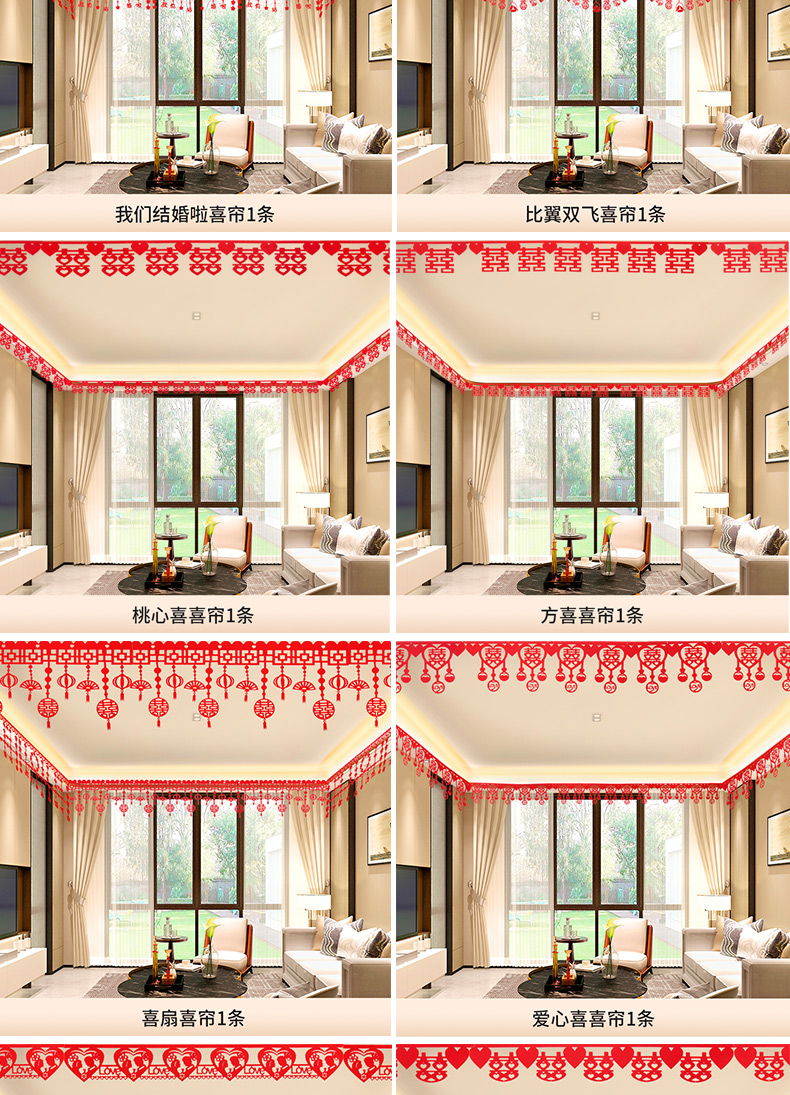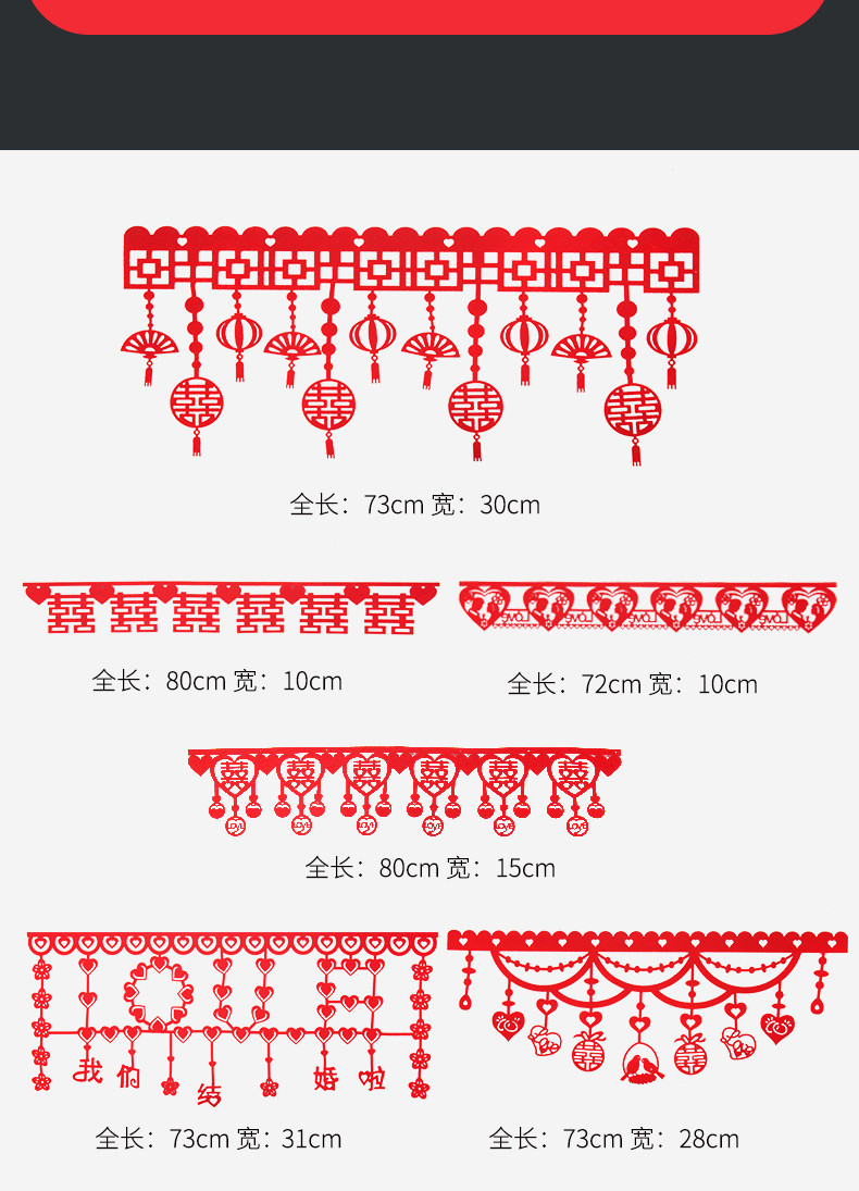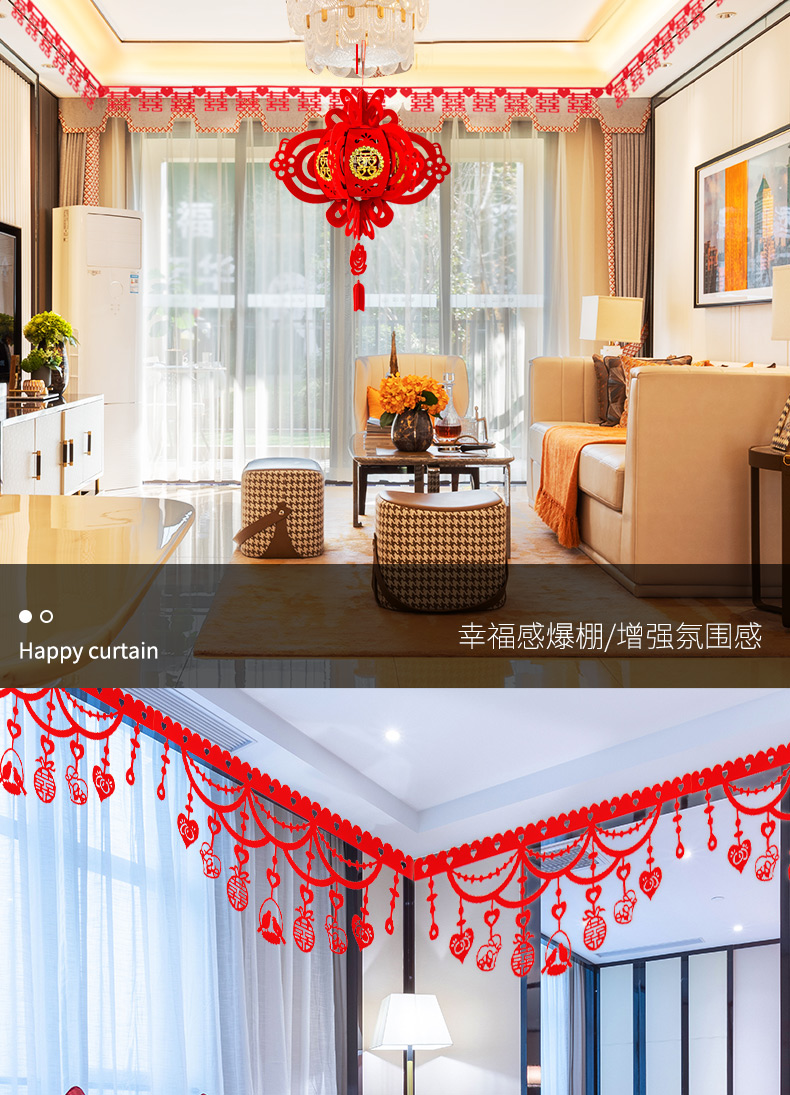 新款婚房装饰结婚婚礼布置用品红色无纺布喜帘子新房客厅喜字拉花