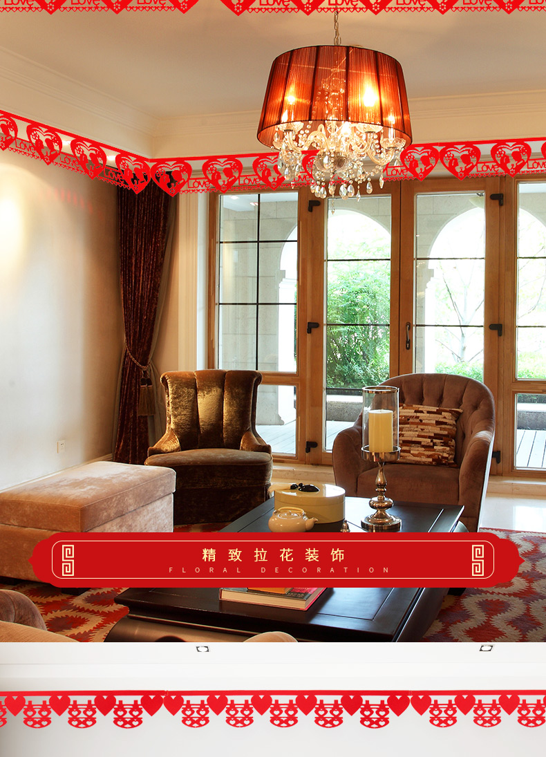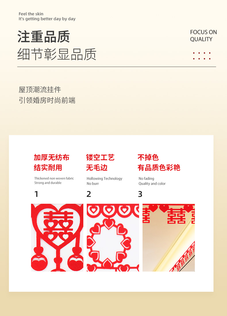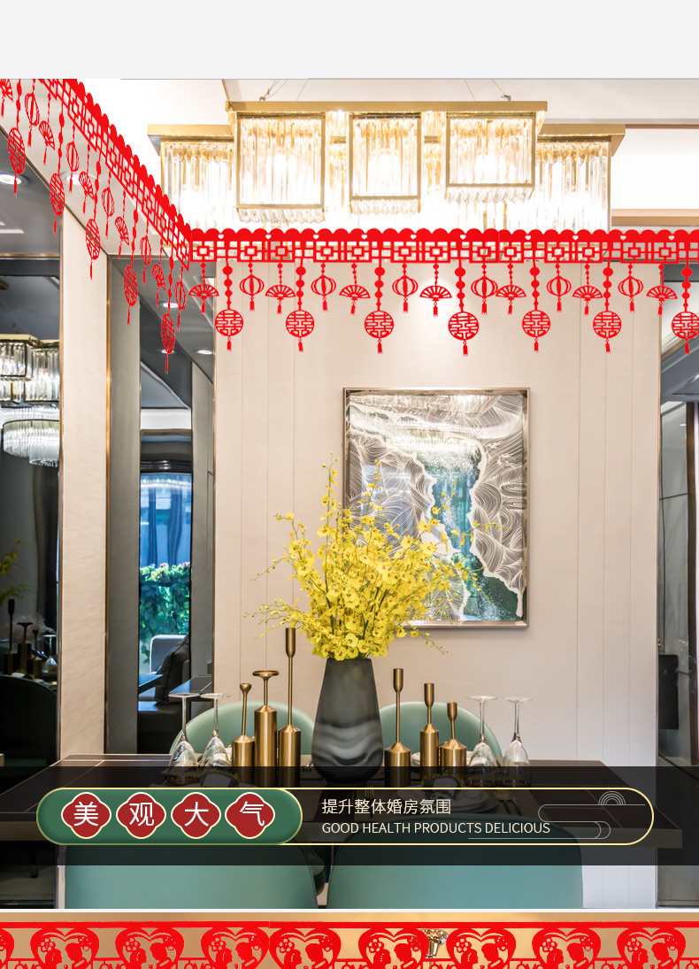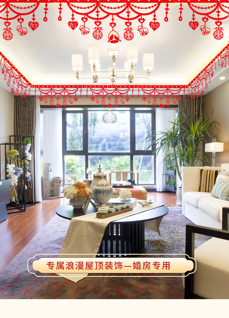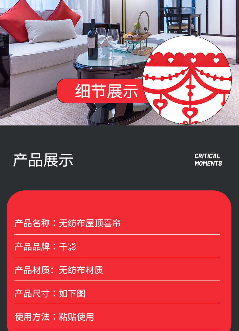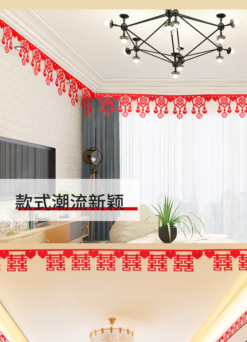 新款婚房装饰结婚婚礼布置用品红色无纺布喜帘子新房客厅喜字拉花