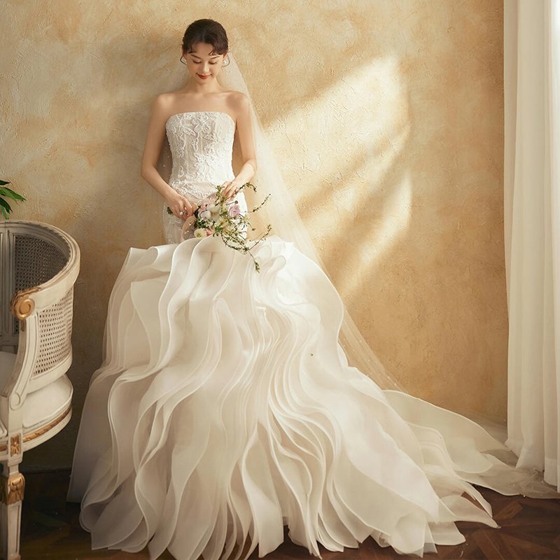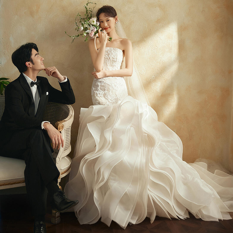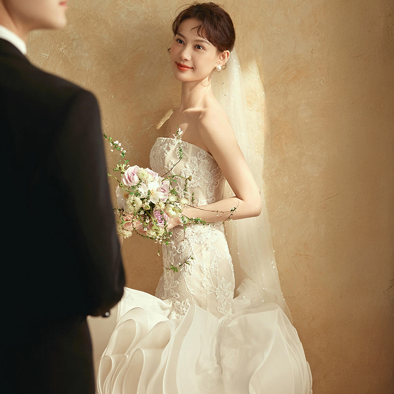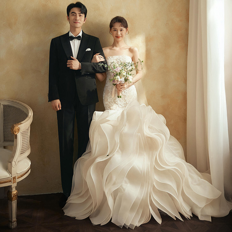 影楼拍照主题服装抹胸蕾丝鱼尾油画复古简约轻奢摄影写真婚纱礼服
