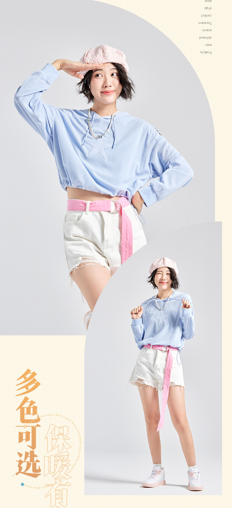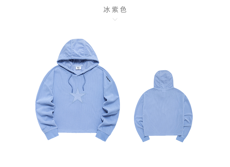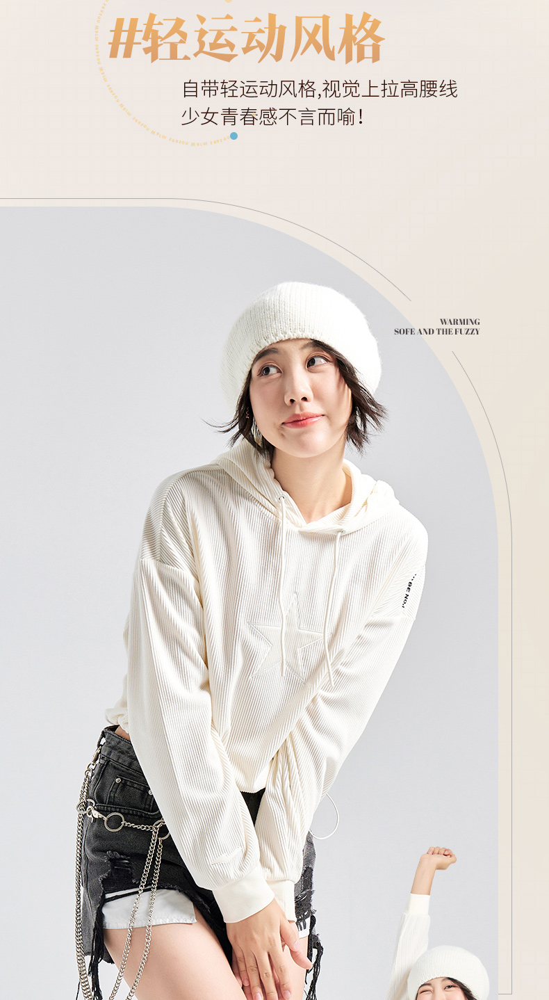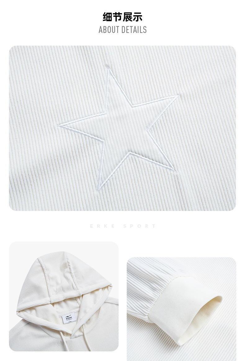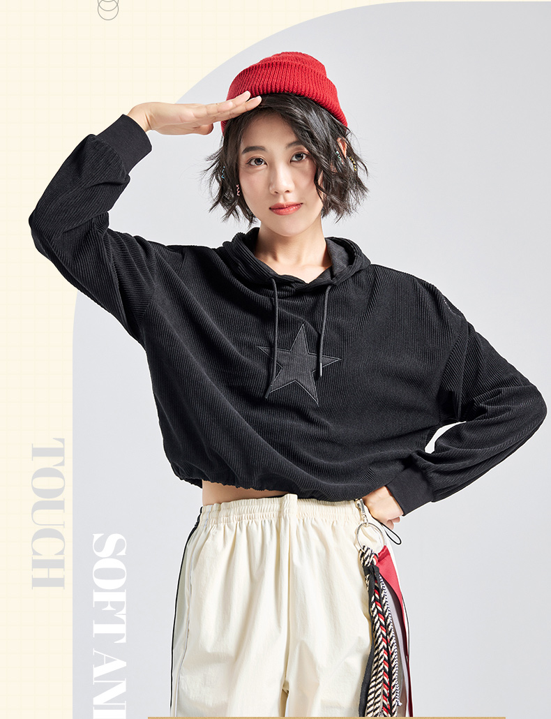 鸿星尔克卫衣女春秋女士灯芯绒宽松运动连帽星星卫衣短款上衣女装